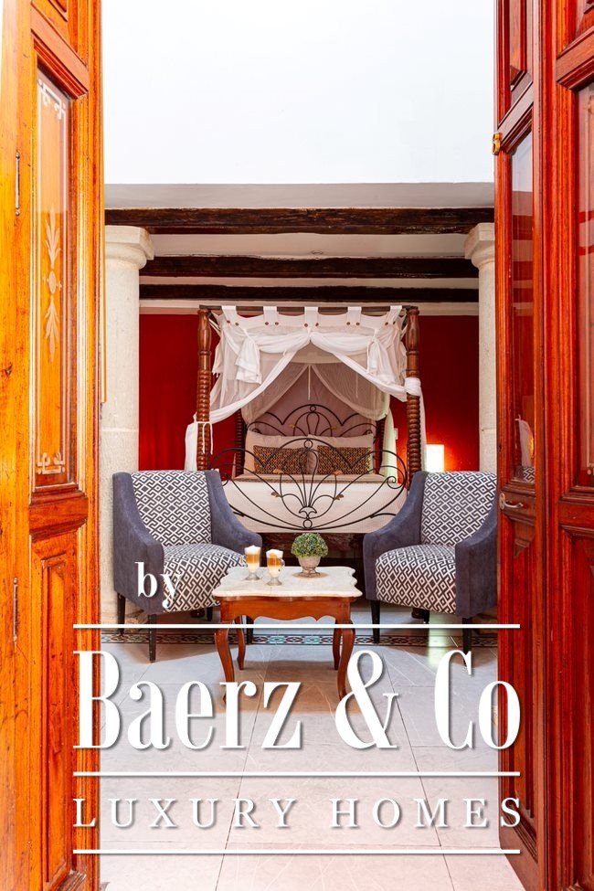 Historic corner mansion, with a patio of mixtilinear arches decorated on Doric quarry columns, antique vaulted ceilings on steel rails and spectacular 17th century wooden doors in extraordinary state of conservation.