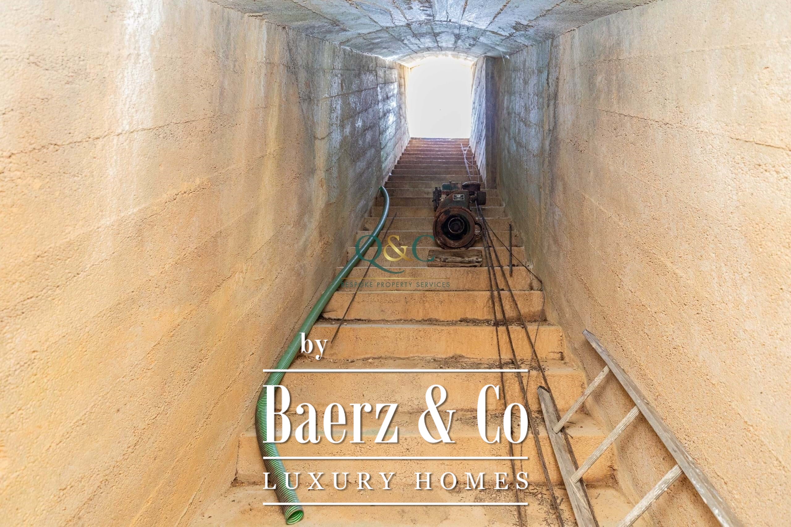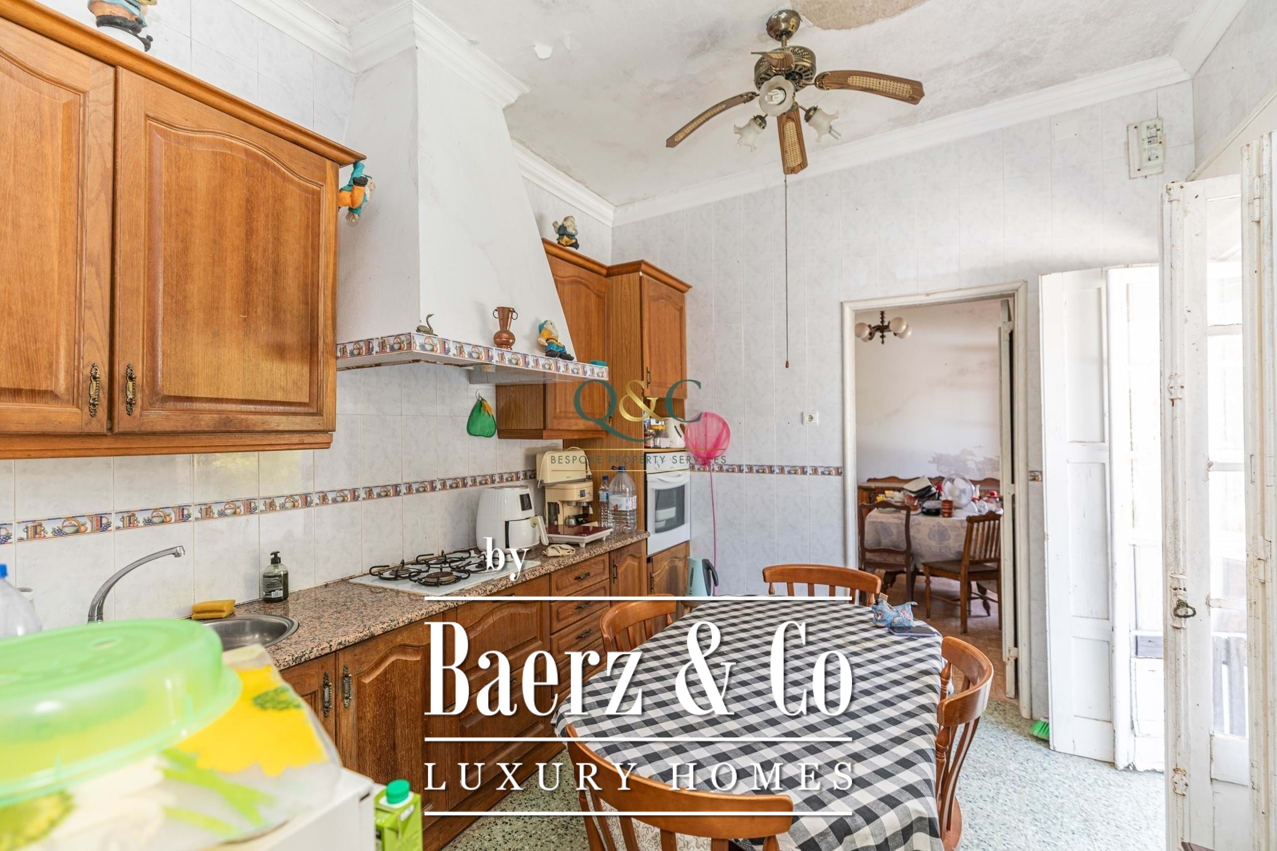Two rooftop terraces crown the house, the higher terrace affording views stretching toward the sea and surrounding countryside. The exterior hosts leisure areas, a barbecue, various outbuildings for storage, and a generous water tank measuring 5.00 m by 7.00 m, supplied by a well, offering the possibility of conversion to a swimming pool. A large detached barn with adjoining ruin at the rear provides scope for guest accommodation or workshop space, with further expansion possible as noted in the source.