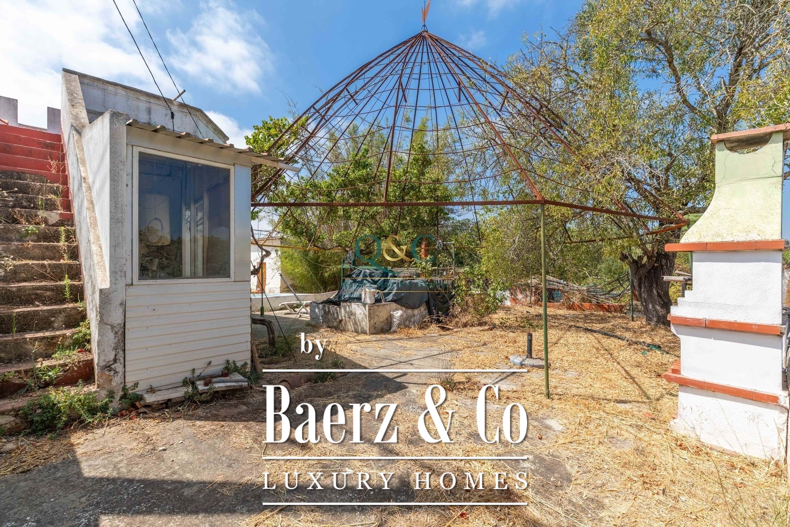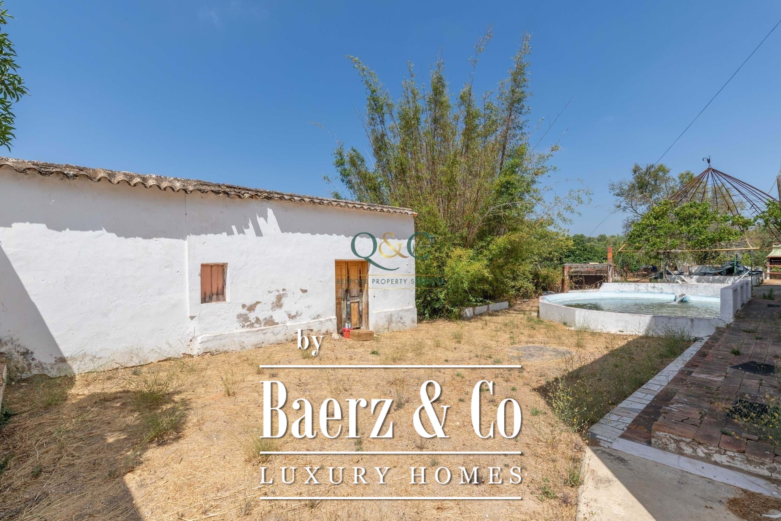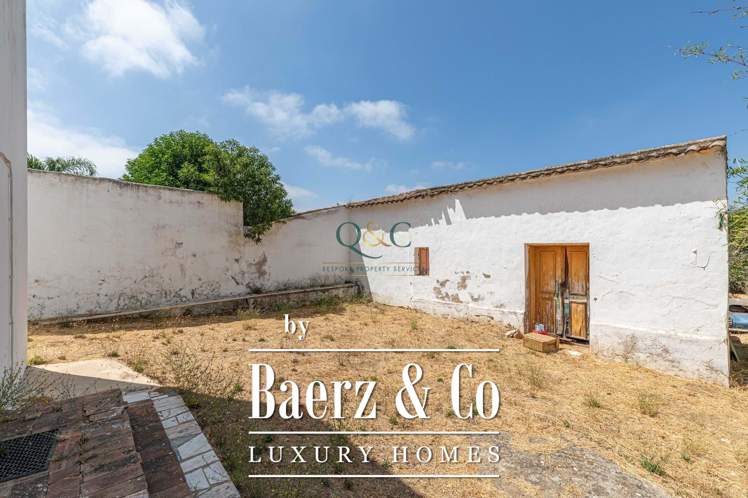 Farmhouse Moncarapacho presents an authentic Algarve property set on 6,560 m² of walled land, blending history and potential. This farmhouse requires complete renovation and modernisation, offering a canvas for transformation. The property features 196 m² of built area across two floors. On the ground level, a kitchen, dining room, living area and one bedroom create the foundation, while upstairs, two additional bedrooms—one particularly spacious—enjoy unobstructed views of the courtyard and mature orchard.