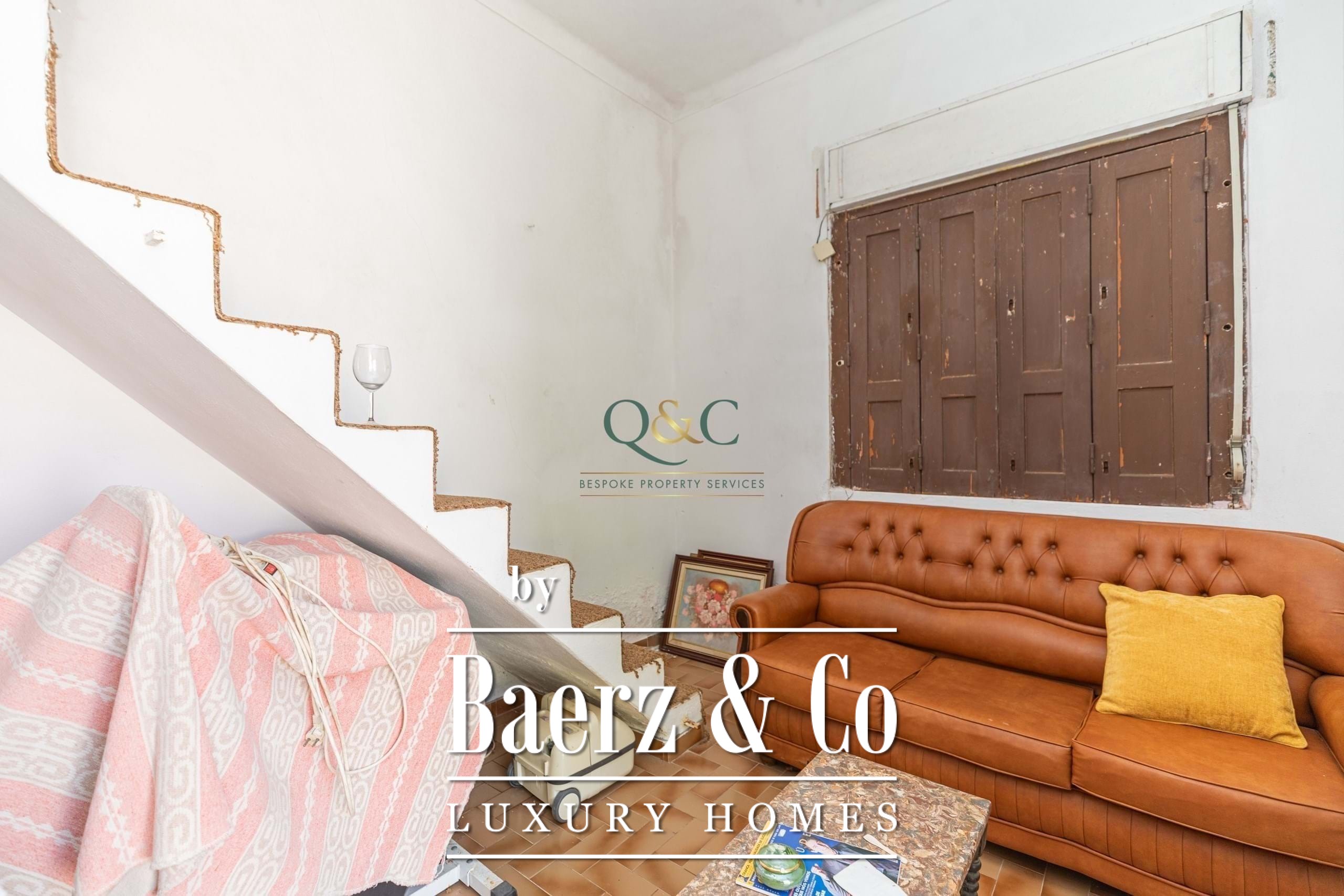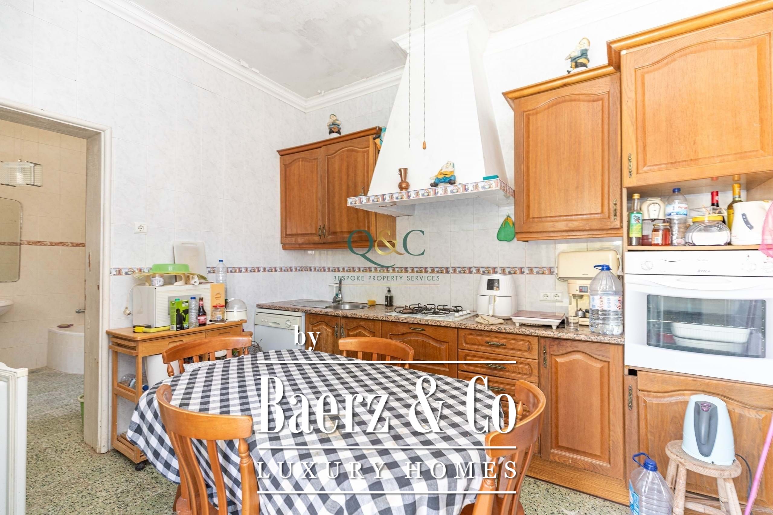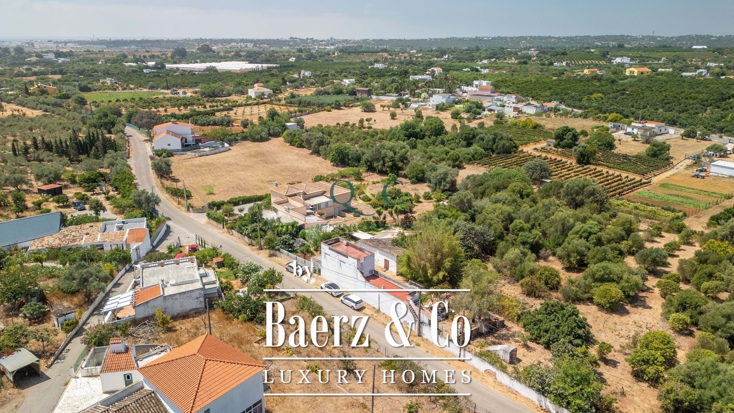Farmhouse Moncarapacho presents an authentic Algarve property set on 6,560 m² of walled land, blending history and potential. This farmhouse requires complete renovation and modernisation, offering a canvas for transformation. The property features 196 m² of built area across two floors. On the ground level, a kitchen, dining room, living area and one bedroom create the foundation, while upstairs, two additional bedrooms—one particularly spacious—enjoy unobstructed views of the courtyard and mature orchard.