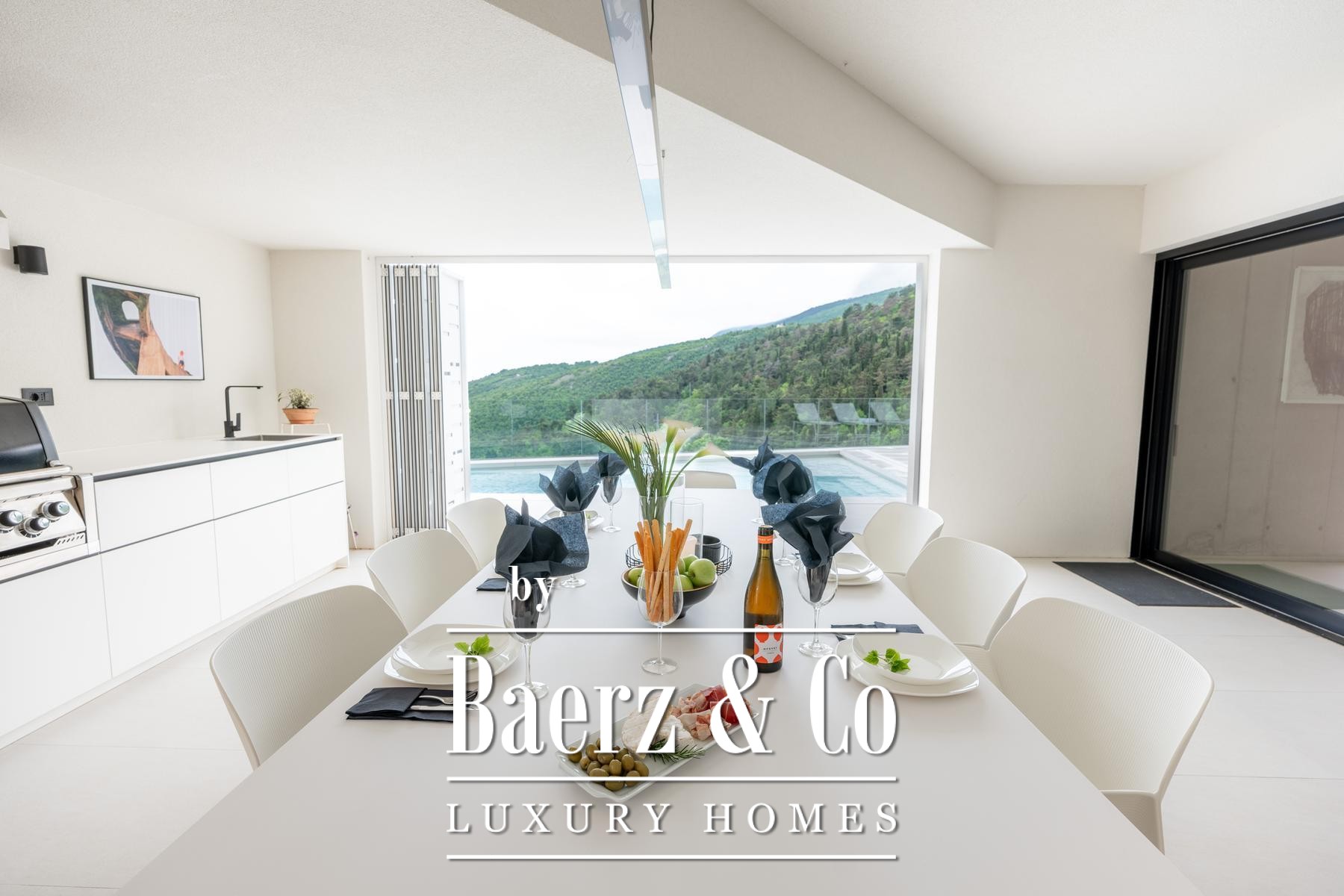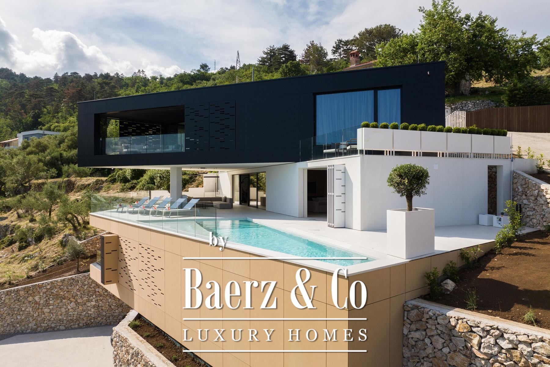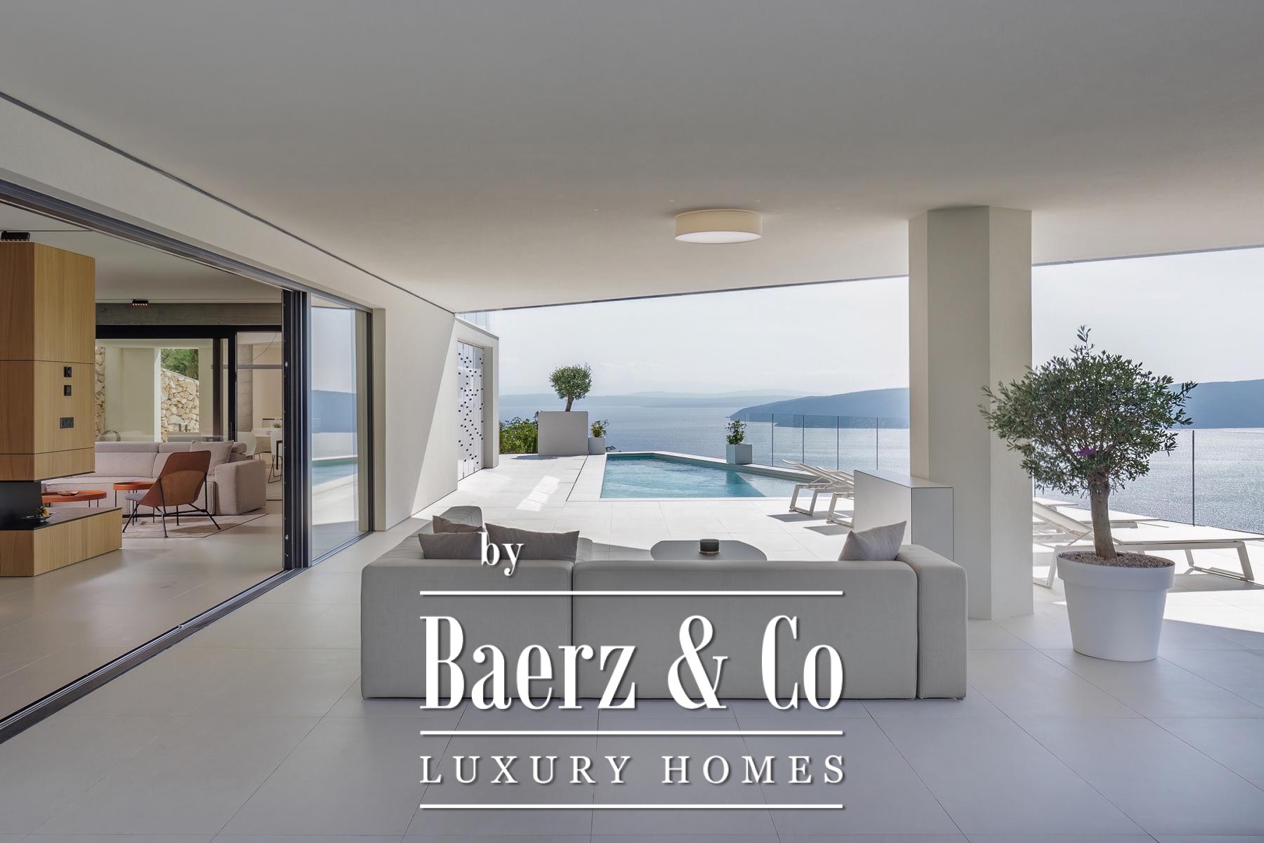 Discover a unique, newly built luxury villa in Mošćenice, above picturesque Mošćenička Draga. Completed in 2023 it offers panoramic views of the Kvarner Bay.This multi-story property, spanning 184 m2, is situated on a 917 m2 plot, perfectly blending modern design and functionality. It features four spacious rooms and four elegantly appointed bathrooms. Finished with meticulous attention to detail and premium materials, the villa includes an advanced smart home system and an elevator connecting all floors. This home is completely ready for immediate occupancy.The residence offers exceptional amenities for relaxation. Enjoy the outdoor swimming pool with sea views or the indoor swimming pool, available year-round. For ultimate wellness, a private sauna is also at your disposal.