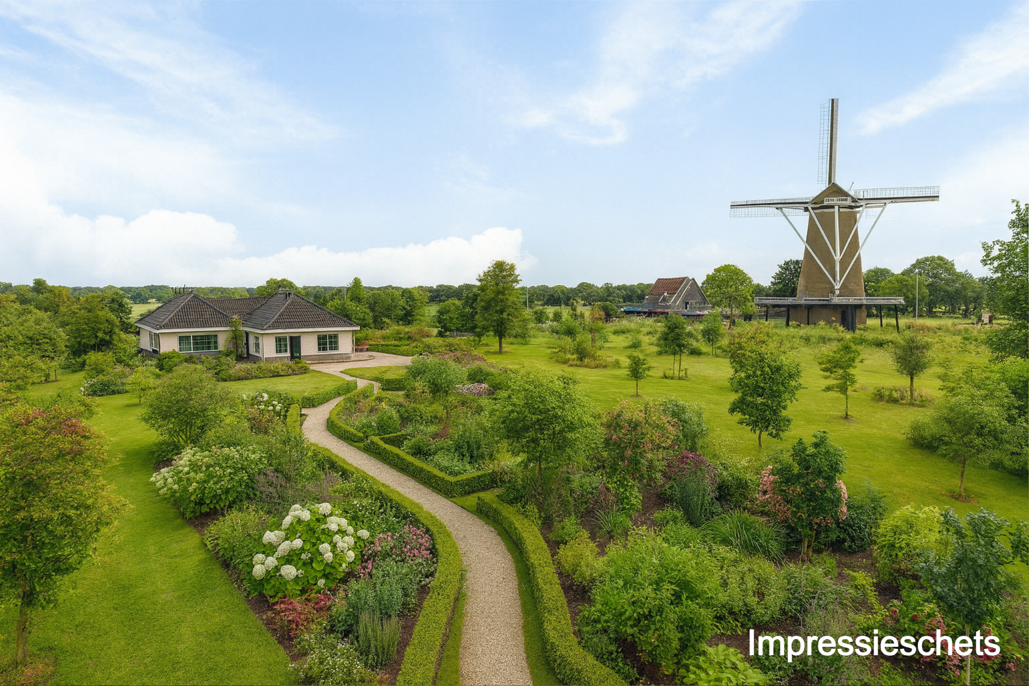 Here you experience the land, the weather and the seasons, but above all you experience nature. The current residents have put their heart and soul into making this a true Garden of Eden, with an eye for biodiversity and aesthetics. The colorful borders are a poem of color and form throughout the garden. At the back of the garden, half an acre has been sown with wildflowers, and this is something spectacular; around May and June it is a sensory feast of fragrance and color here, due to the many thousands of cornflowers, chamomile buds and poppies.