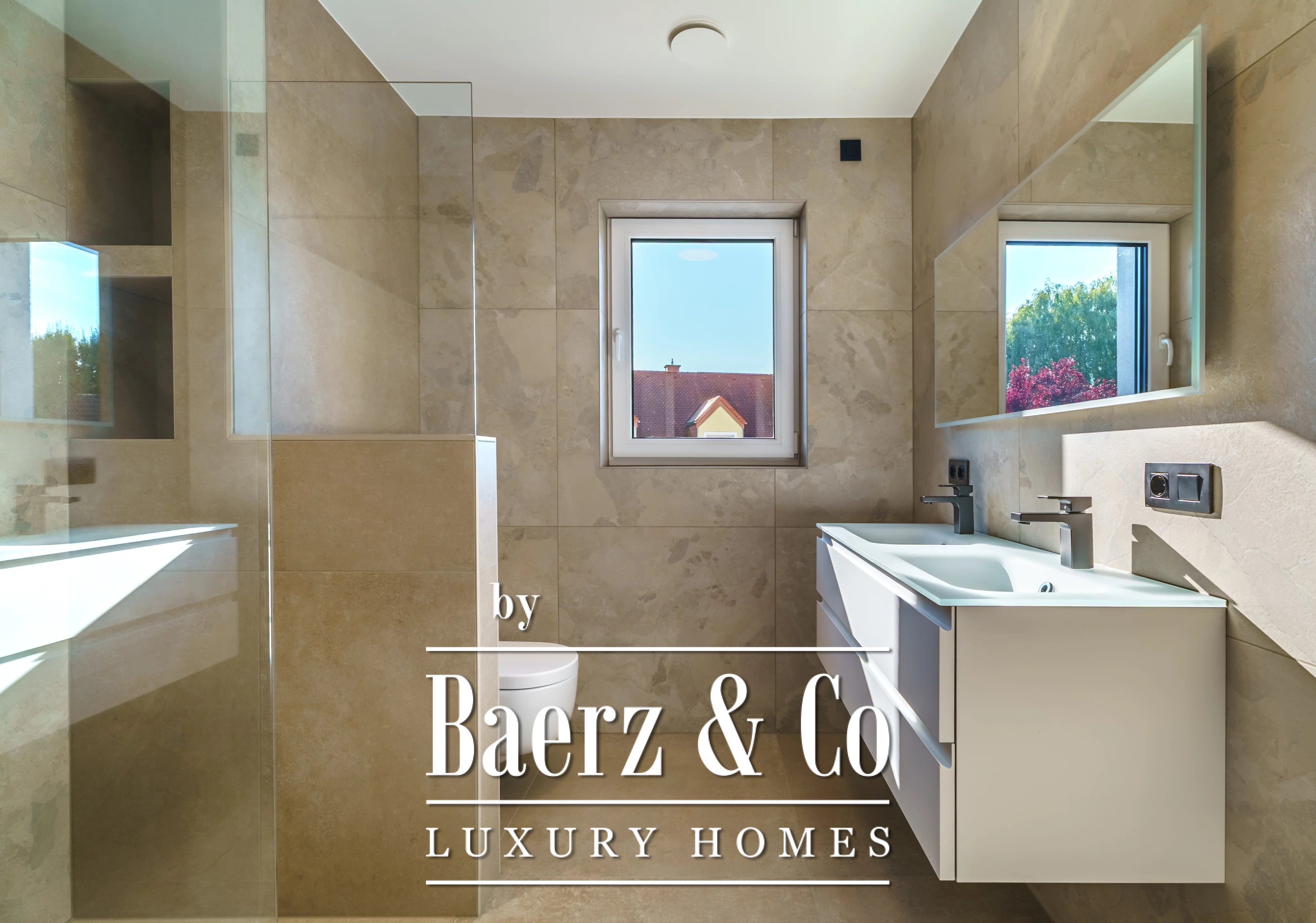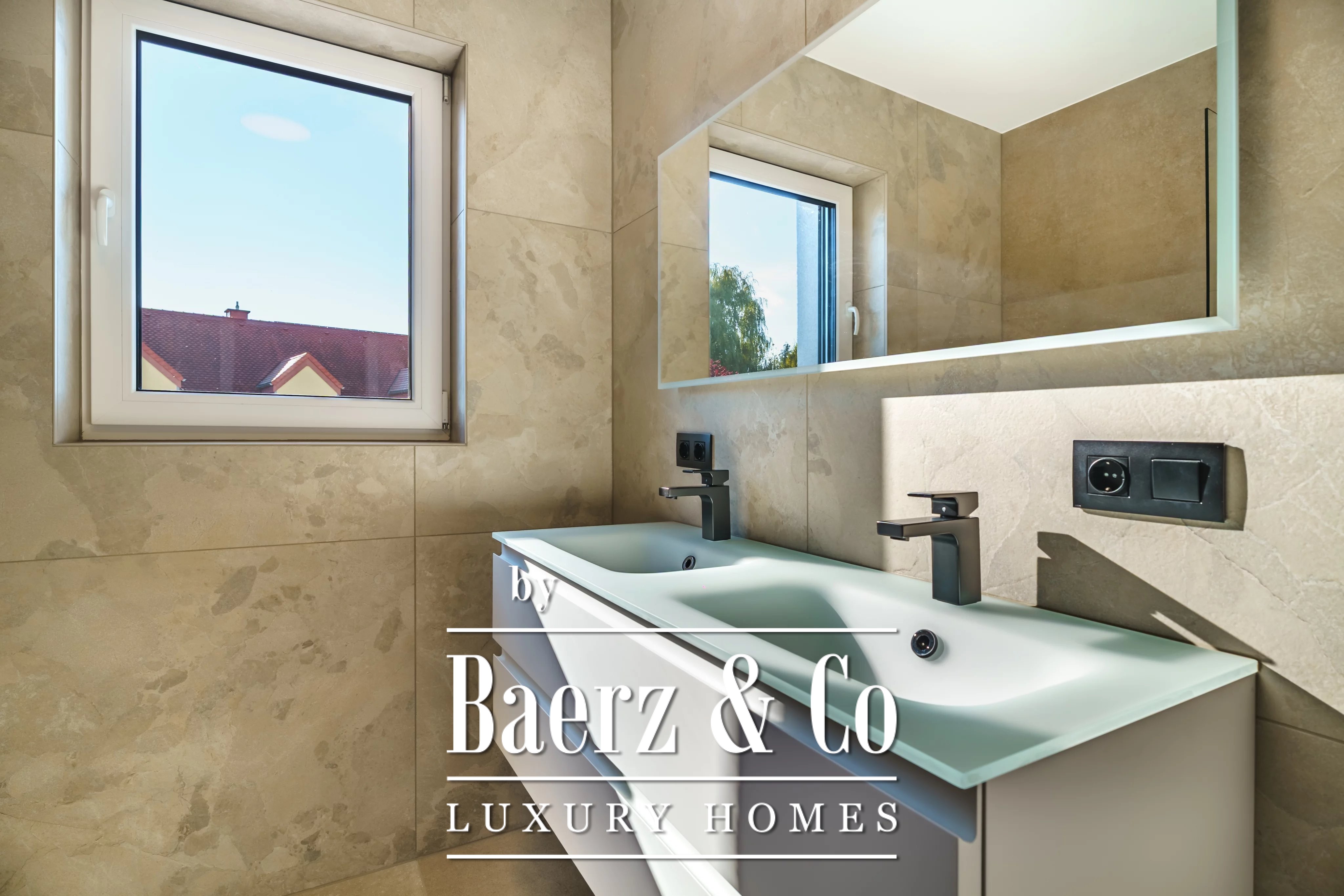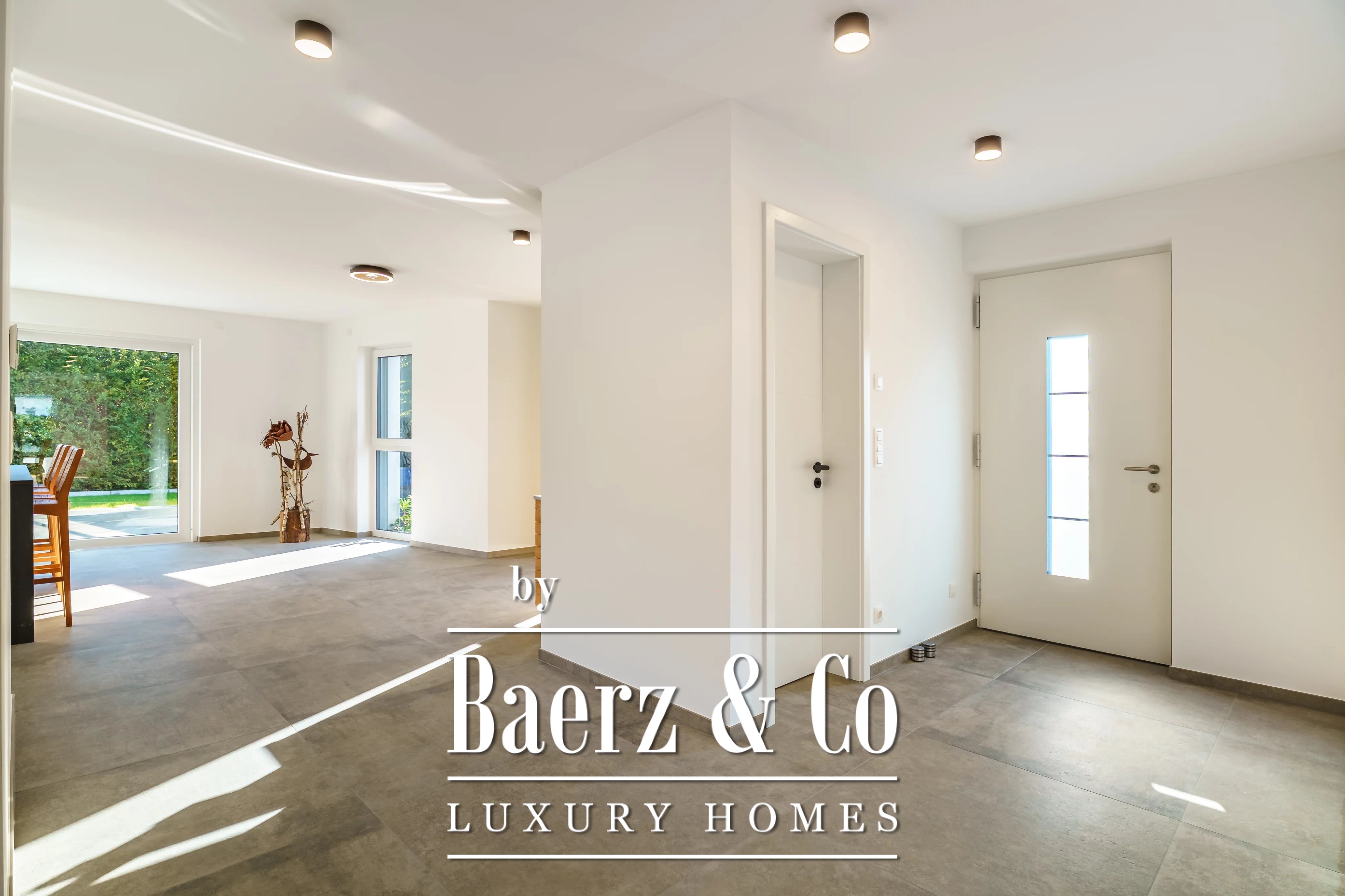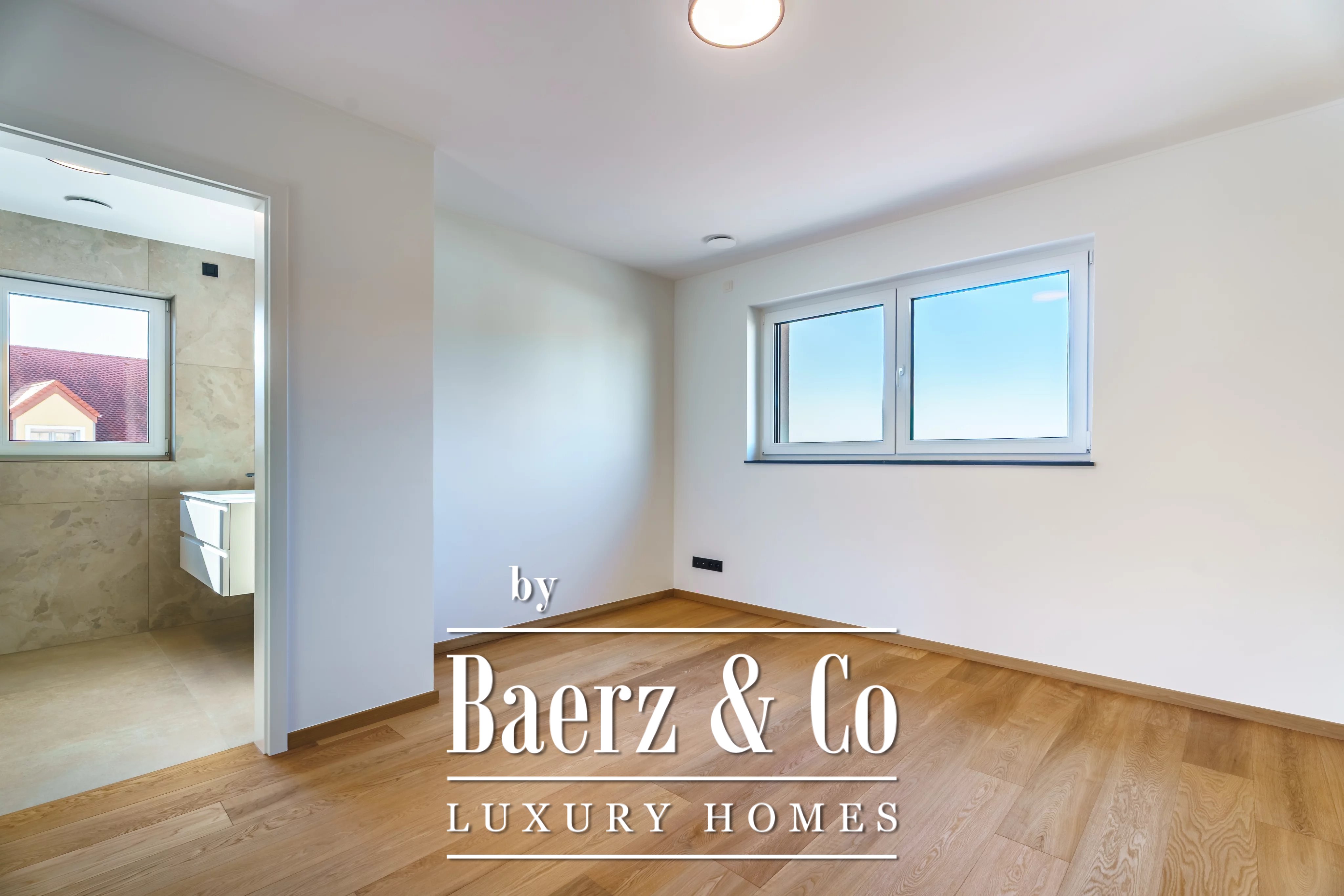 Triple glazing, sliding windows, electric awnings, and an advanced alarm system underscore a commitment to comfort and security throughout this A+ energy class home. The 40.45 m² double garage and videophone entry add further assurance. For those seeking a luxury single-family house for sale in Niederanven, this address articulates contemporary architecture with enduring discretion.