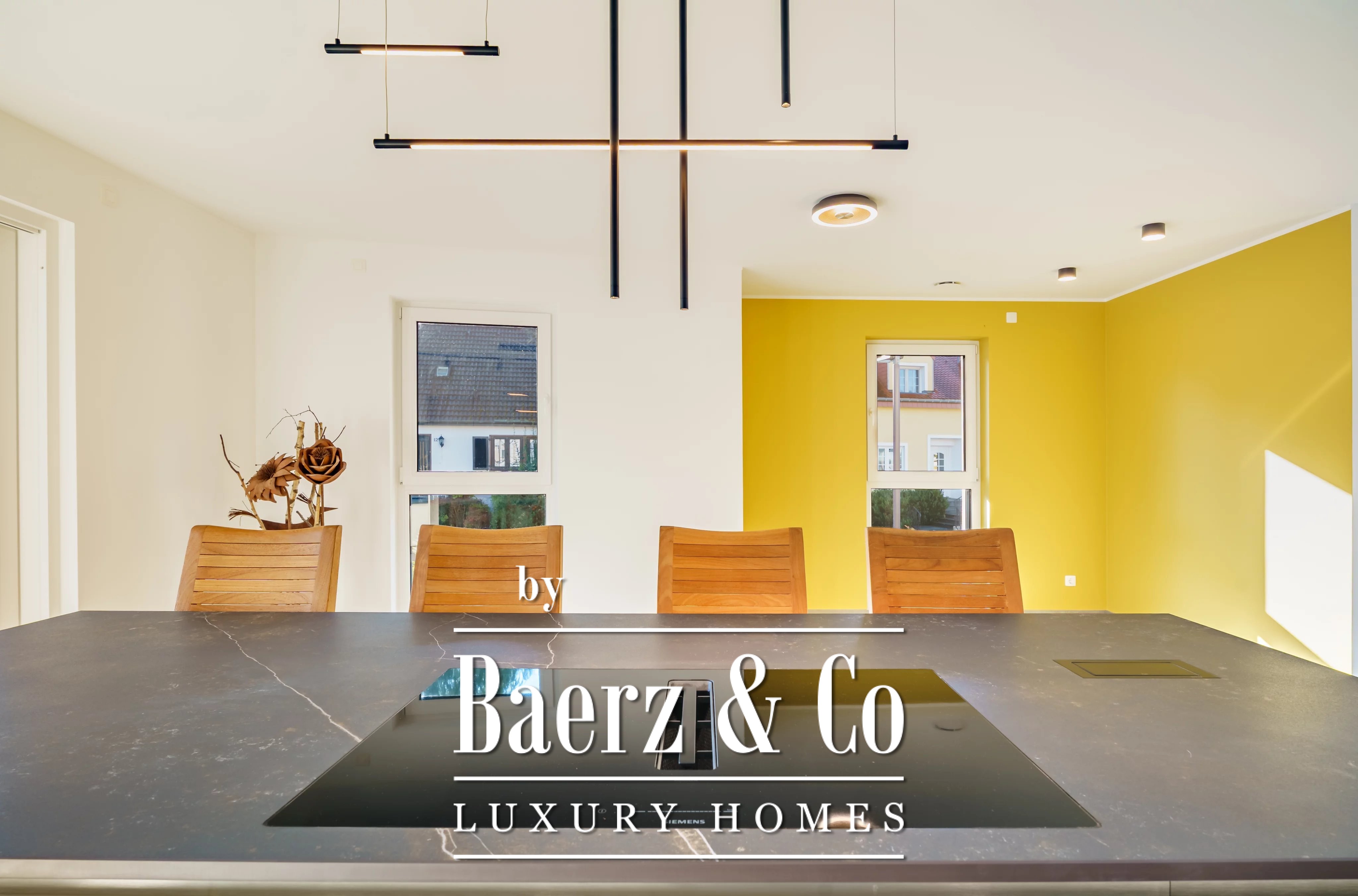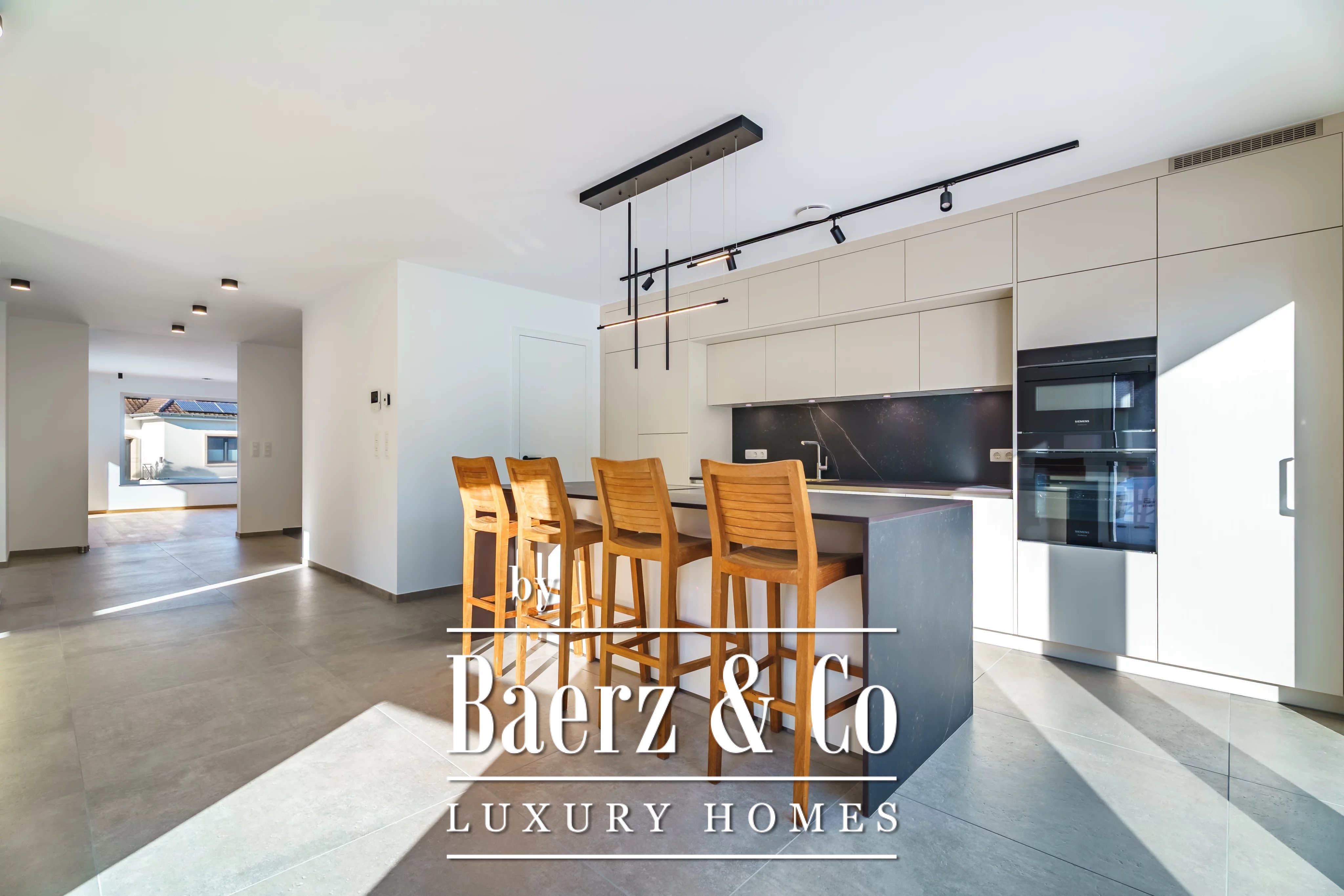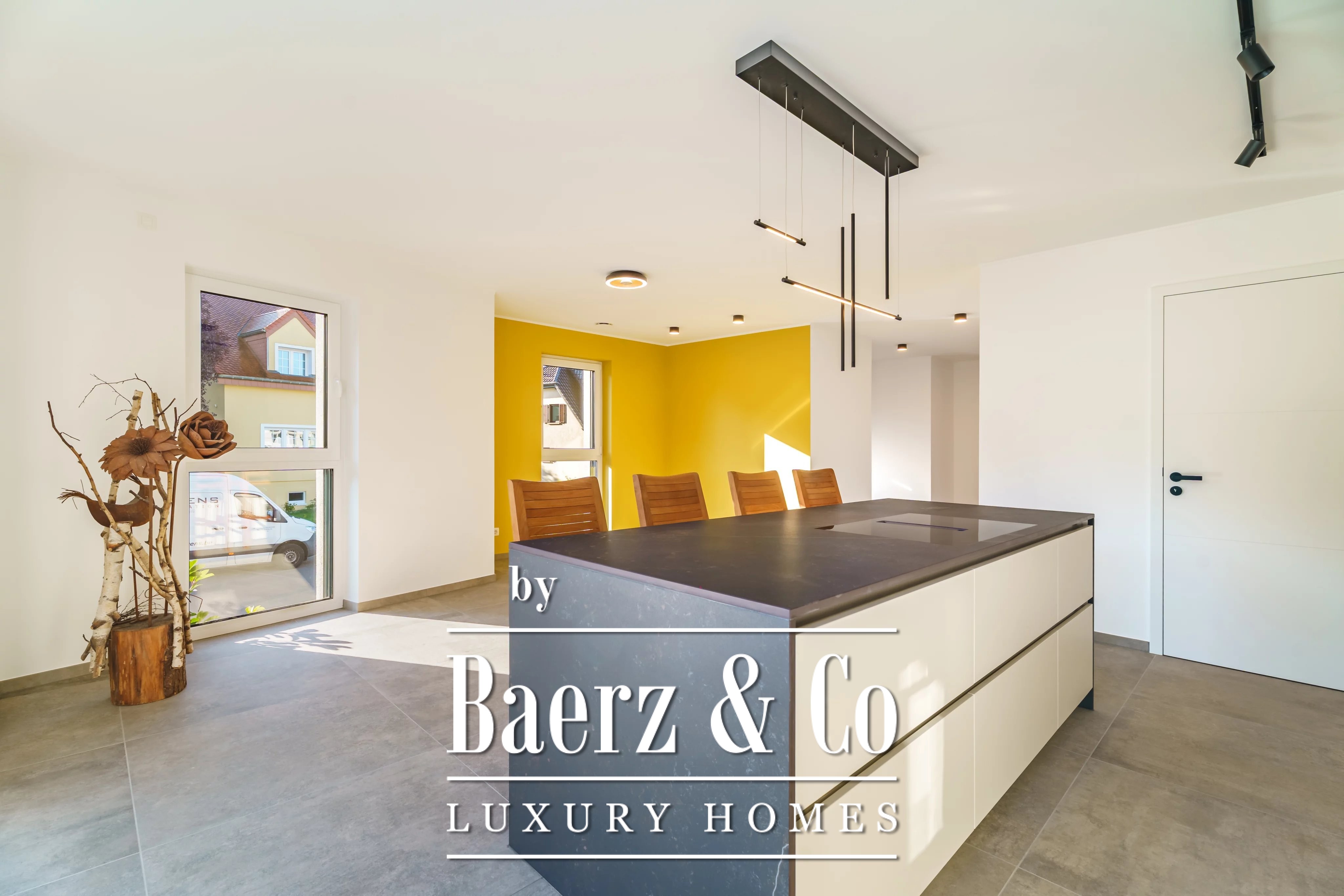 Single-family house Niederanven stands at the end of a quiet cul-de-sac, its 192 m² interior skillfully shaped in 2025 by WANSART CONSTRUCTION. The residence is set on a 379 m² plot, free on three sides, offering rare privacy and a seamless connection to the gentle countryside views that unfold beyond its walls.