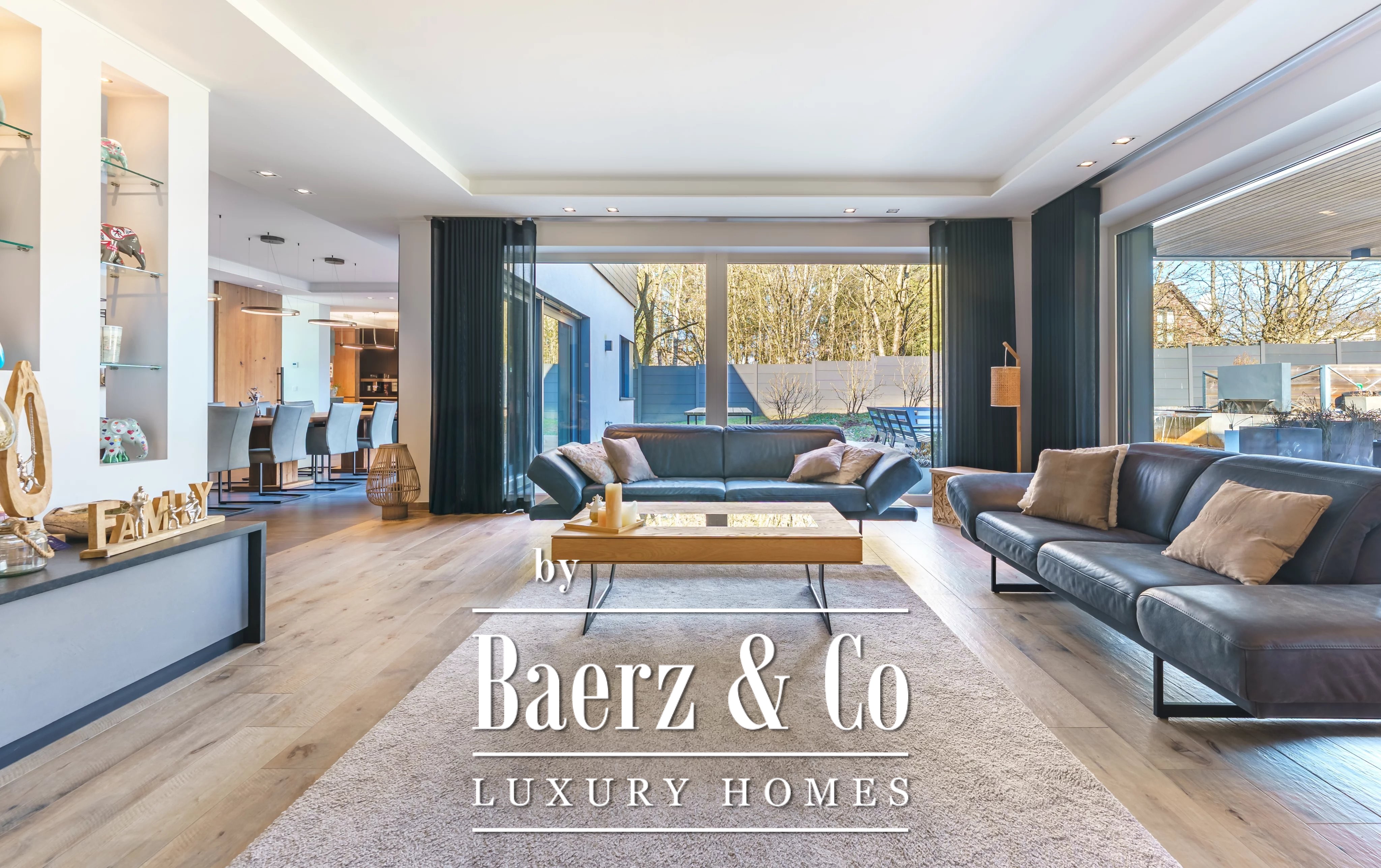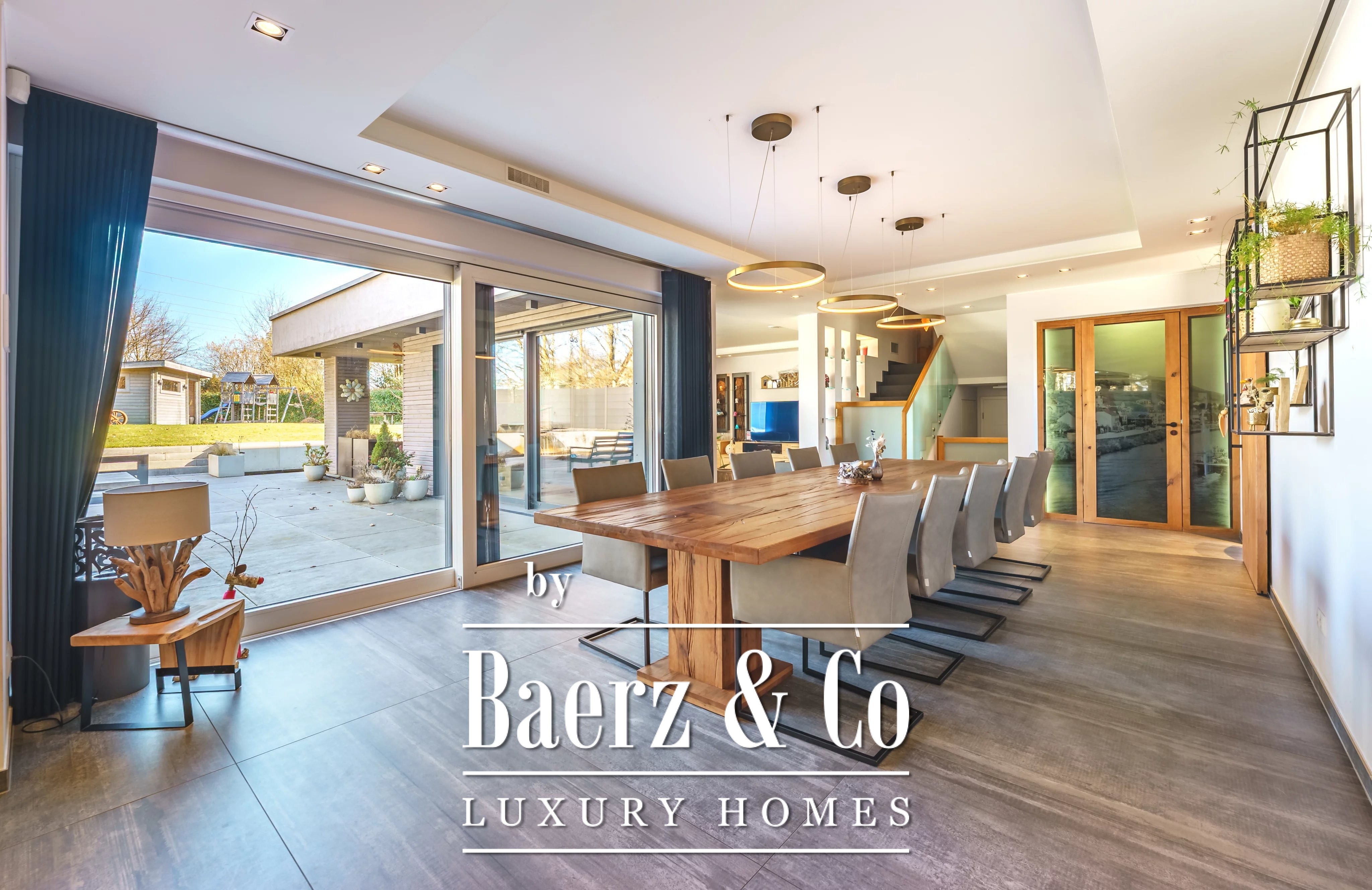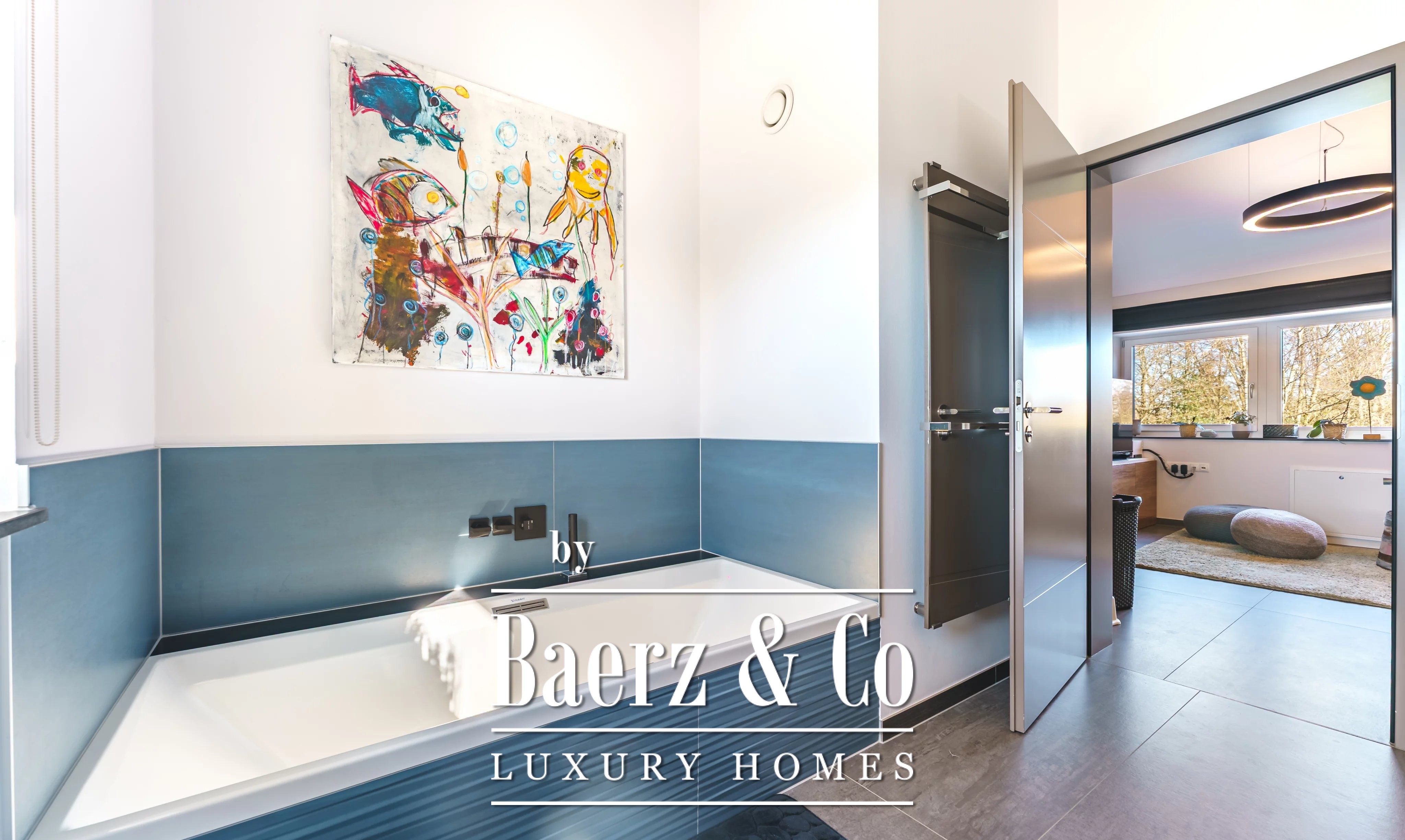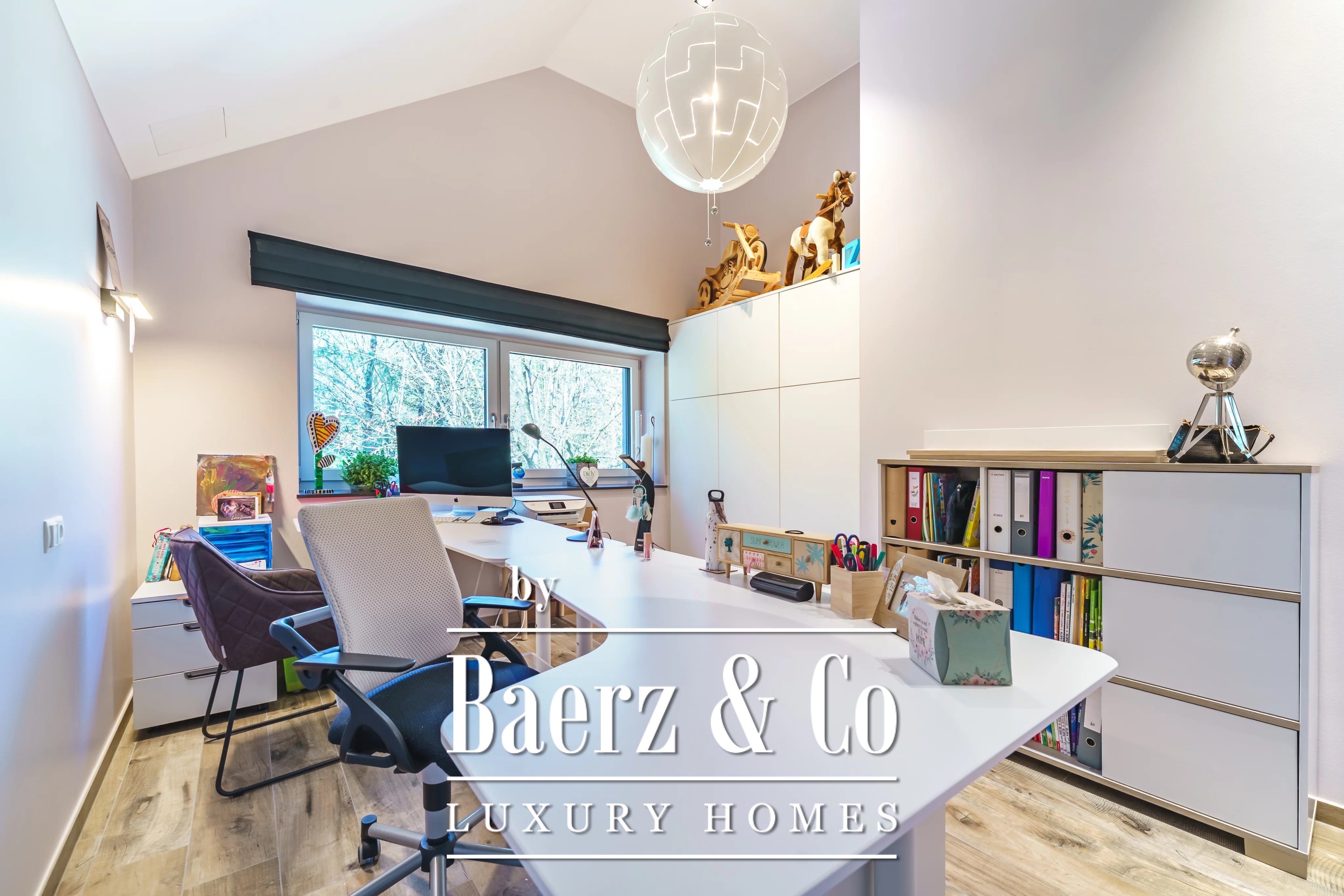 Upstairs, an additional living room creates a private retreat for family gatherings. There are five bedrooms and four bathrooms, including a master suite with a dressing room, private shower room, and a guest bedroom with en-suite. The laundry room is discreet and efficient, supporting daily comfort.