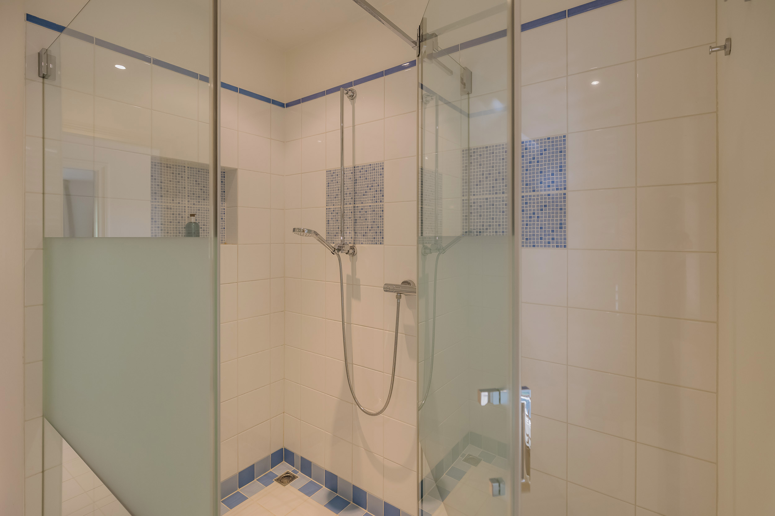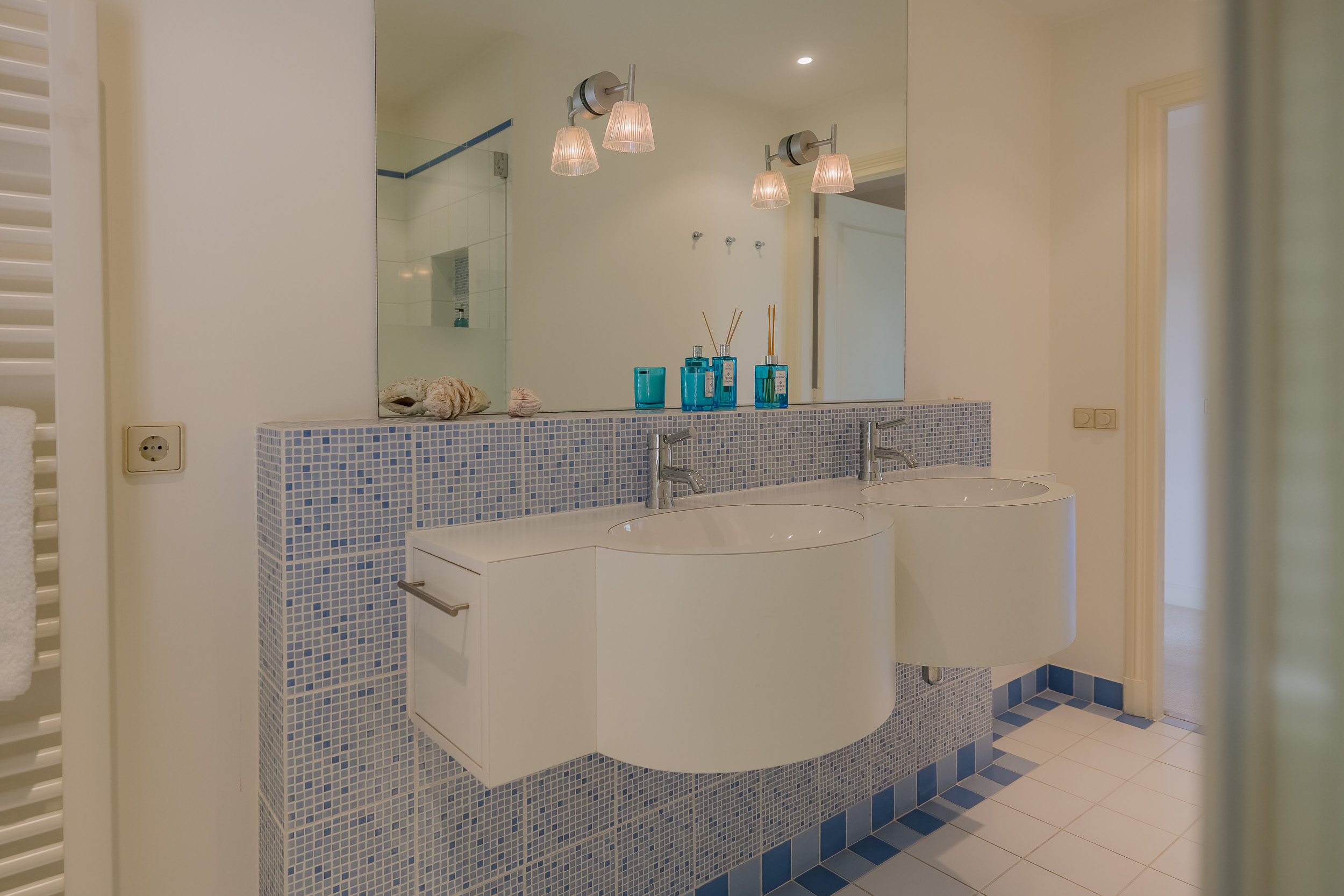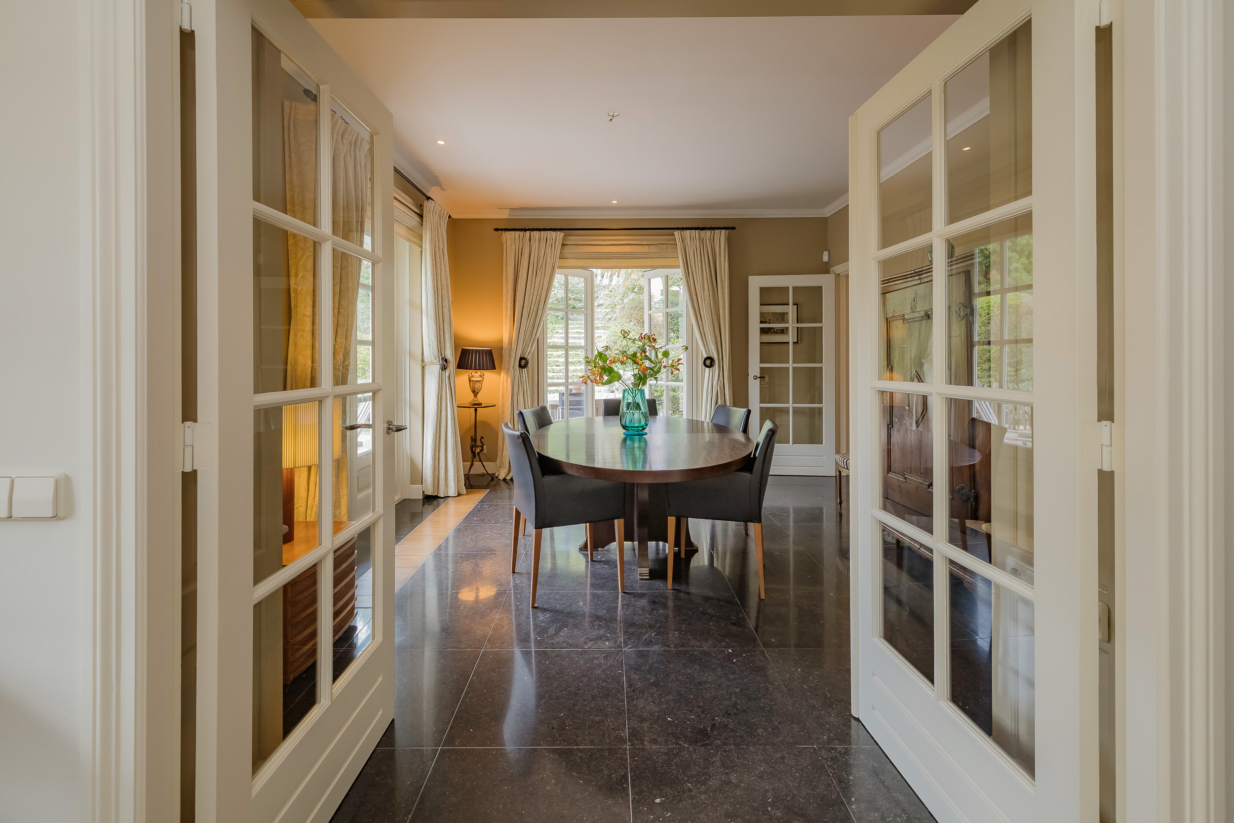 The villa exudes tranquility, space, and elegance. An elegant entrance, richly surrounded by flowers, welcomes you at the door. The spacious hall leads to the cozy living room with fireplace, adjacent dining room, and delightful kitchen with French doors to the garden. A place that invites you to spend long evenings cooking, dining, and enjoying life. A practical utility room and a spacious study on the ground floor complete the picture. All rooms have direct access to the garden, veranda, or one of the balconies.