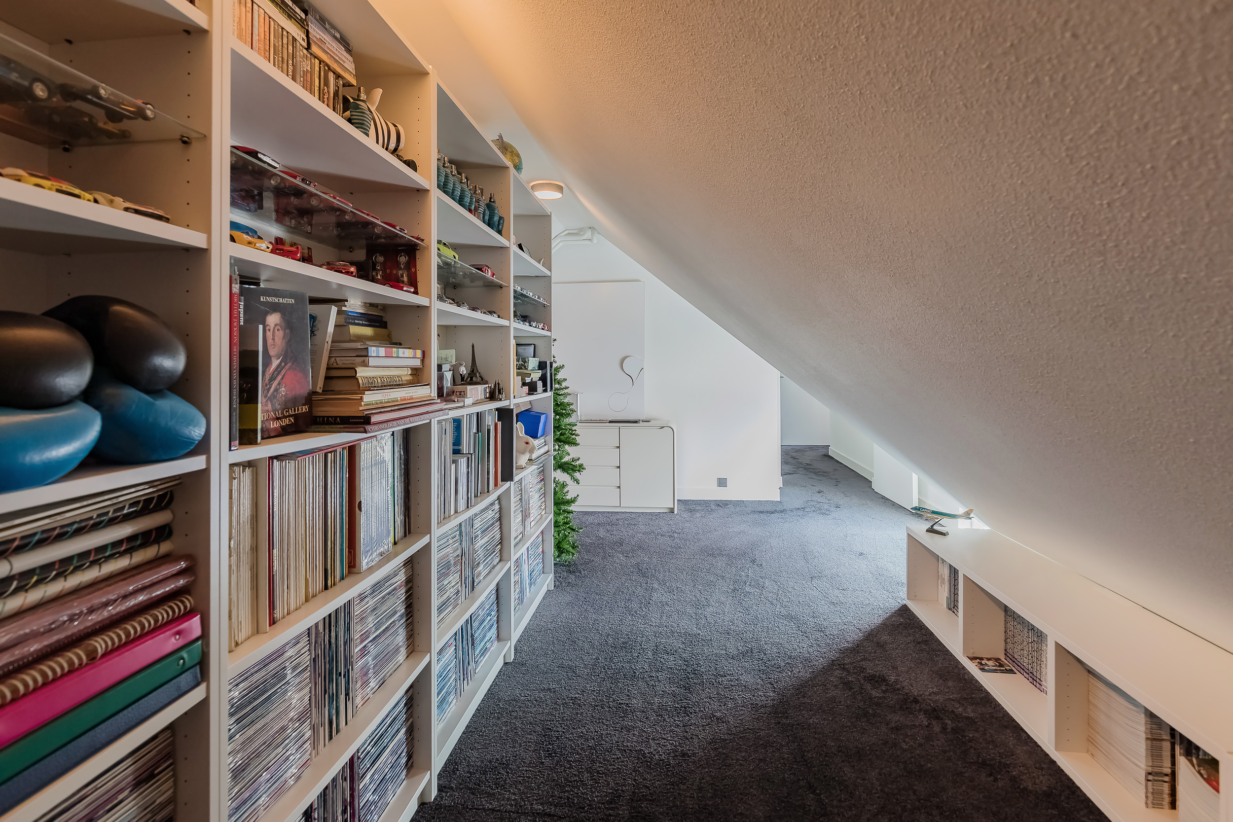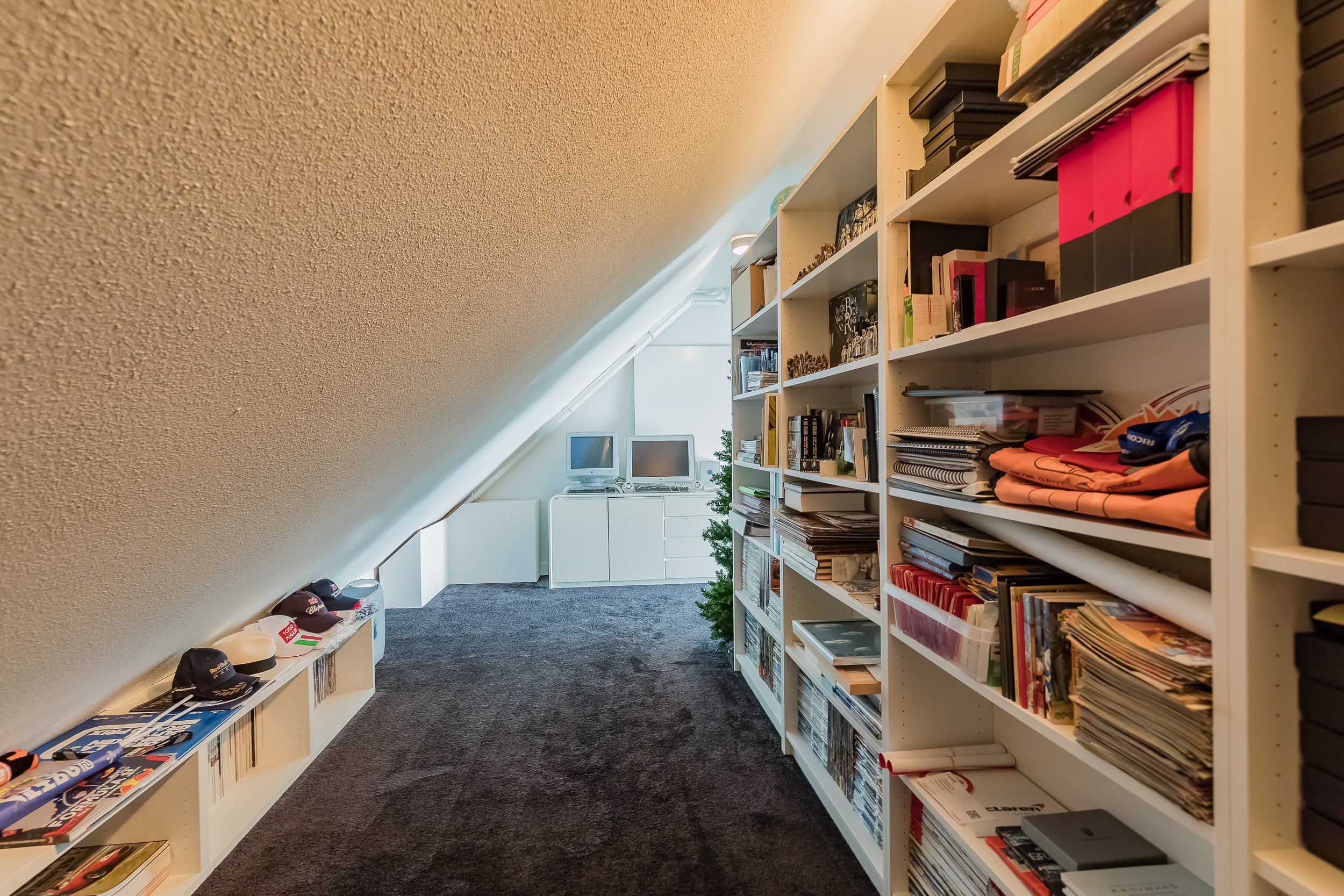 On this floor are 3 bedrooms, 2 bathrooms and a large storage room. The very generous master bedroom has its own luxurious bathroom and a spacious dressing room. The balcony can only be accessed from this room. 20 Skylights provide extra light and also here the symmetry is continued.