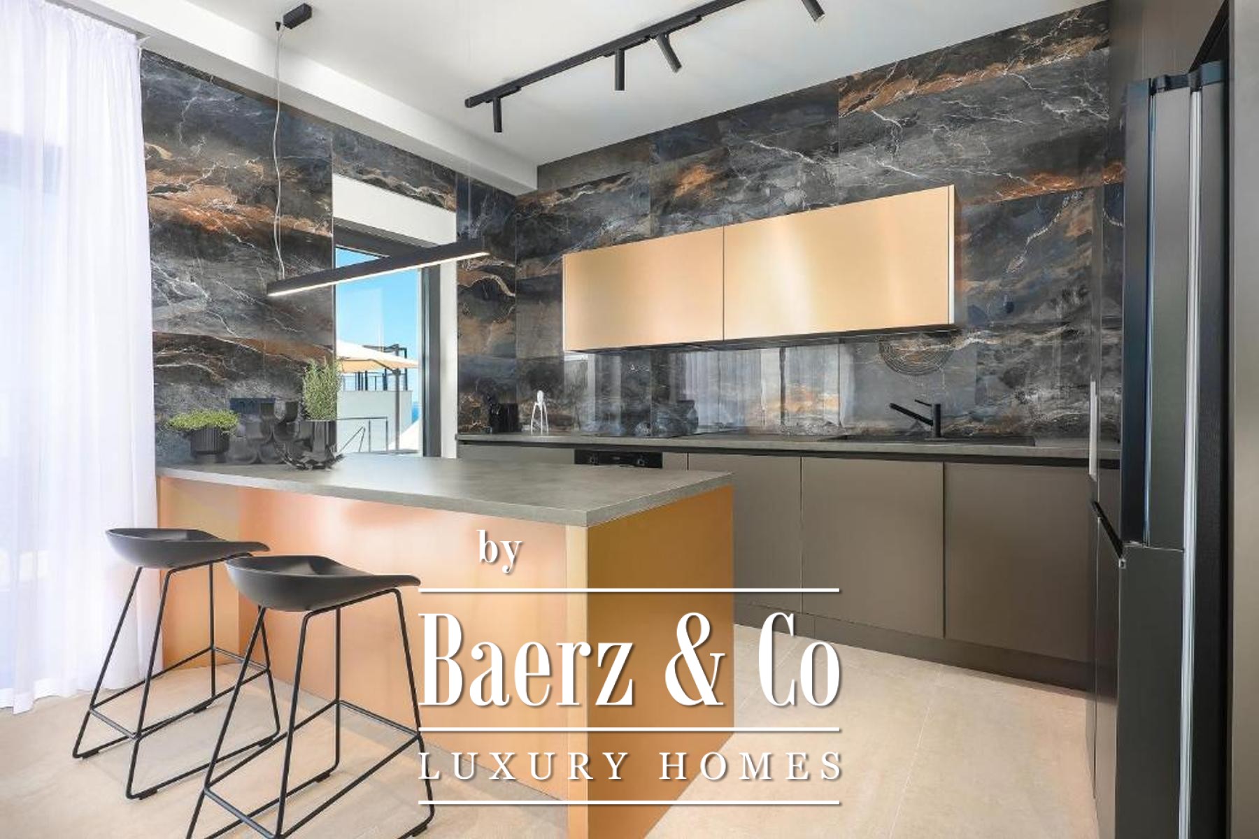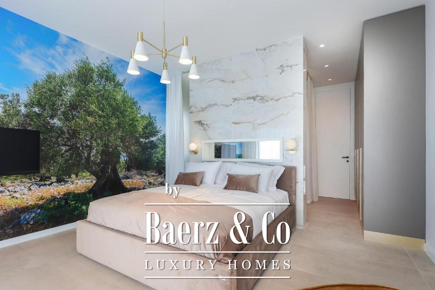 Luxury villa in an excellent location in Jakišnica (Lun), only 90 meters from the sea. It is situated on a landscaped plot of 804 m², surrounded by a carefully designed Mediterranean garden and open views of the sea and sunsets.The villa extends over two floors; the living area follows an open-space concept with direct access to the covered terrace and sun deck.Layout and key features:• 4 spacious bedrooms, each with its own en-suite bathroom