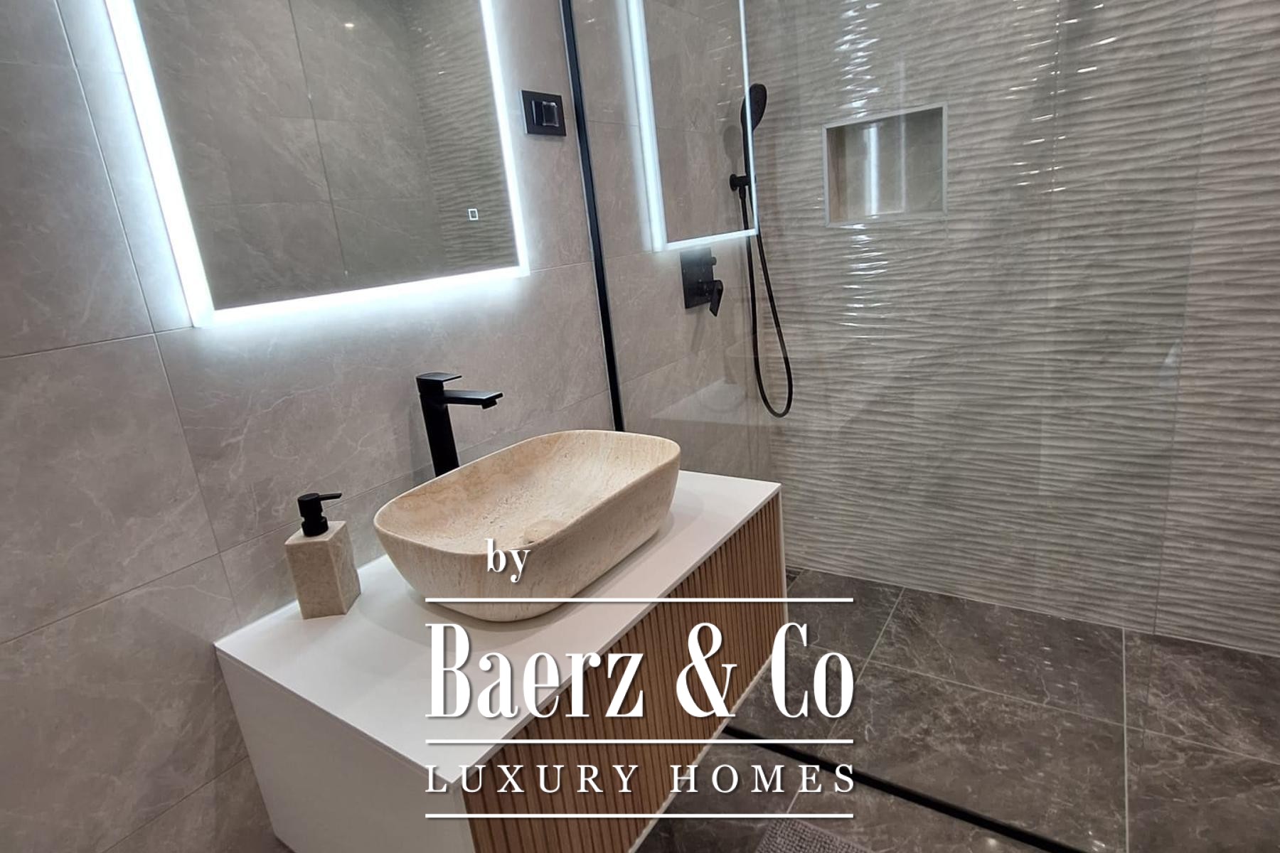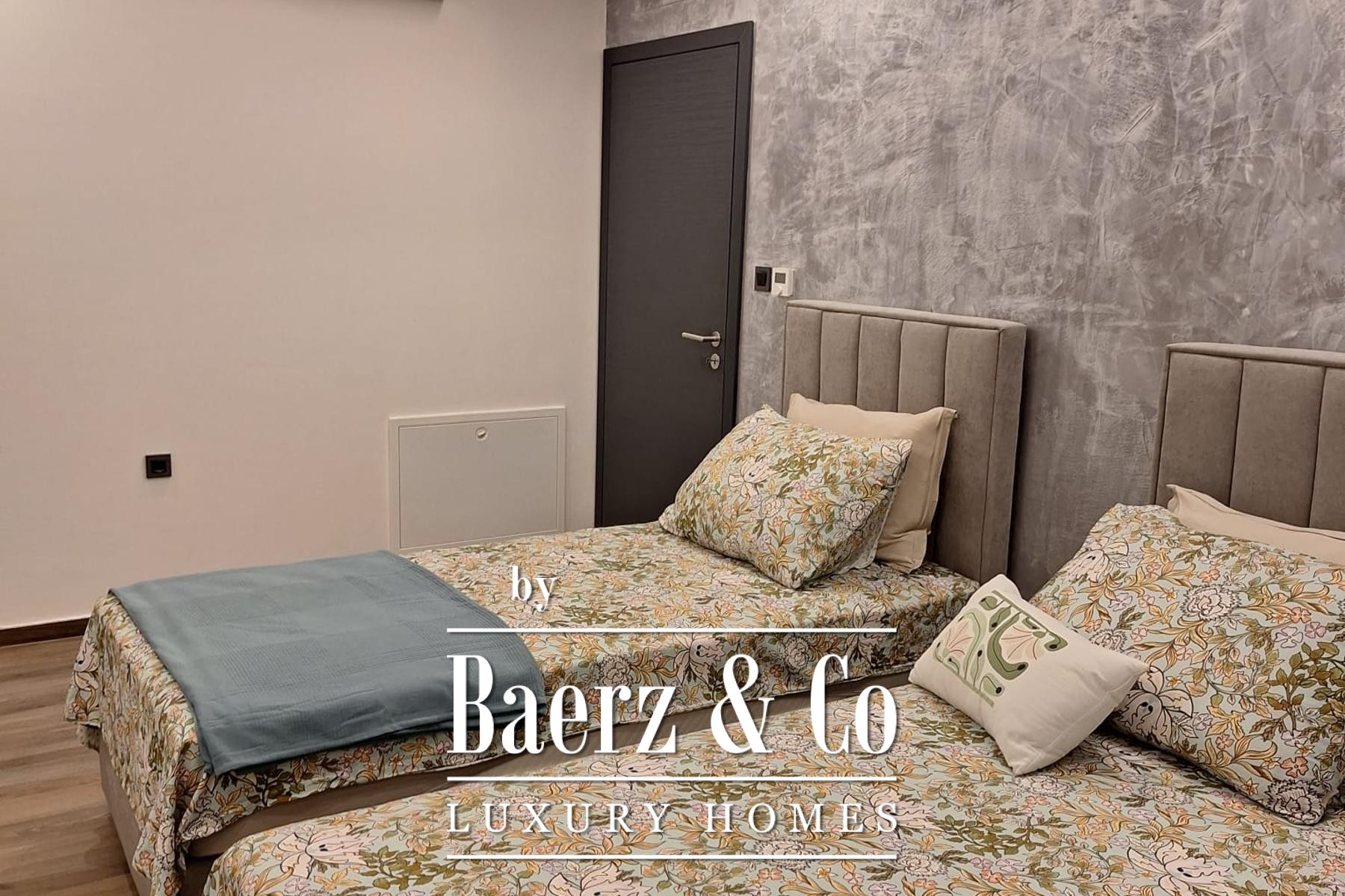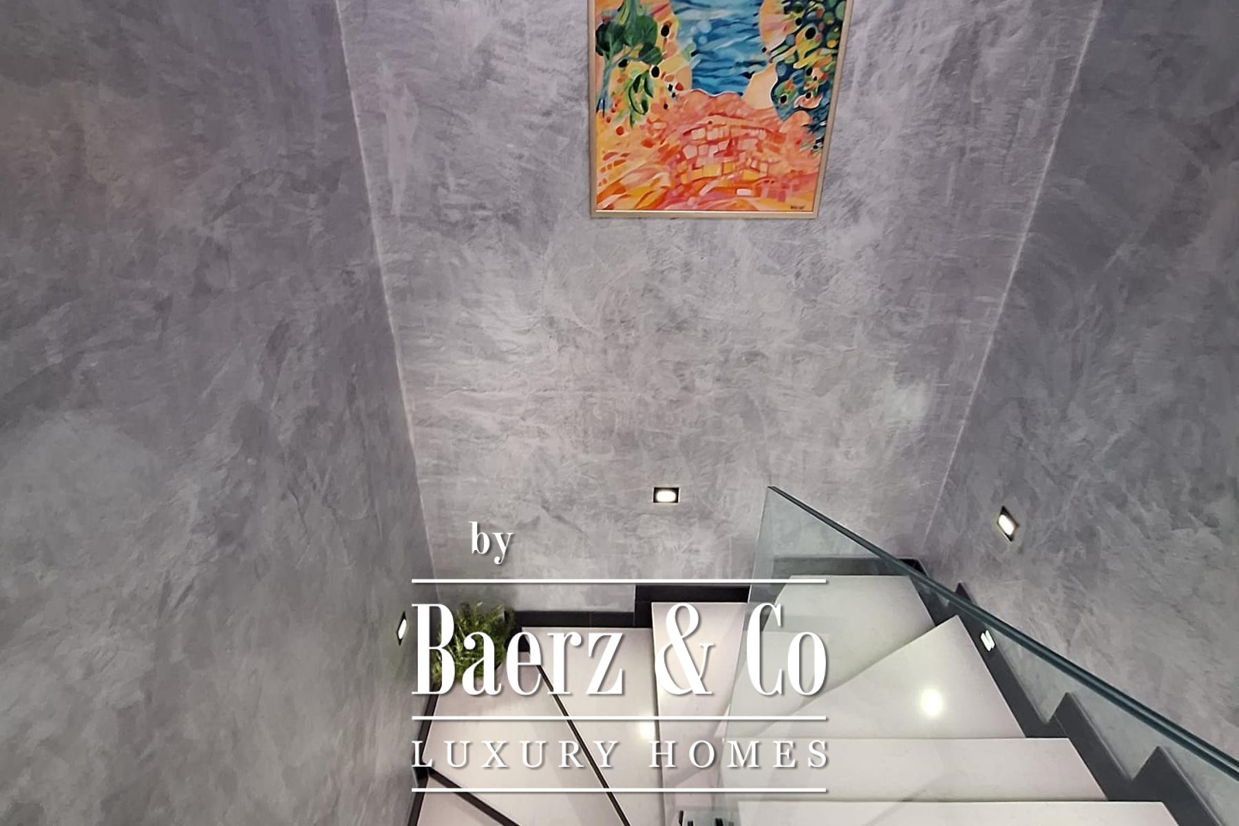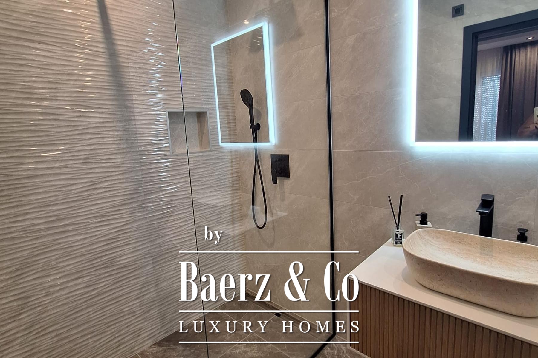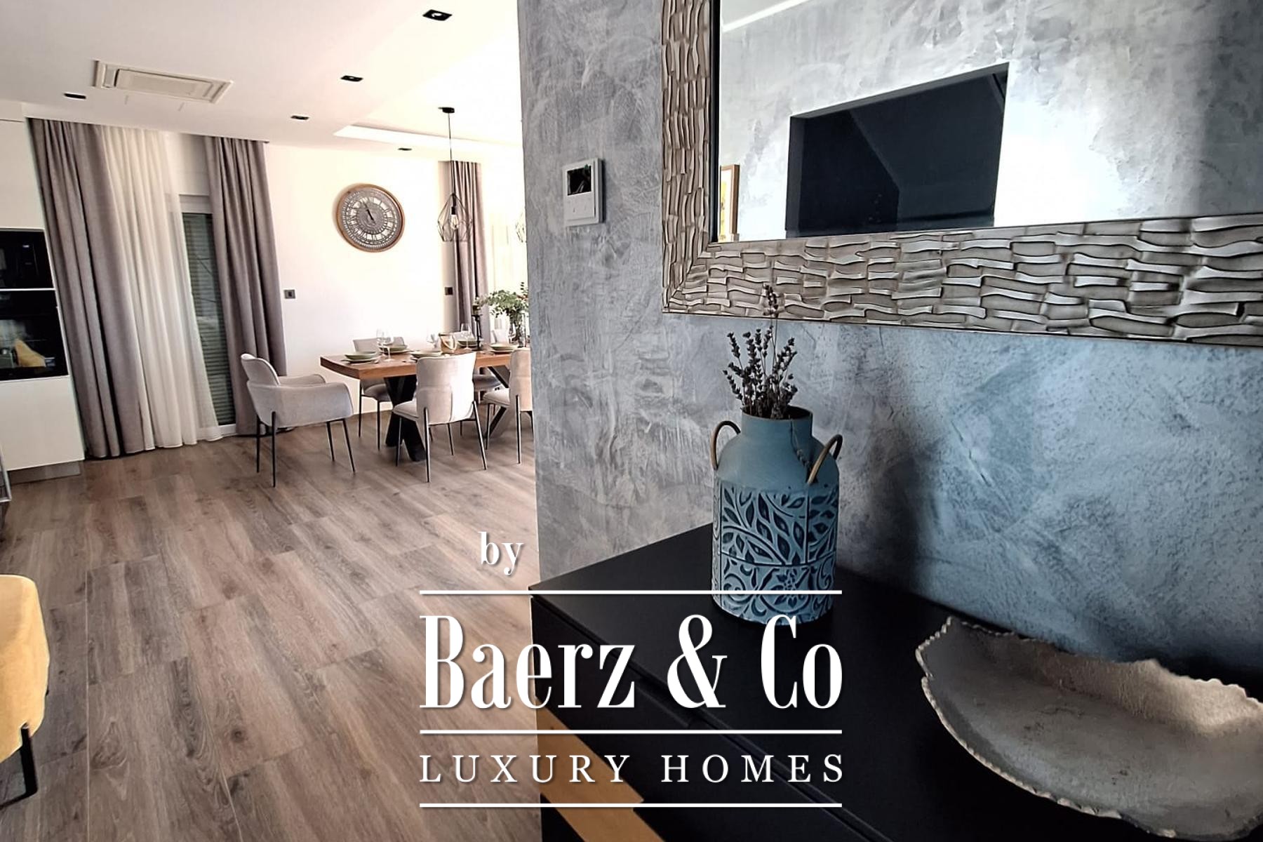 Upstairs, four bedrooms each occupy their own territory, all with private en-suite bathrooms, balancing autonomy with family togetherness. Outside, a generous terrace frames the swimming pool and extends the living space toward the sea, inviting extended afternoons of quiet contemplation or convivial gathering. This property, a luxury villa for sale in Novi Vinodolski, combines clarity of design with an enviable coastal address.