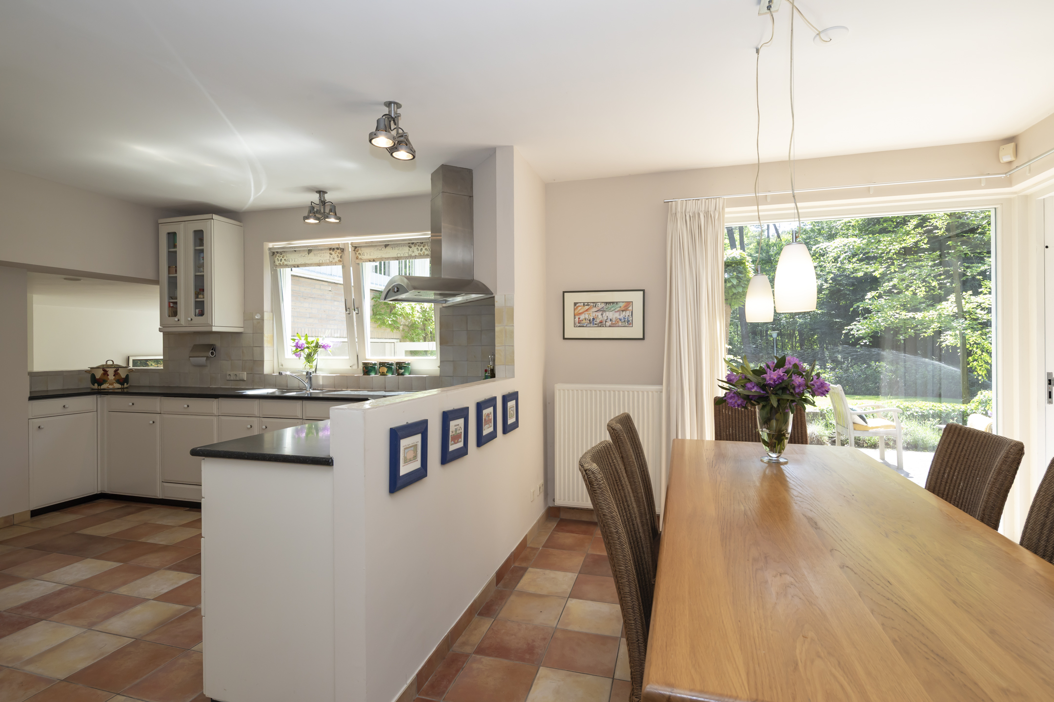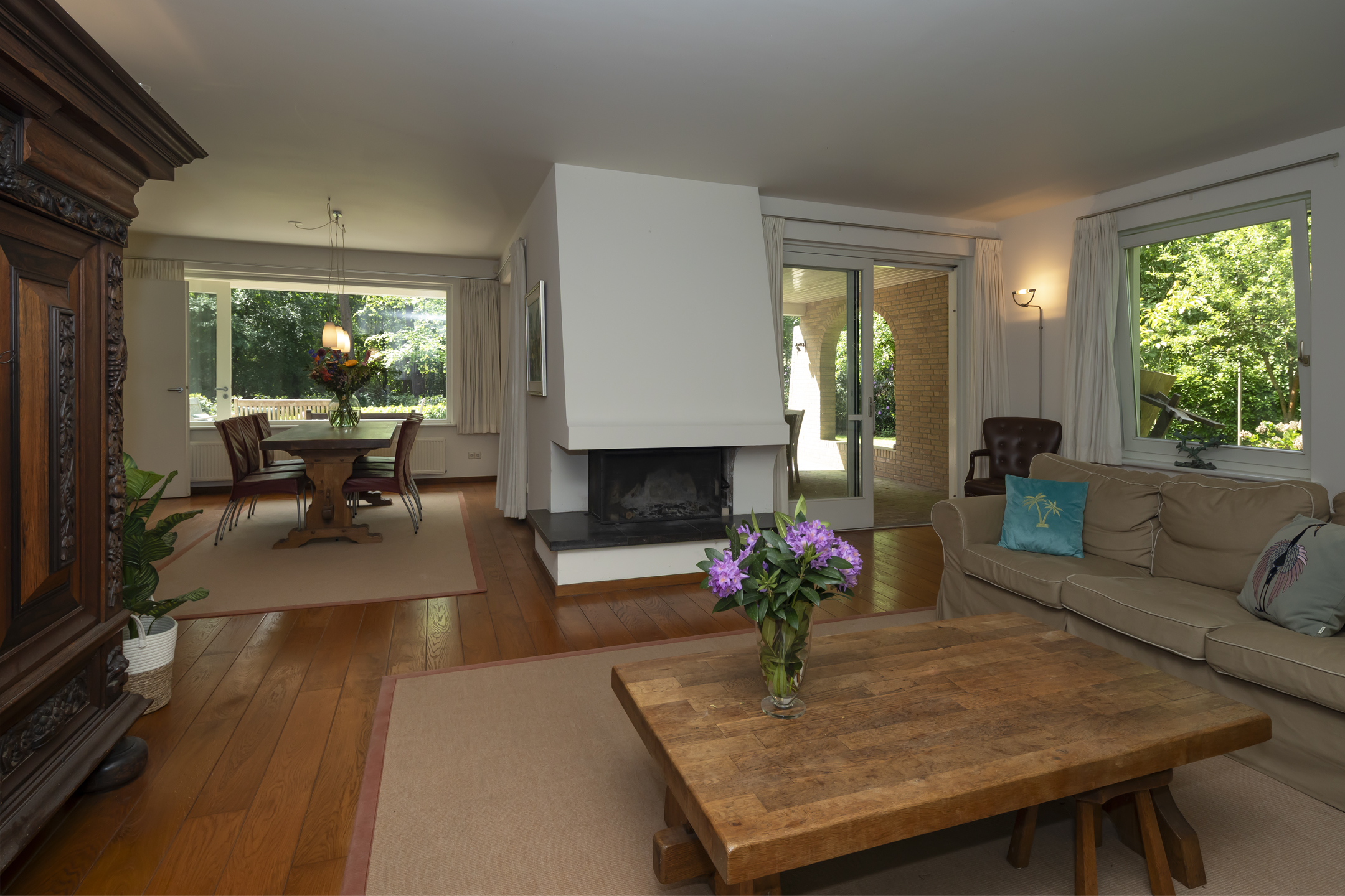 The house is free on all sides, maximizing the landscape's presence through generous windows, south-facing gardens, and a covered terrace that opens directly to the grounds. The living areas are understated yet welcoming, grounded by a fireplace, large sliding doors, and quality natural materials. The kitchen, fitted with high-spec appliances and a natural stone worktop, seamlessly connects with a dining room and utility spaces, while a multifunctional room and a study provide versatility. A wine cellar in the basement and ample storage throughout add to the sense of permanence.