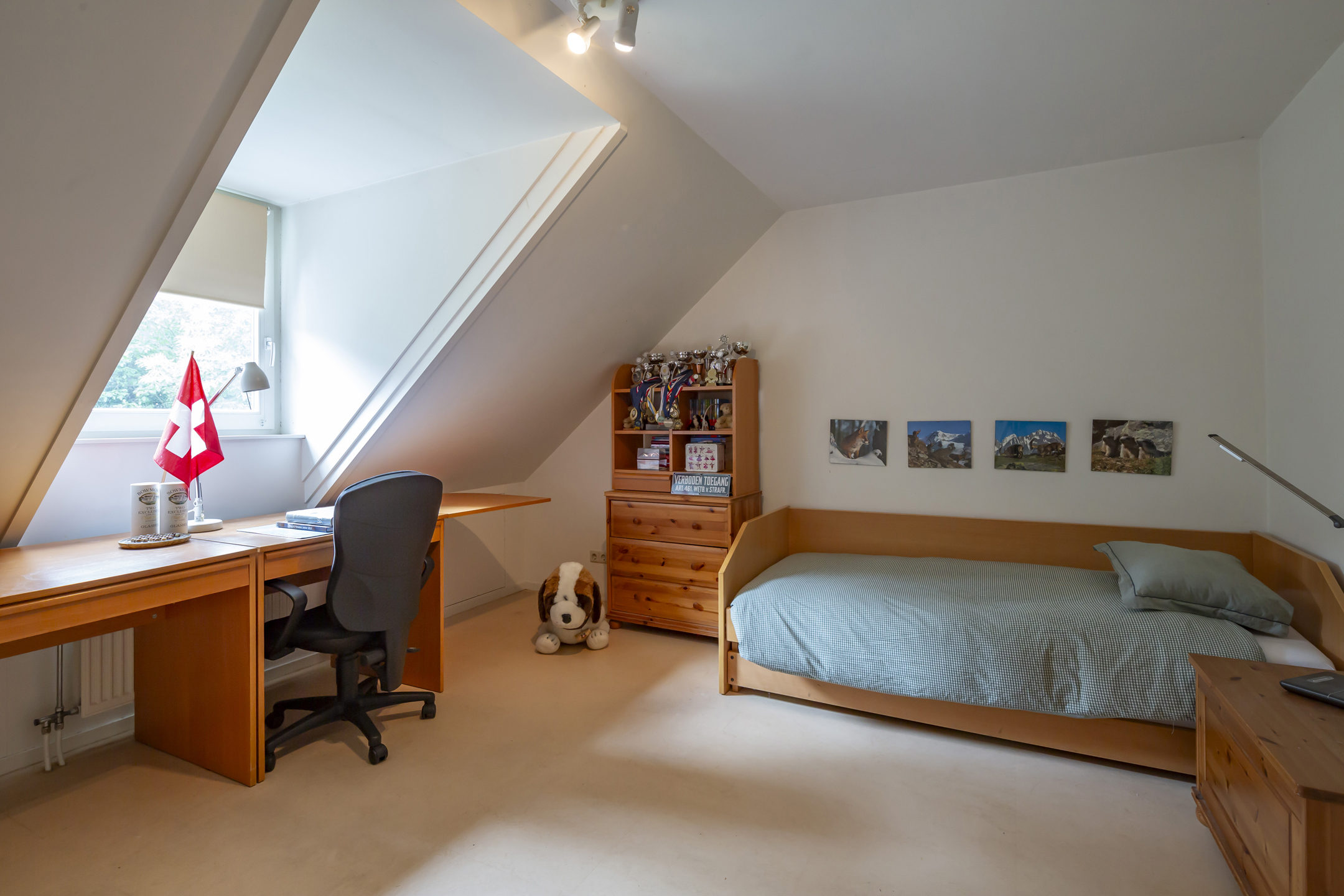 Upstairs, seven bedrooms accommodate family and guests in comfort, with two bathrooms, abundant fitted wardrobes, and a large loggia for quiet outdoor moments. Insulation standards and energy label B offer year-round comfort and security. The garage and detached storage provide further utility.