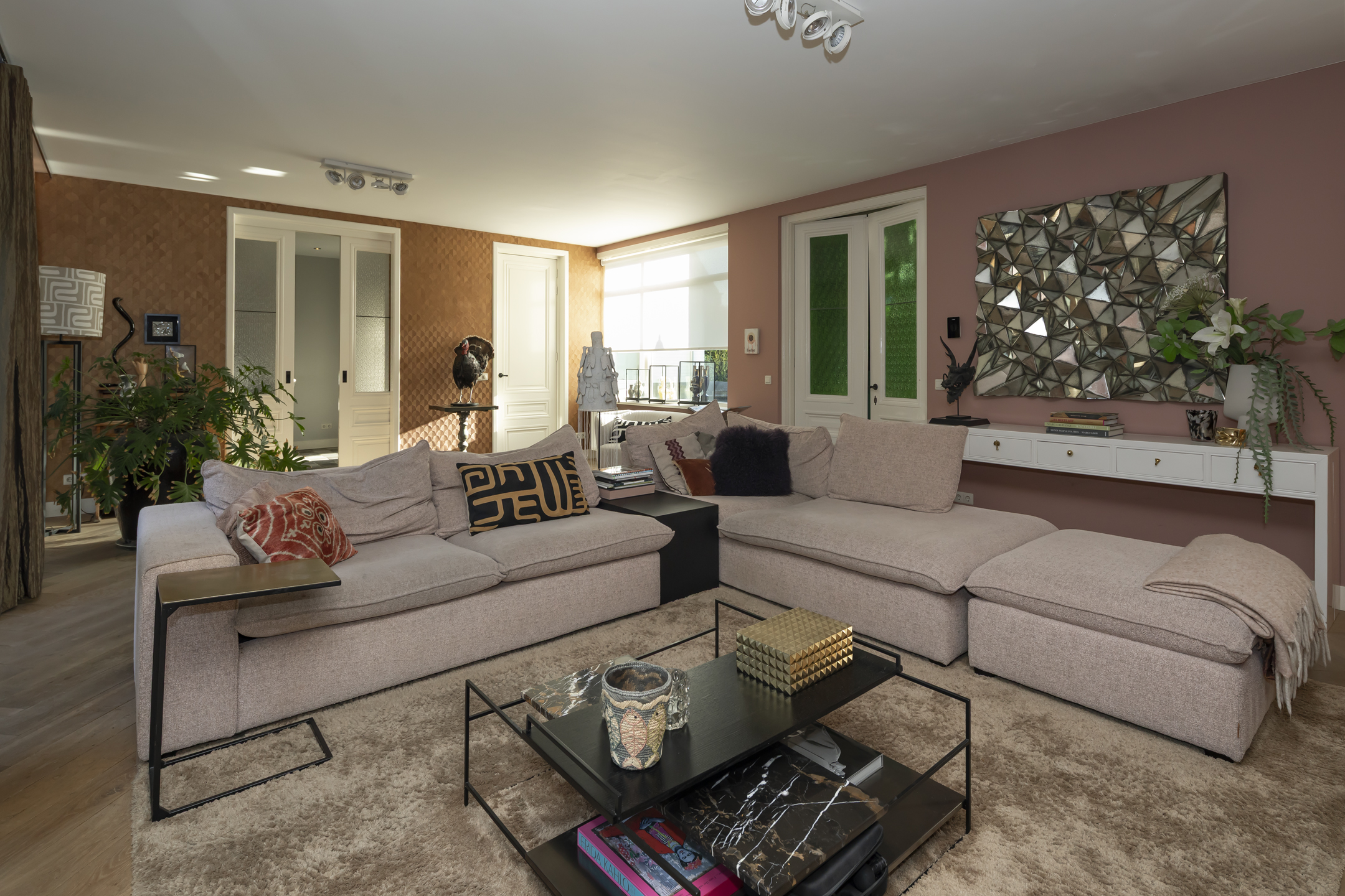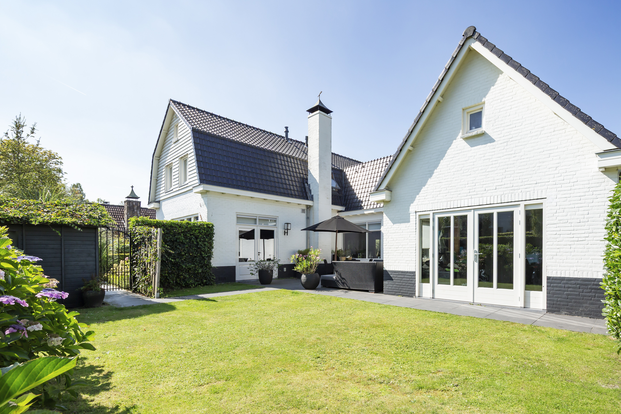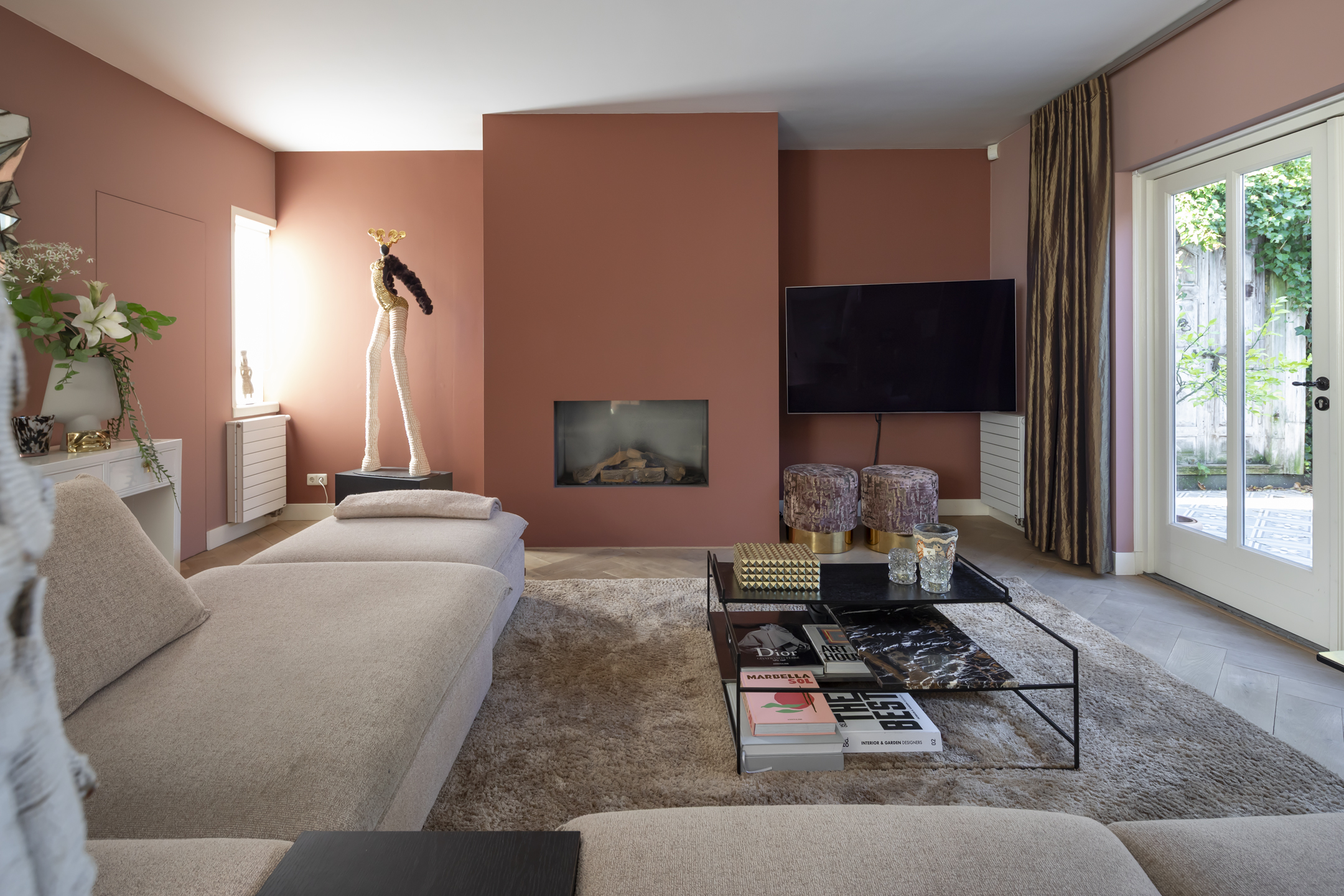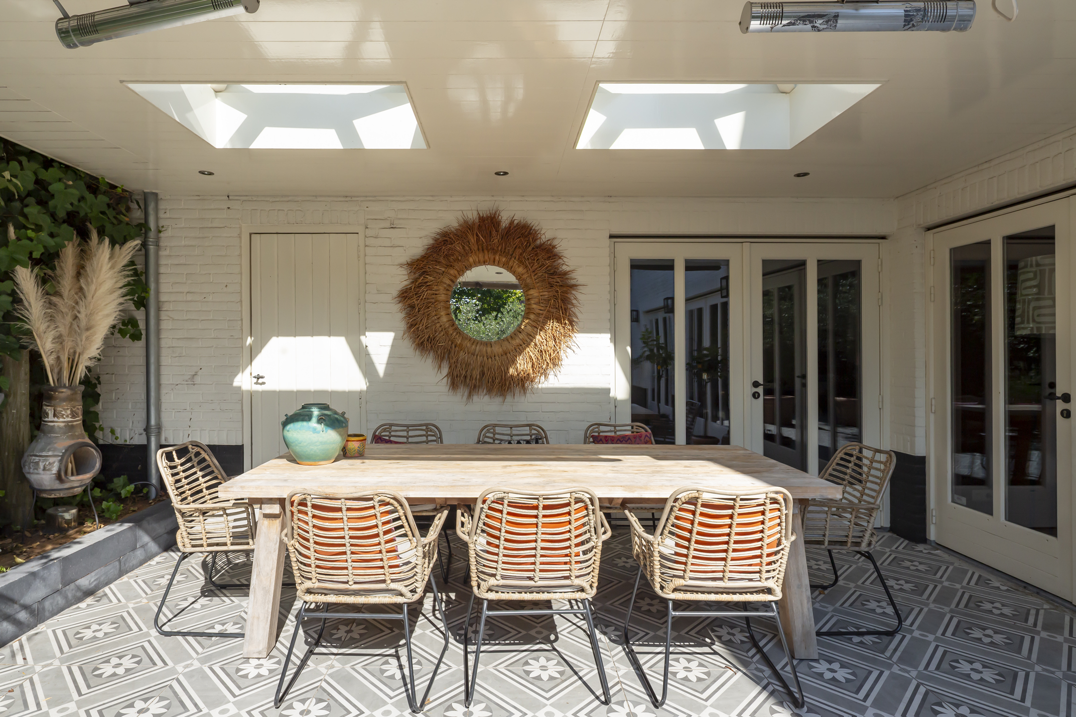 Met de openslaande deuren in de woonkamer naar de patiotuin is er een fijne verbinding met buiten.