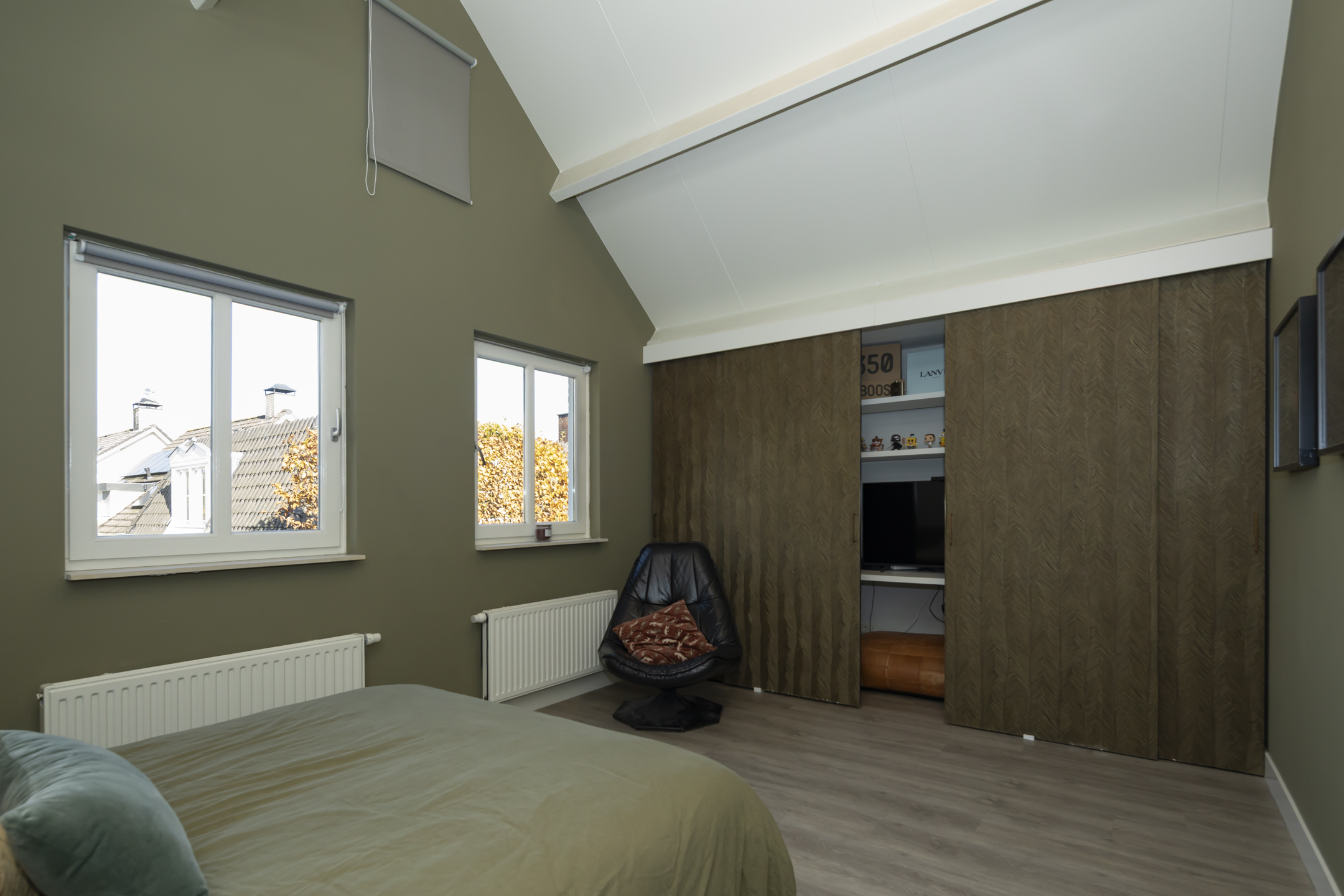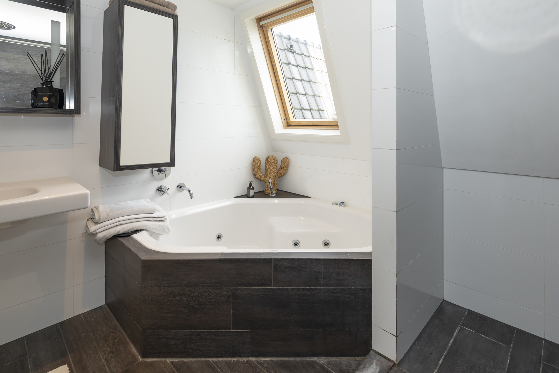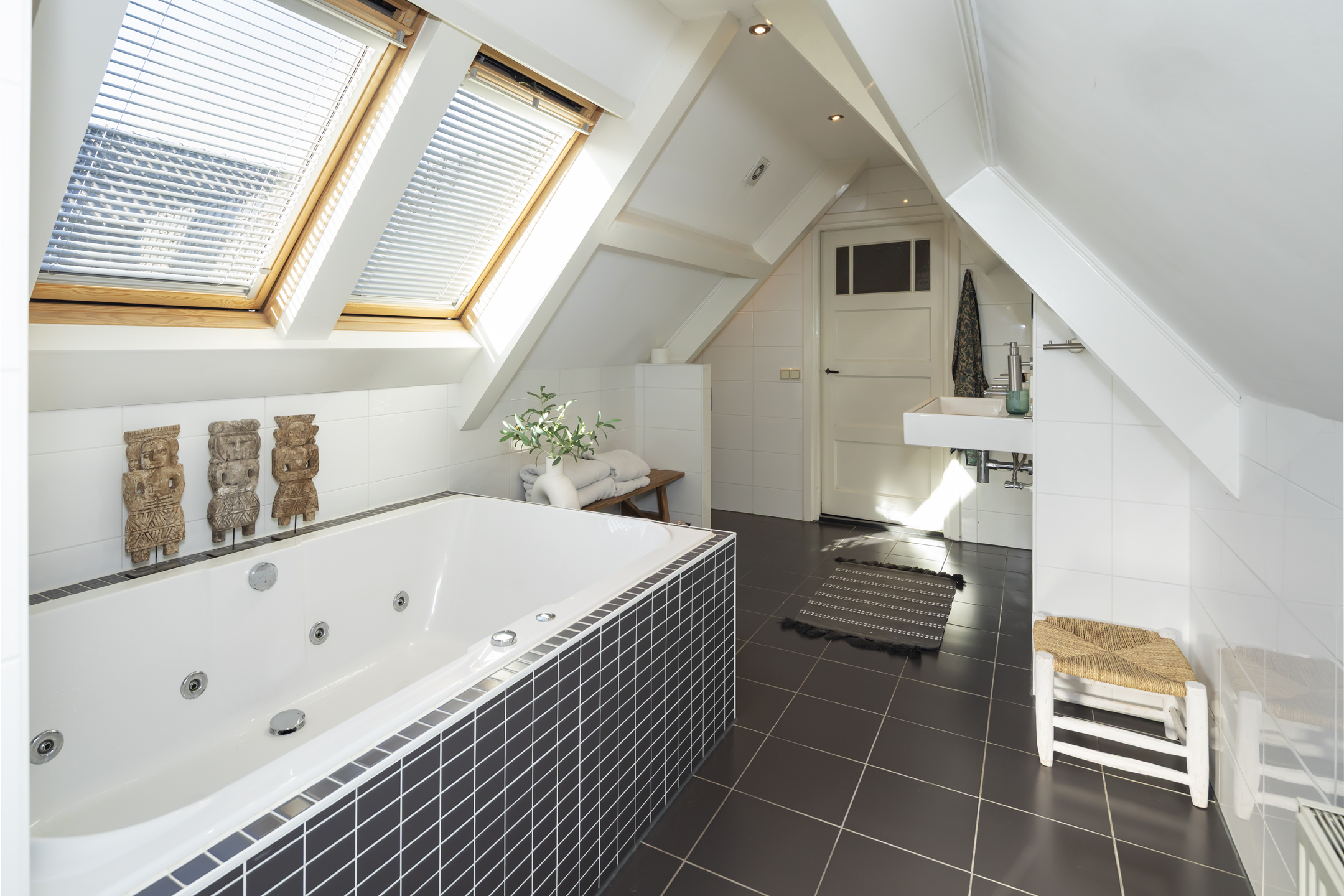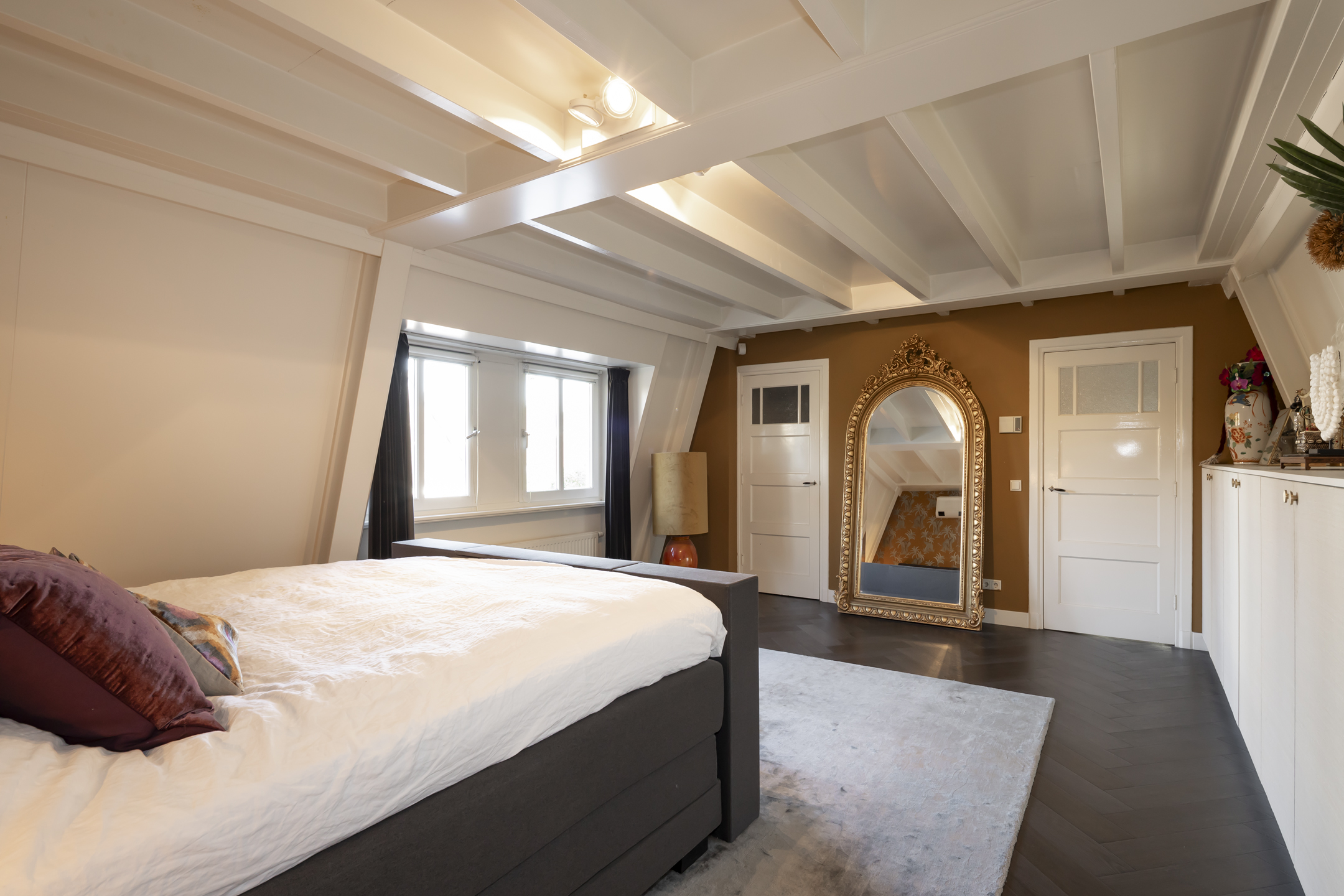 In totaal zijn er 4 goede slaapkamers en 2 badkamers. Er is verrassend veel bergruimte aanwezig dankzij de aanwezigheid van diverse inbouwkasten. Over bergruimte gesproken, dat brengt ons bij de bergzolder.