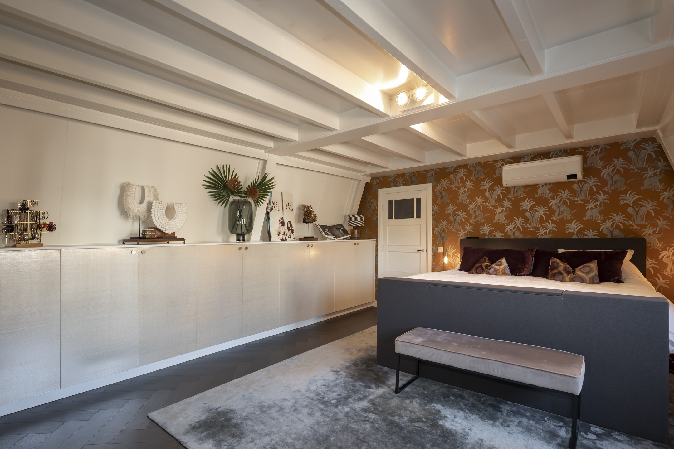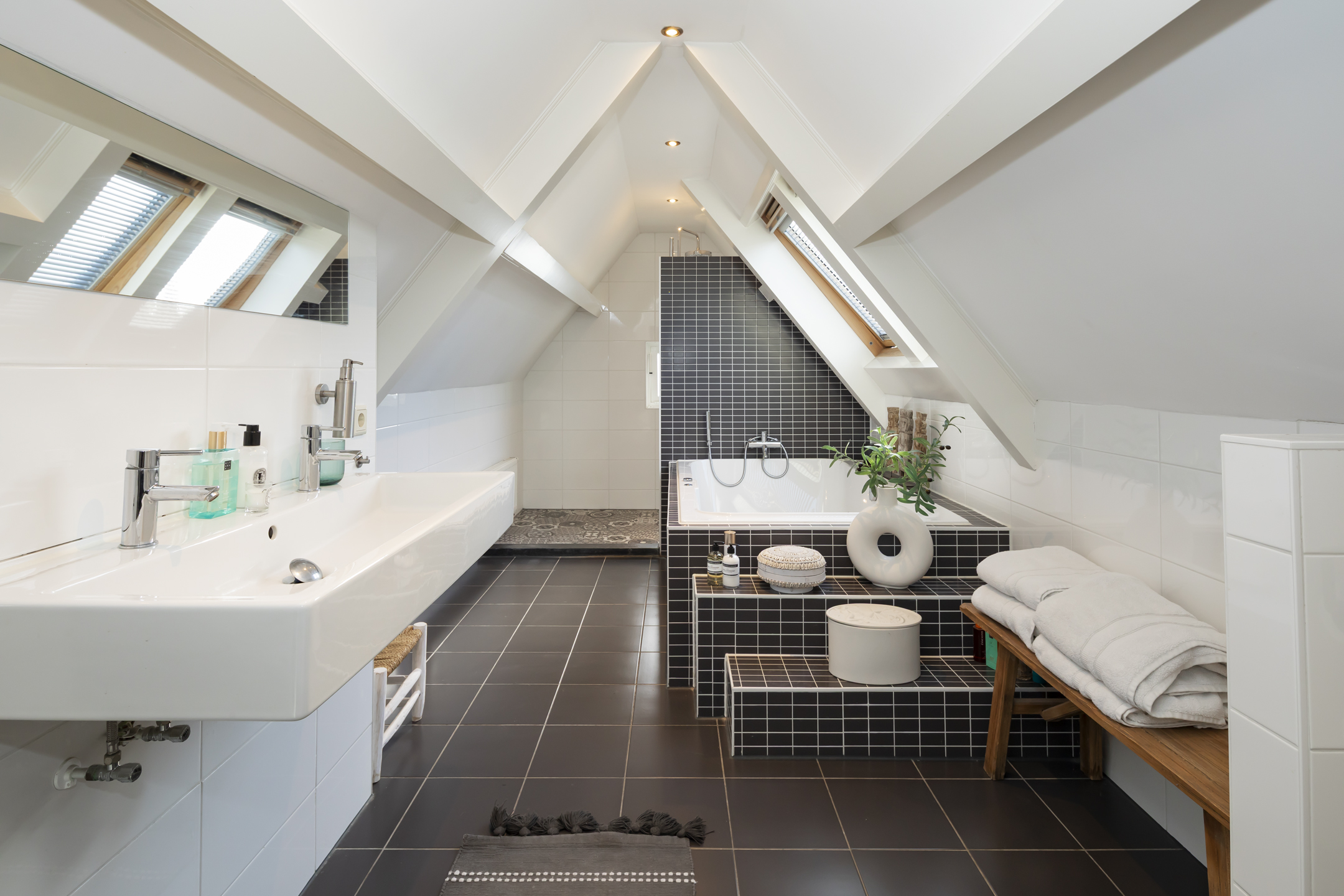Via een vaste trap is een grote bergzolder te bereiken. Je kunt hier écht veel spullen kwijt die je niet iedere dag nodig hebt. De bergzolder heeft geen stahoogte, maar loopt over een lengte van 9 meter. Heel praktisch en functioneel.