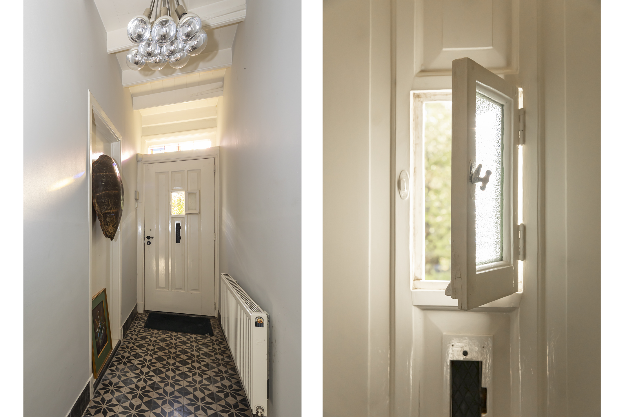 En sommige woningen hebben dat, je komt binnen in een hele fraaie, authentieke hal met een hoog plafond, met een mooie vloer en veel kleur, waardoor je benieuwd bent naar wat er nog meer achter deze voordeur schuilt.