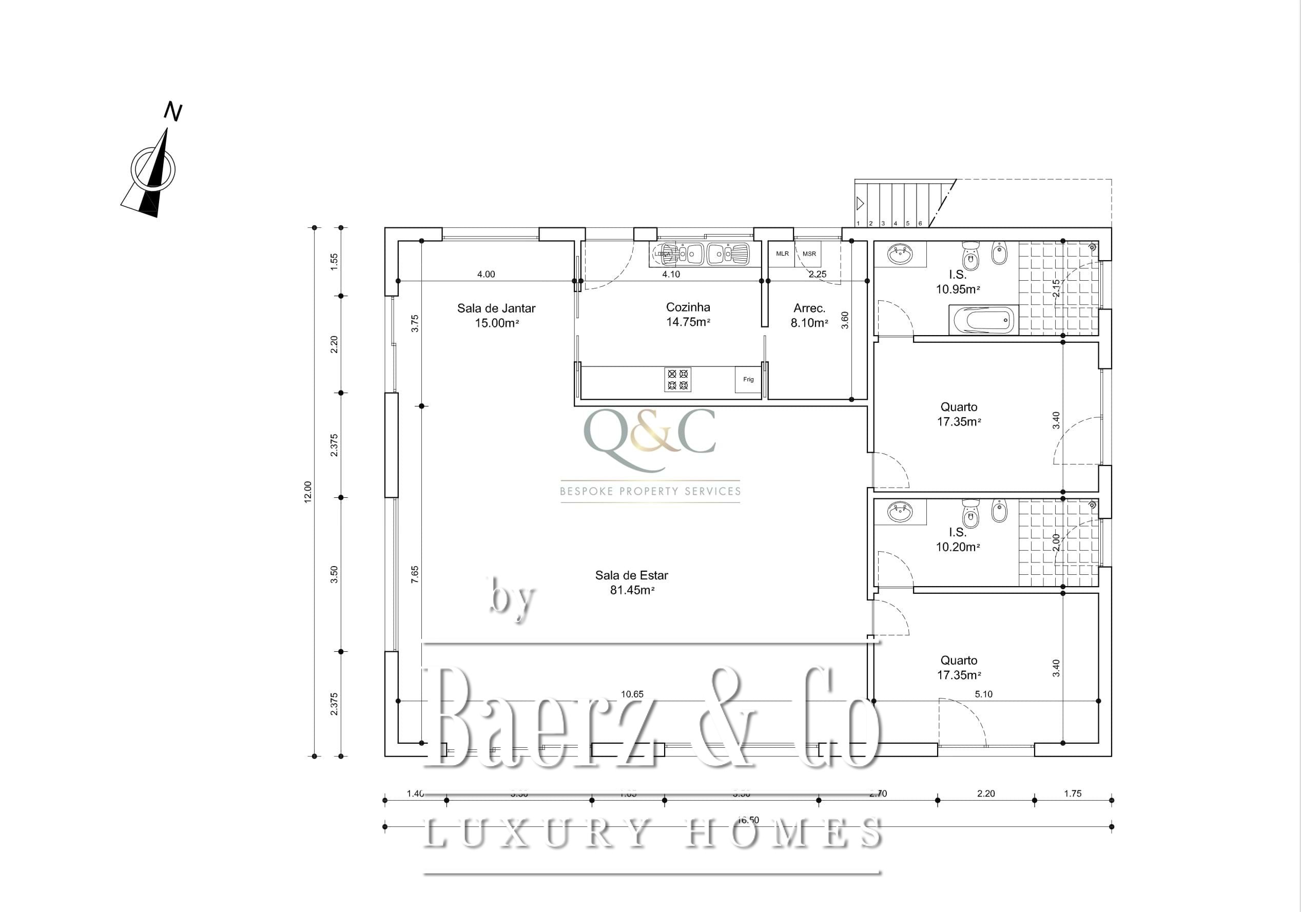 Spread over a 20,400 m² plot, the estate comprises a new 198 m² house under advanced construction, while a second 338 m² residence has its foundation laid and approved planning in place. These two villas, with a combined living area of 536 m², present rare flexibility for a primary residence, guest house, or future investment in the Algarve. Four bedrooms and three bathrooms are elegantly considered into the design, with outdoor spaces including a rooftop terrace to amplify the connection to sea and sky.