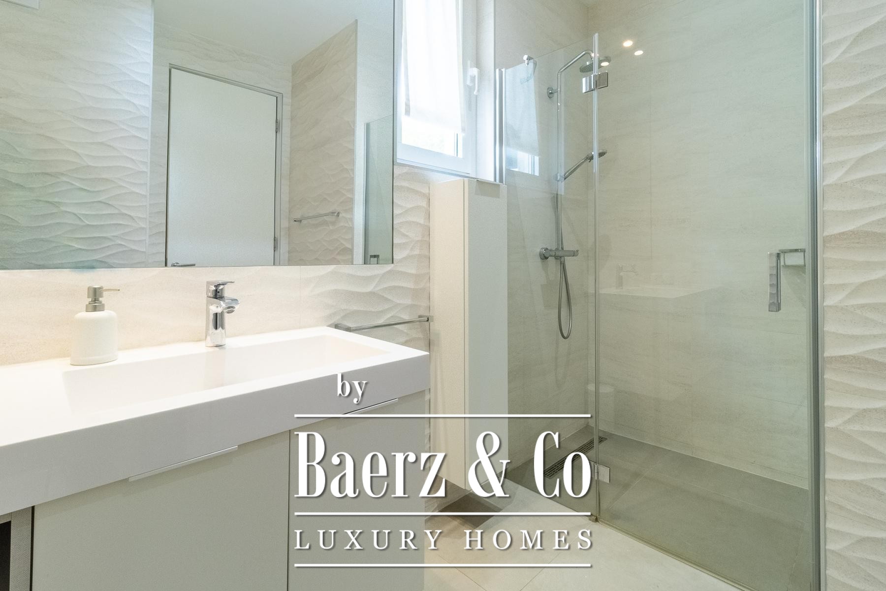 Two covered balconies invite tranquil views of the Mediterranean surroundings, enhancing the sense of connection between indoors and out. The highlight is a 50.20 m² rooftop terrace with Jacuzzi and an adjoining toilet, presenting an elevated escape for both intimate relaxation and sophisticated entertaining. Further elevating its exclusivity are three garage parking spaces, an outdoor parking place, and dedicated storage in the basement.