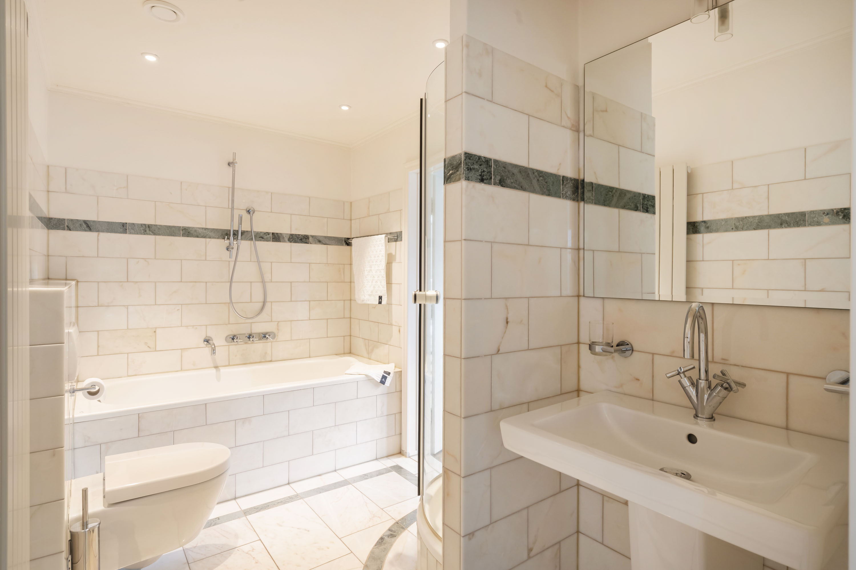 Interiors evoke restrained luxury: a live-in kitchen clad in stone and steel, living spaces under solid oak floors, and bedrooms offering privacy and comfort. The master suite features an ensuite bathroom with a steam shower cabin. Subtle grandeur flows through the conservatory and continues outdoors, where terraces, lawns, and mature trees embrace the home in a timeless landscape. The estate includes a private wellness outbuilding with an indoor pool, sauna, expansive gym area, and jacuzzi terrace, amplifying its sense of sanctuary.