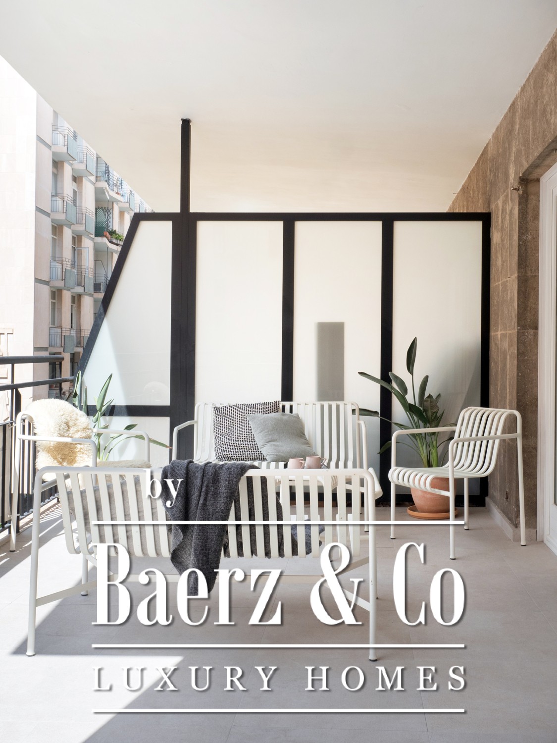 Four bedrooms offer privacy and each boasts a dedicated en-suite bathroom. Parquet floors run throughout, enhancing the interplay of warm character and sleek Scandinavian design. A private terrace of 16 m² extends the living space outdoors, inviting glimpses of Palma’s gentle Mediterranean light. For urban convenience, a parking space is included in the neighboring building.