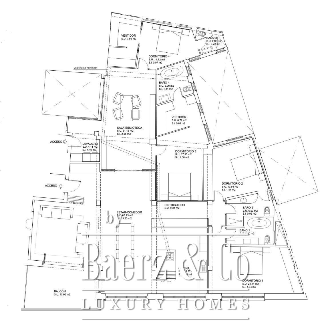 Apartment Palma De Mallorca Old Town defines city living amid rich history and contemporary refinement. Occupying the third floor along an exclusive street, this property offers a 260 m² usable area arranged for both comfort and quiet sophistication. The open-plan living and dining space merges with a modern kitchen, anchored by a central island, creating an inviting atmosphere for both gathering and retreat. A second living room, designed as a tranquil library, provides a space for reflection or immersive work.