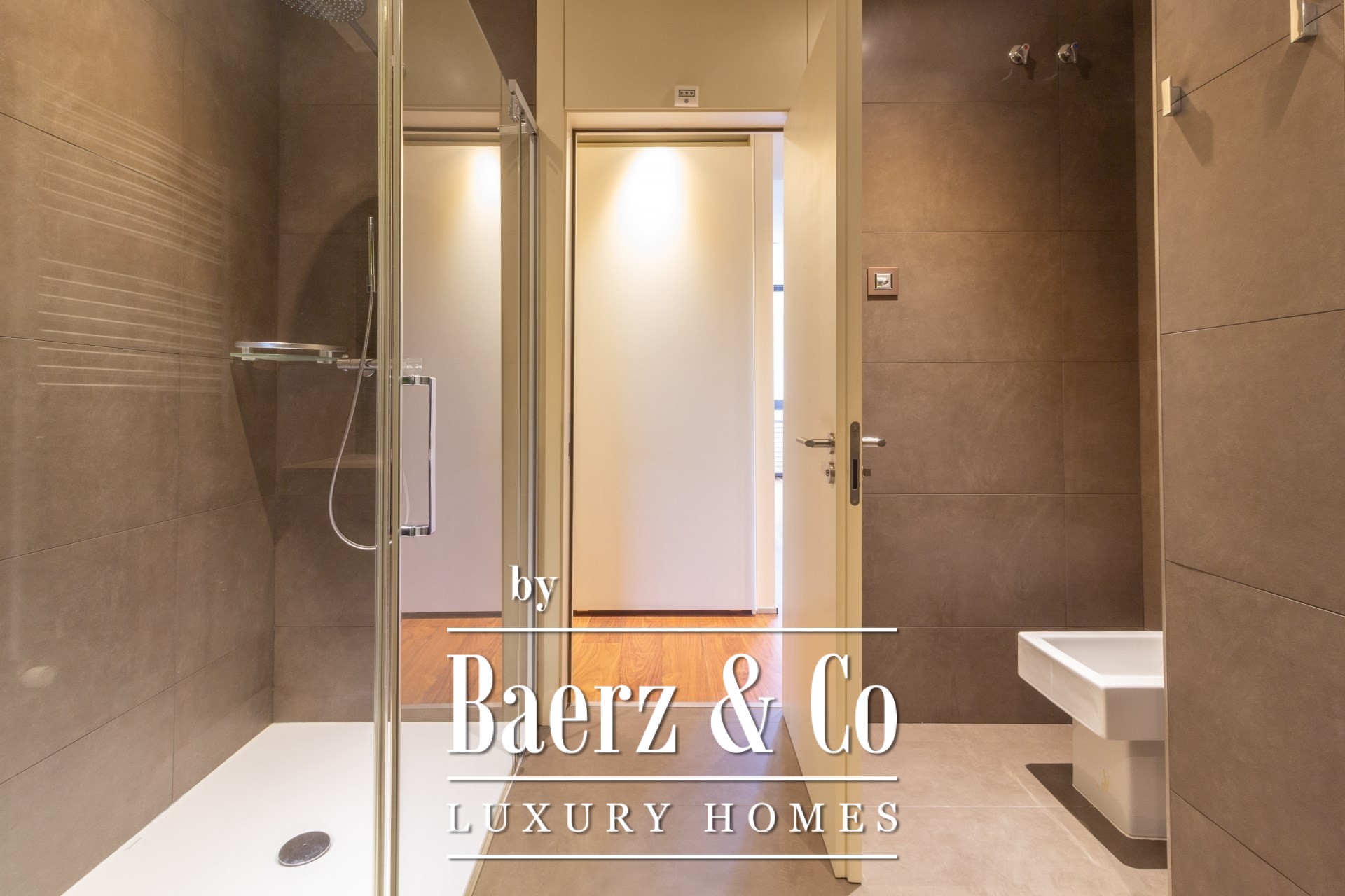 Outdoors, mature gardens surround the pool with its waterfall feature, a barbecue and outdoor kitchen, and expansive chill-out spaces. Underfloor heating, ducted air conditioning, electric windows, integrated audio, complete surveillance, and an elevator underscore the emphasis on comfort and security.