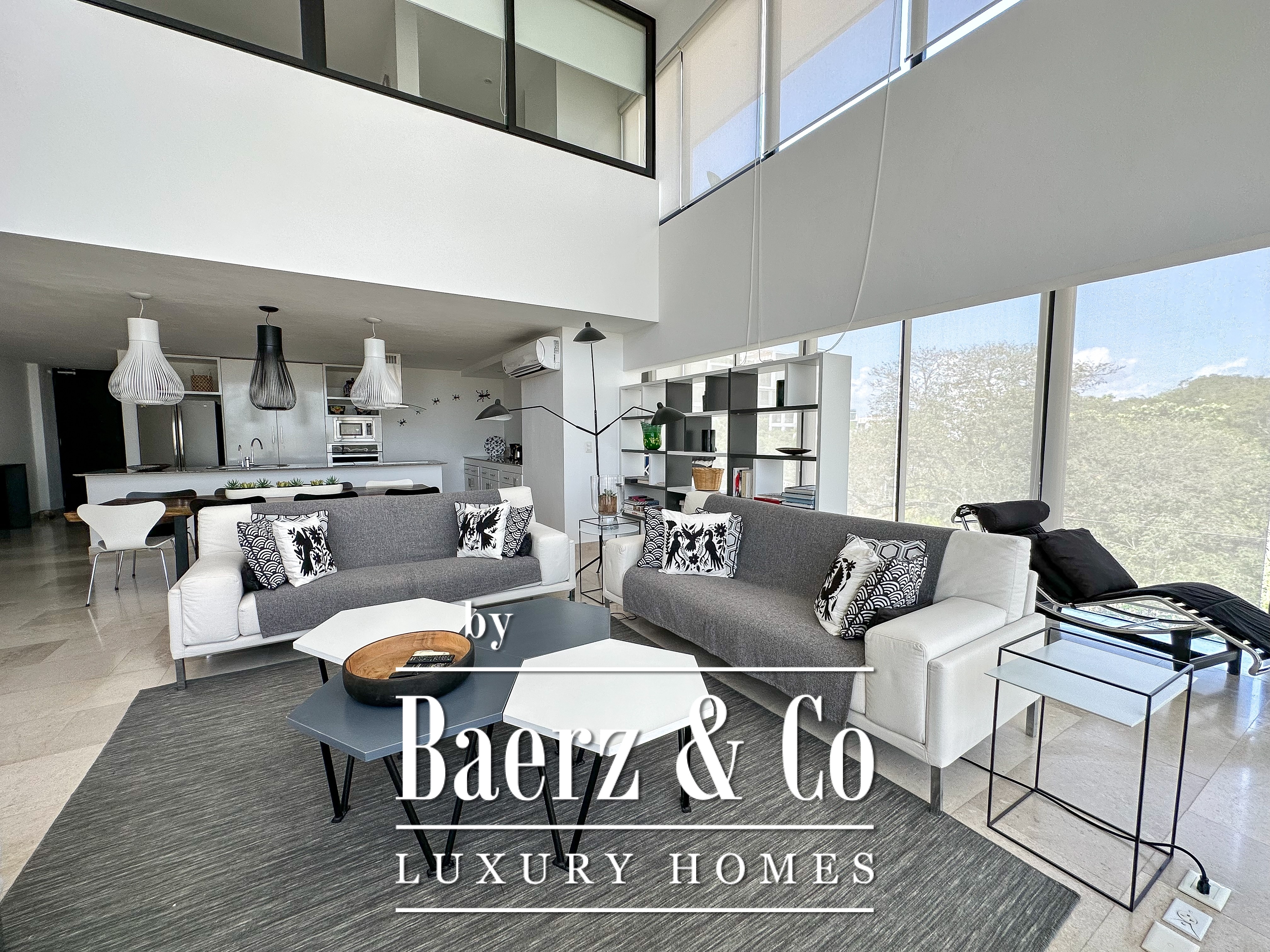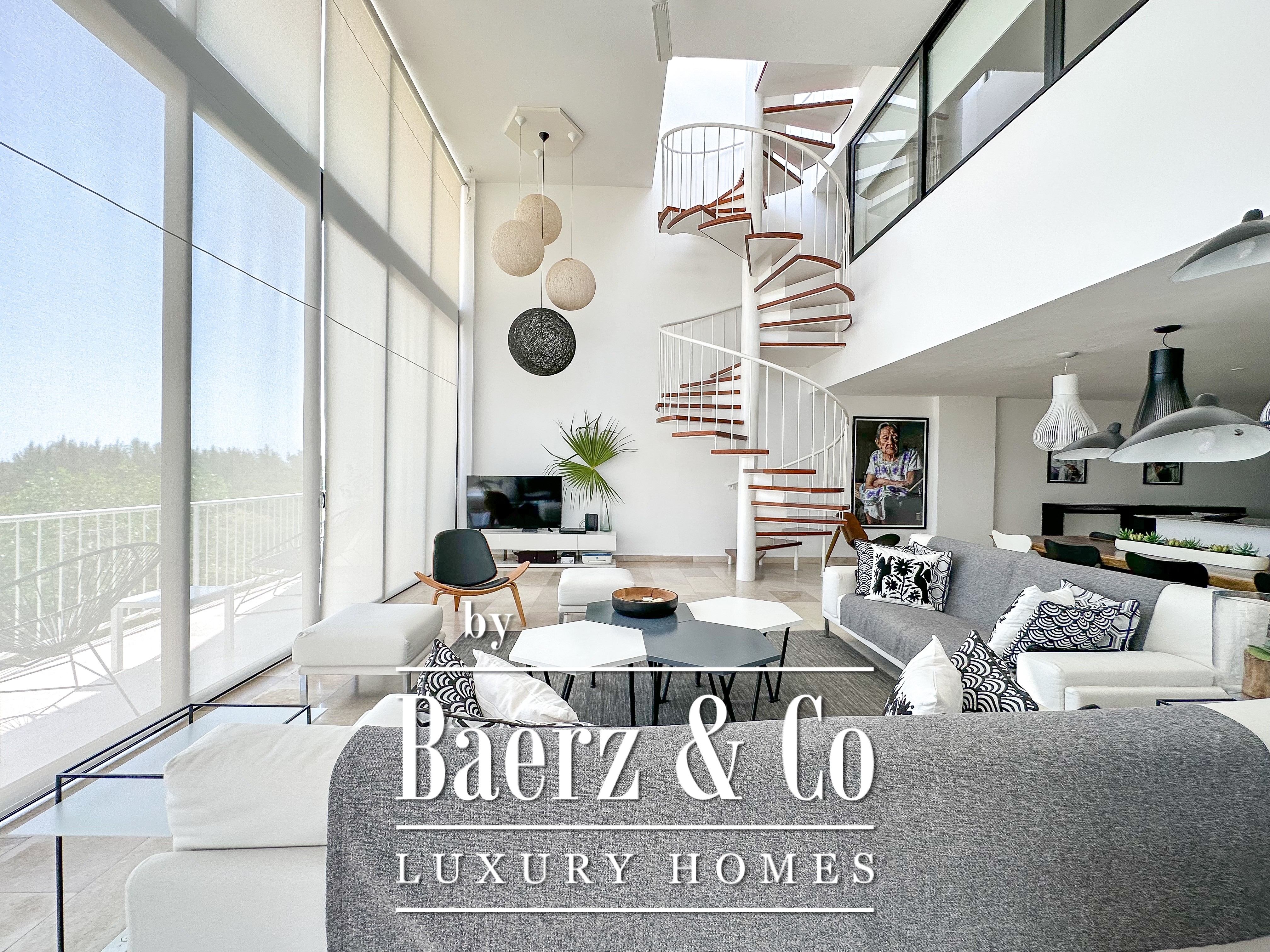 Penthouse Playa del Carmen brings refined coastal living one block from the turquoise Caribbean Sea. This four-bedroom penthouse encompasses more than 330 square meters, integrating natural light and views across both mangrove and ocean. The living experience here unfolds gracefully, framed by a connection to both the elements and an understated European design sensibility. Each of the four bedrooms features en-suite bathrooms, and a guest bathroom adds further practicality for gatherings.
