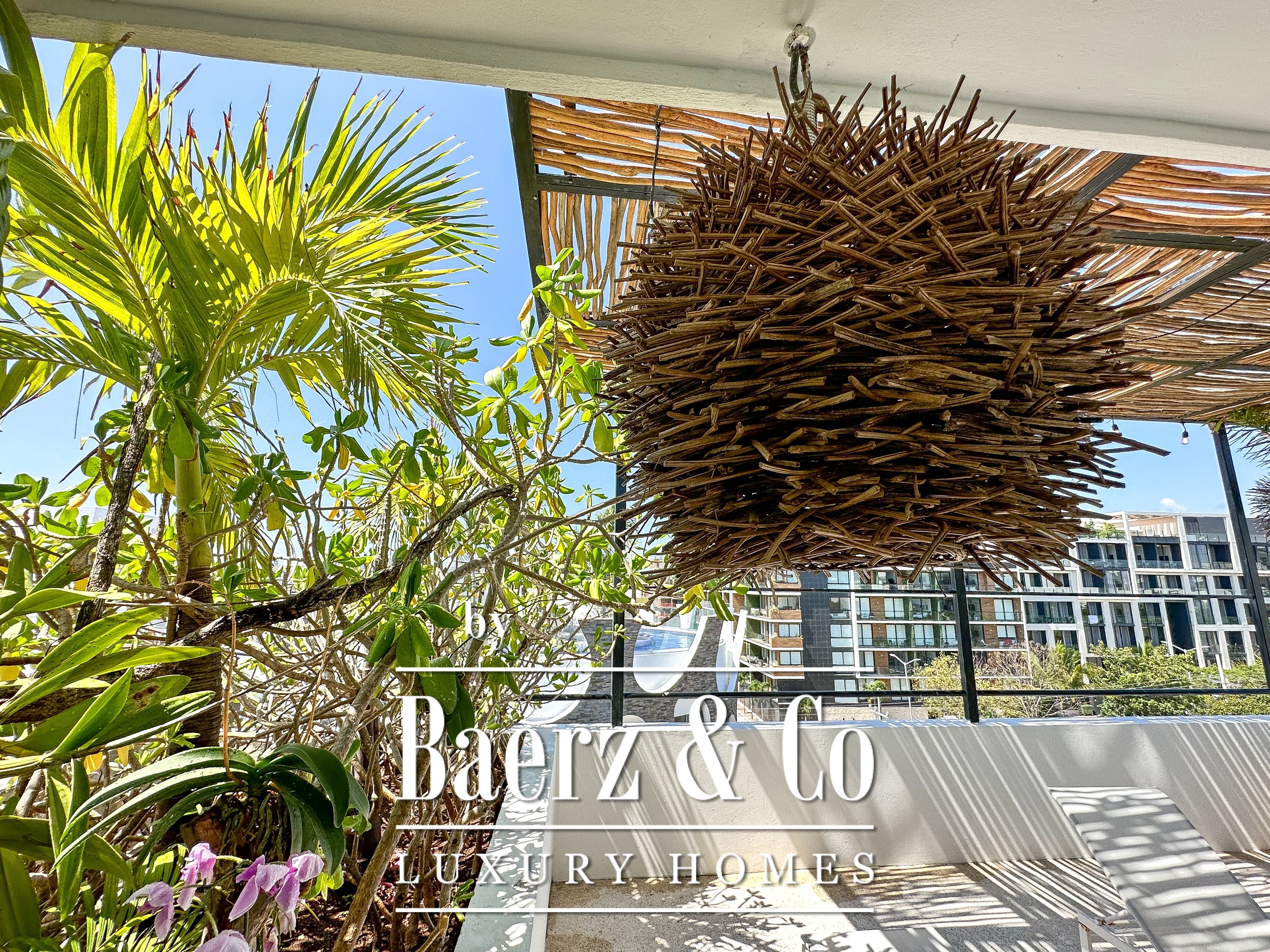 The central living area is open yet composed, with spaciousness that encourages relaxation. Two terraces and a private balcony invite seamless transitions from interior to exterior, allowing the rhythm of ocean breezes and subtle evening light to permeate daily life. Atop the residence, a secluded rooftop terrace with private pool commands panoramic sea and mangrove vistas, perfectly positioned for tranquil evenings or gatherings.