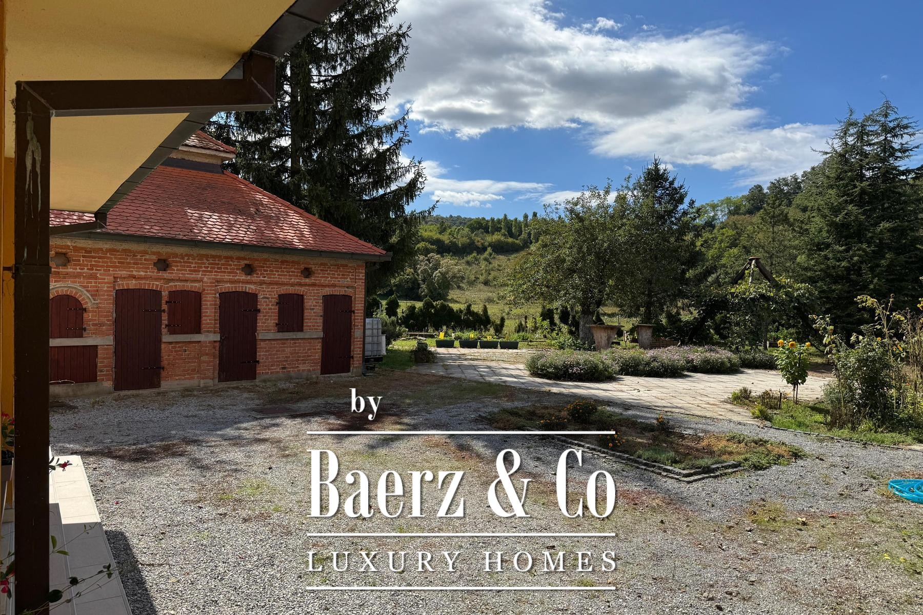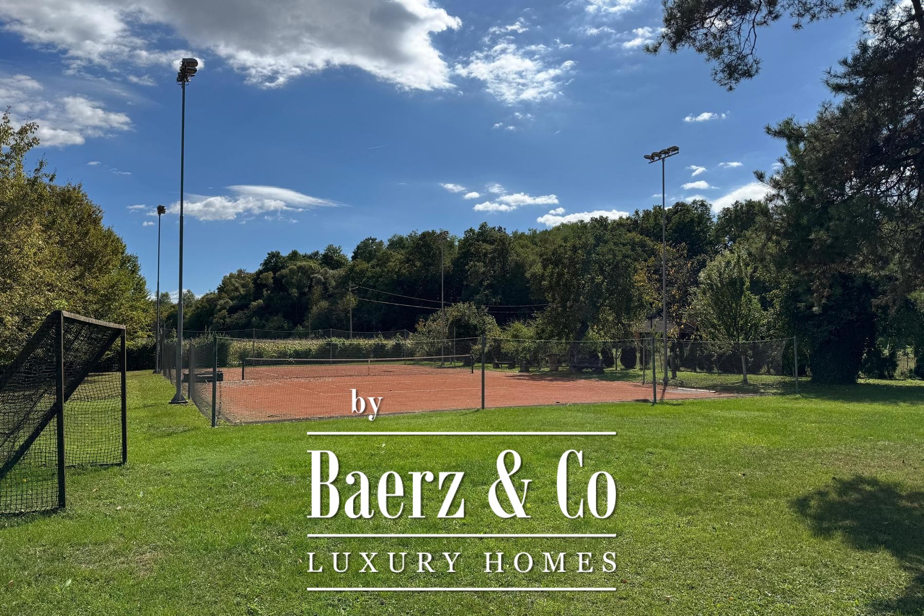 With a total net building area of approximately 400 m², the estate extends across 5,103 m² of private land. A spacious restaurant and banquet hall, a 36 m² outdoor pavilion with wooden floors, and a 64 m² smokehouse complement a covered outdoor terrace ideal for hosting. The grounds offer a tennis court with adjacent shower facilities.