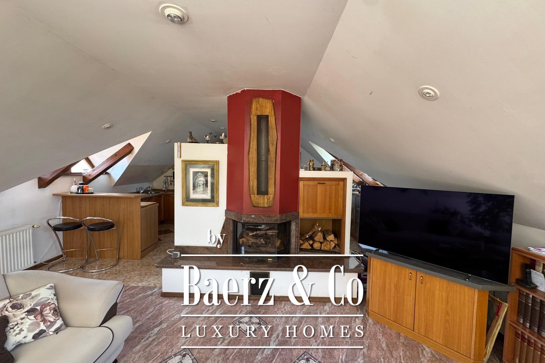 The residential portion encompasses a 110 m² apartment featuring a bedroom, children’s room, bathroom, separate toilet, living space, kitchen, and dining, as well as a supplementary apartment suitable for guests or staff. Twenty private parking spaces and robust materials define the estate, with ceramic tile and parquet flooring, solid oak double-glazed joinery, and full internet connectivity.