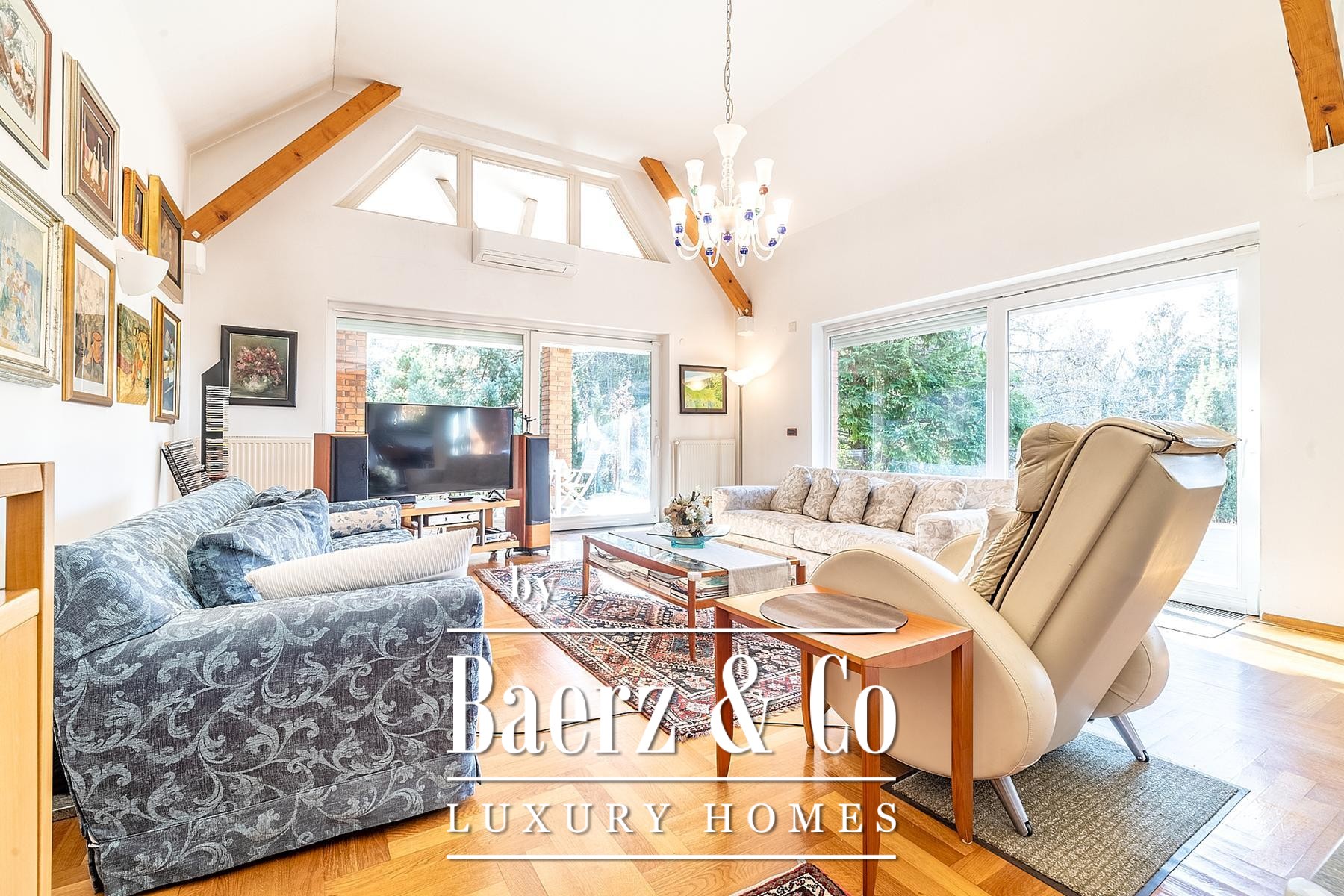 in the basement there is a sauna area with shower cabin and toilet, two large rooms of 39.6m2 with toilet and 30.7m2, both with separate entrance. Ideal for business use. In the past it was used as a dental practice.The yard is decorated with a beautiful garden, horticulturally designed, with the possibility of building another residential building or swimming pool. Garage for two vehicles 38.5m2 and two outdoor parking spaces. Gas boiler room, air conditioning, security door.It is located in the immediate vicinity of all necessary facilities, schools, kindergartens, shops, public transport.All other information on request.All other information on request.