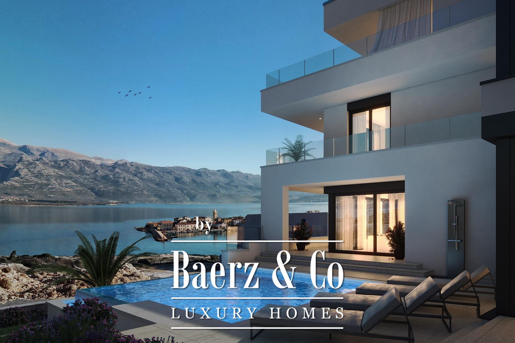 Villa Posedarje with Expansive Sea and Mountain Views offers a rare intersection of architectural clarity and coastal serenity in the sought-after enclave of Vinjerac, Zadar. This modern villa spans approximately 440 m², set on a meticulously landscaped plot of 480 m², just one row from the sea. Floor-to-ceiling windows and graceful transitions create a sustained dialogue with the panorama of the Adriatic, Velebit massif, and the Paklenica National Park.