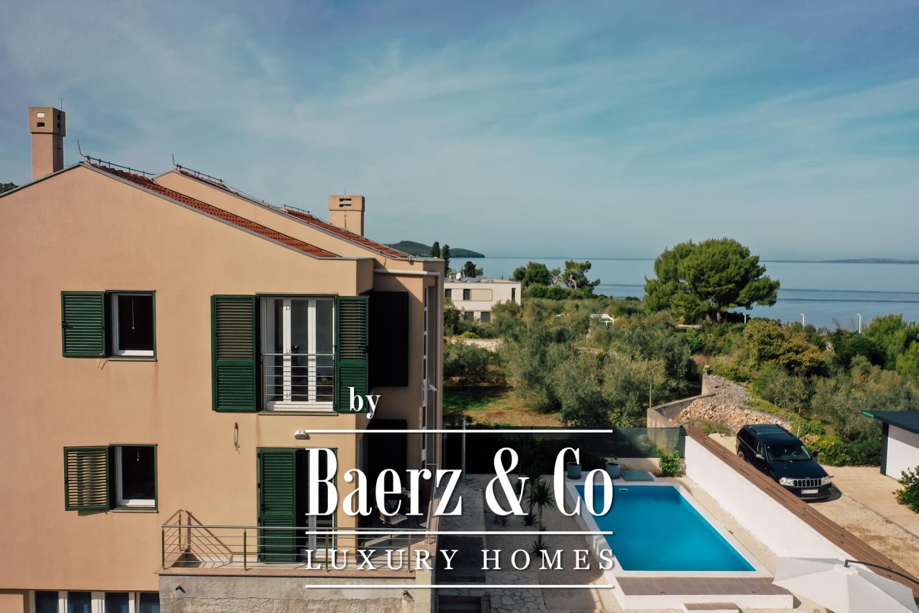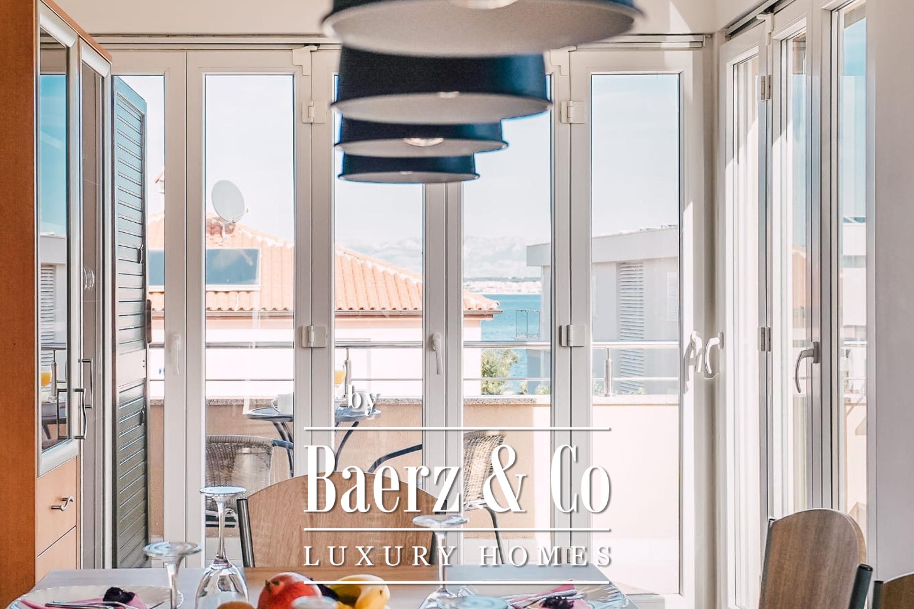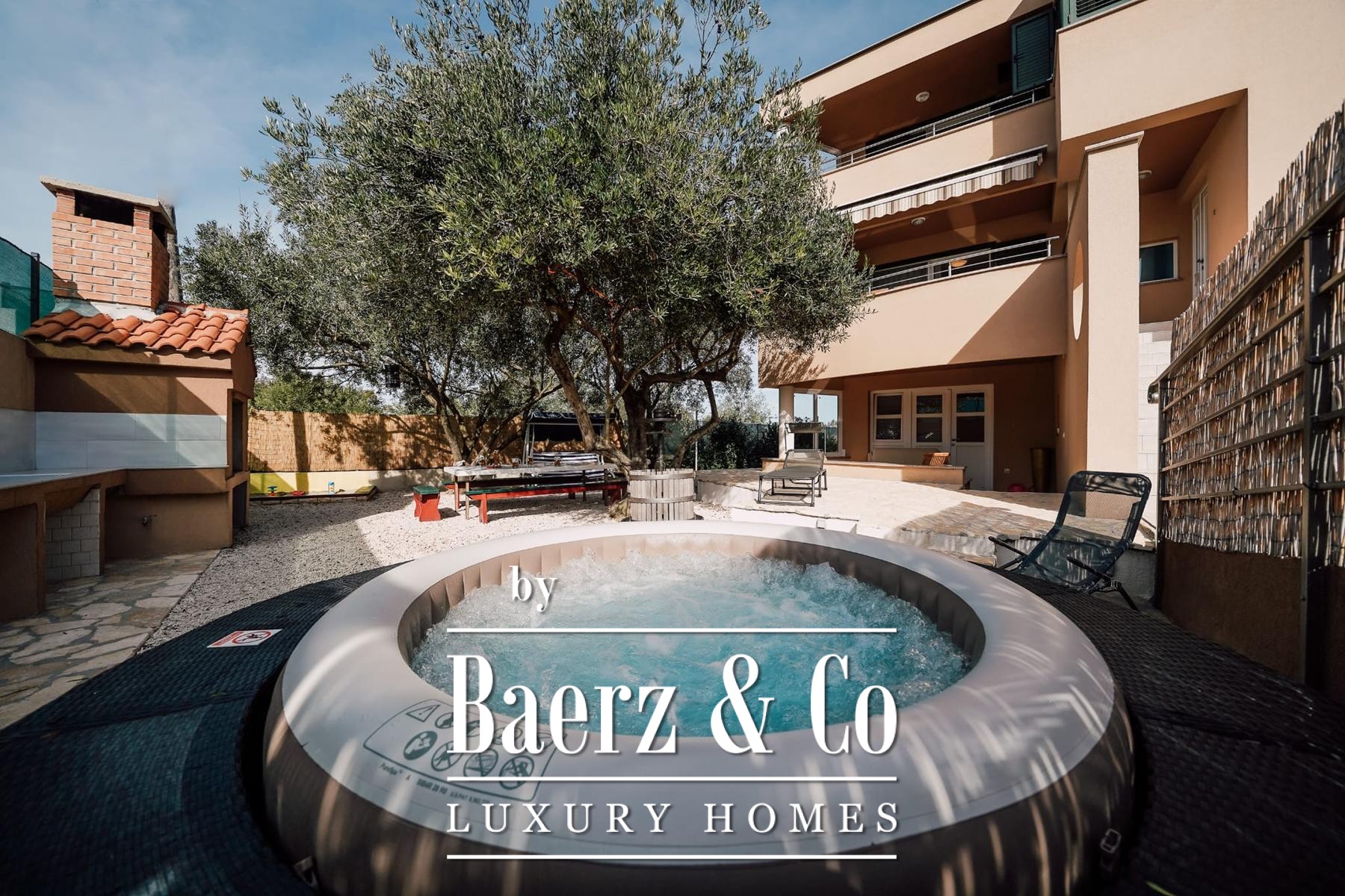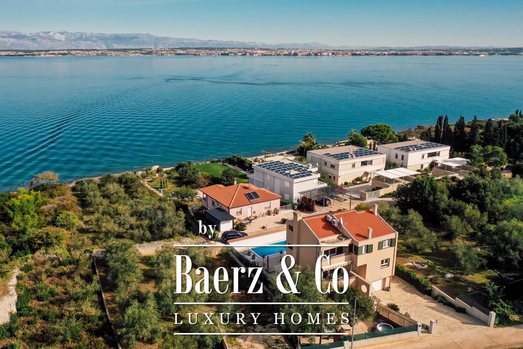 The upper level accommodates four bedrooms and a bathroom, providing privacy and comfortable volumes for family and guests. Mediterranean landscaping encircles a swimming pool, capturing the region's pace and spirit. Terraces present panoramic views over the Adriatic and Zadar, creating a tranquil vantage point for sunset hours. Air conditioning and the option of wood heating provide year-round comfort, with preparatory works completed for a solar power plant. The townhouse is fully furnished and equipped, designed for those seeking both serenity and continuity of style on Croatia’s coastline.