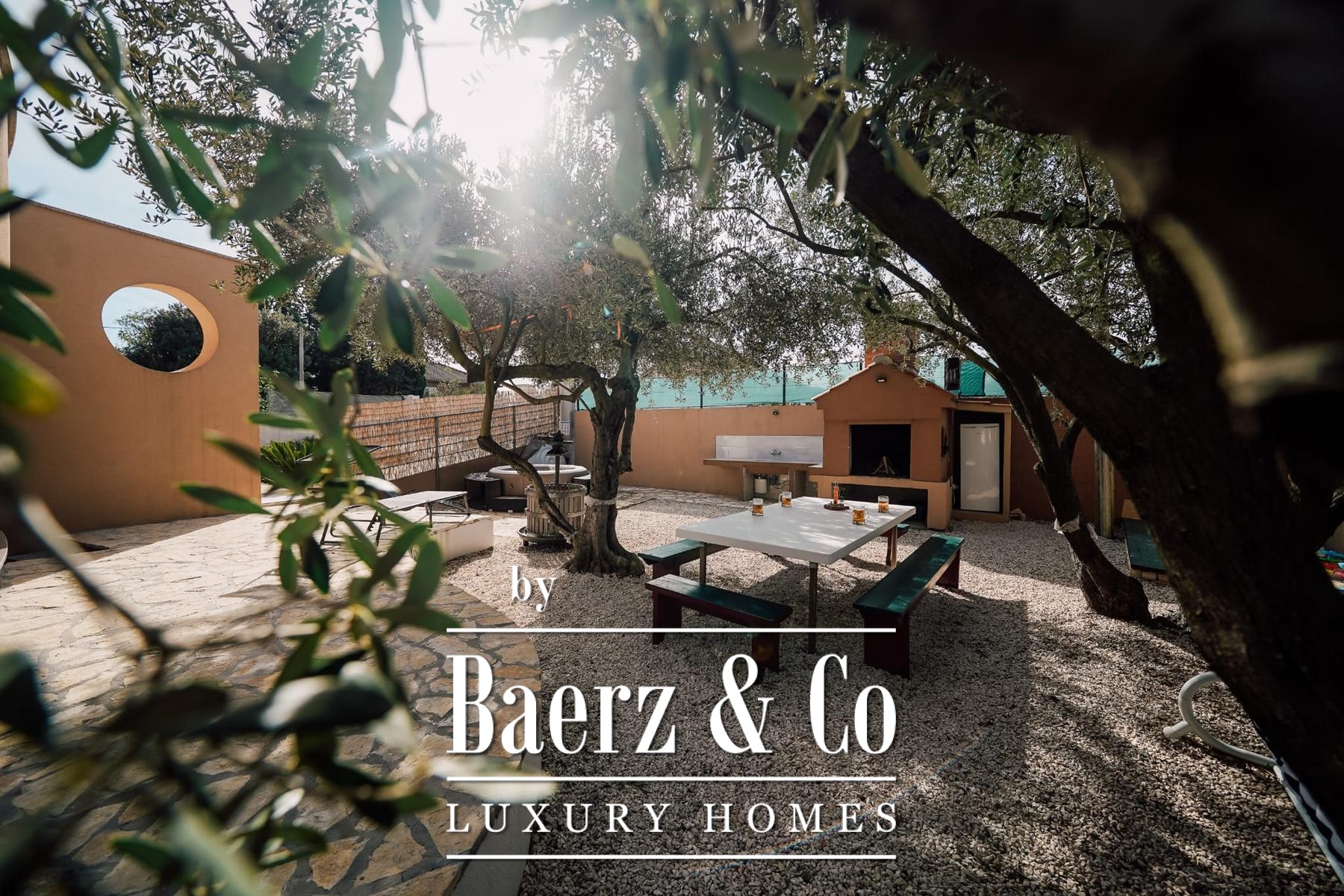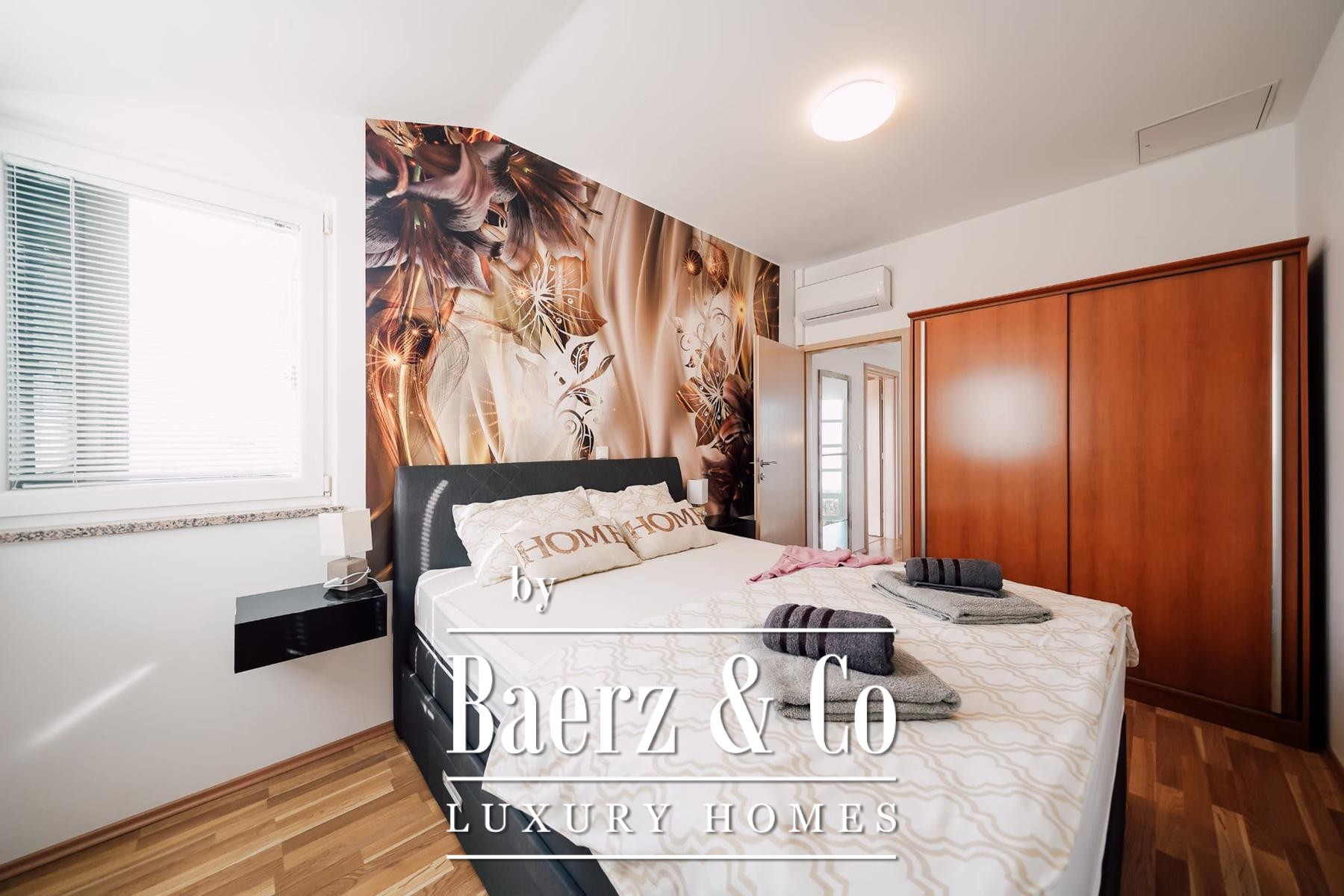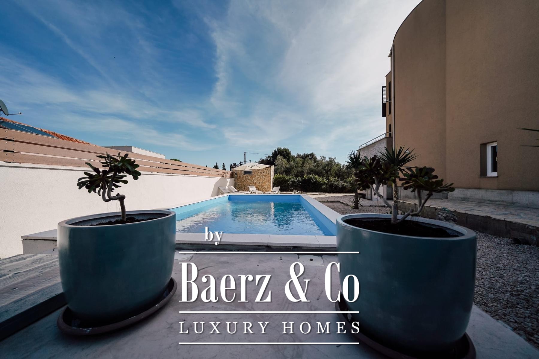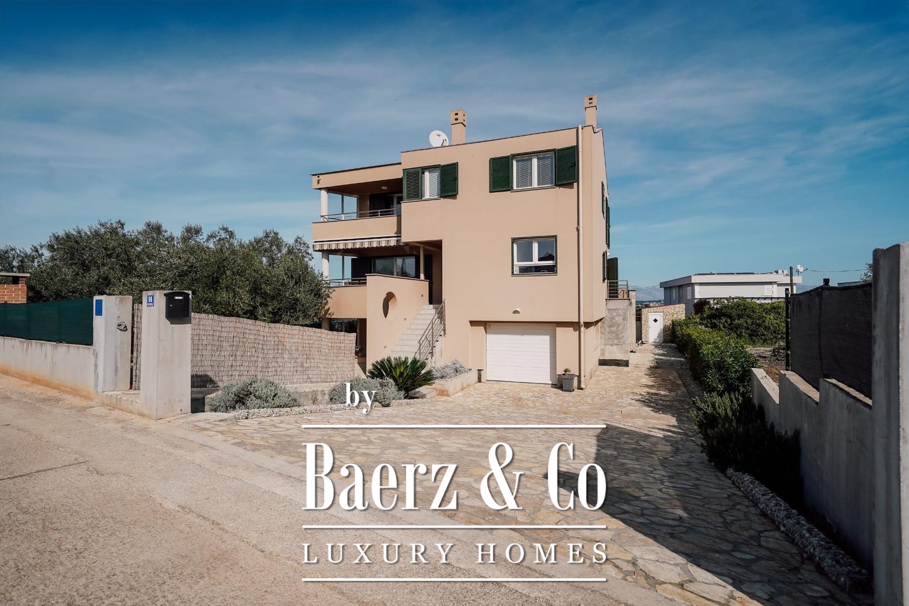 The upper level accommodates four bedrooms and a bathroom, providing privacy and comfortable volumes for family and guests. Mediterranean landscaping encircles a swimming pool, capturing the region's pace and spirit. Terraces present panoramic views over the Adriatic and Zadar, creating a tranquil vantage point for sunset hours. Air conditioning and the option of wood heating provide year-round comfort, with preparatory works completed for a solar power plant. The townhouse is fully furnished and equipped, designed for those seeking both serenity and continuity of style on Croatia’s coastline.