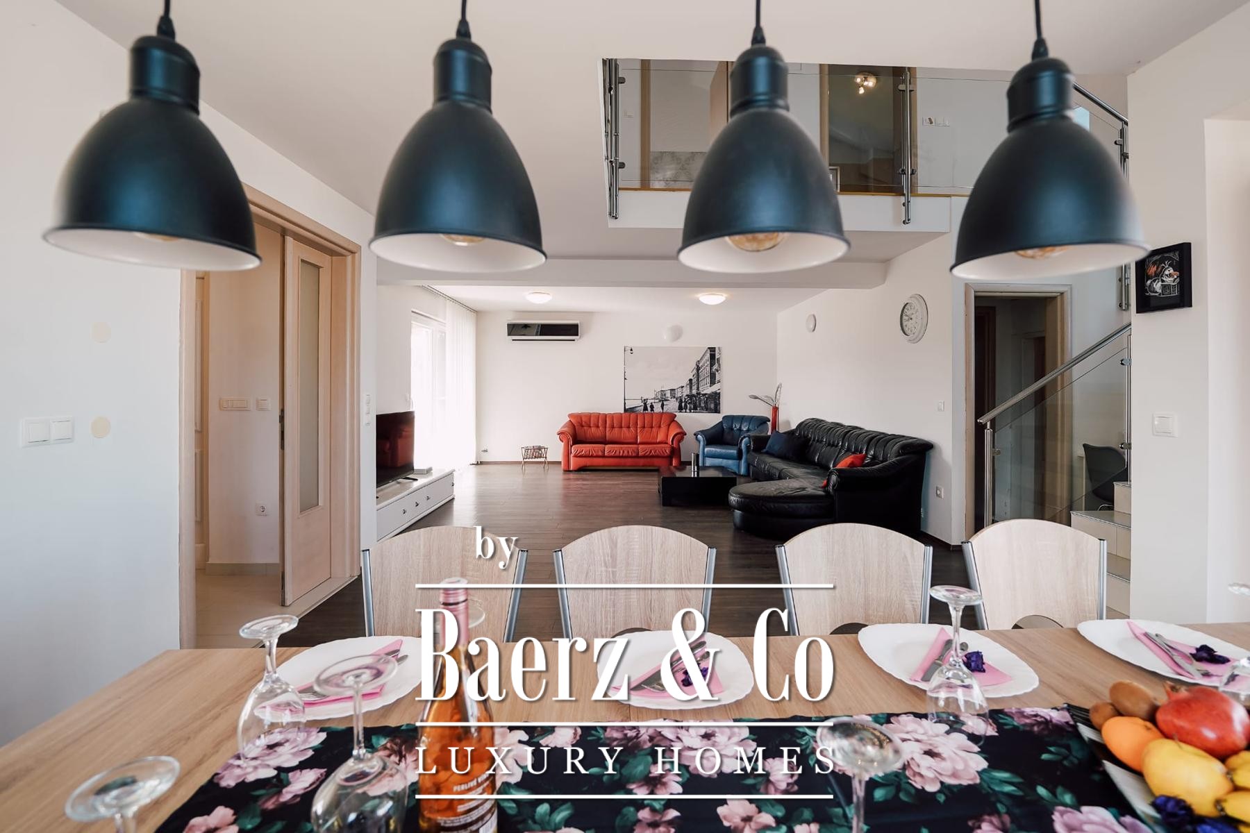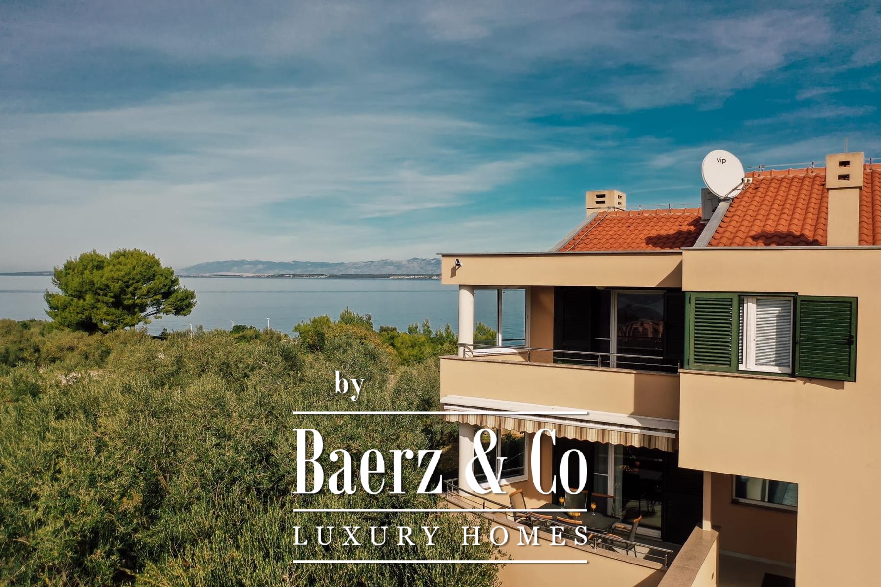 Townhouse Preko is set on a 610 m² plot, offering 235 m² of refined living space spread across three thoughtfully designed floors. This townhouse in Preko welcomes you with a ground floor that features a private garage, laundry, storage, guest toilet, and a summer kitchen opening to a terrace—ideal for effortless indoor-outdoor living. The property progresses to the second floor where a well-appointed kitchen, dining area, spacious living room, bathroom, and sea-view terrace form the heart of daily life.