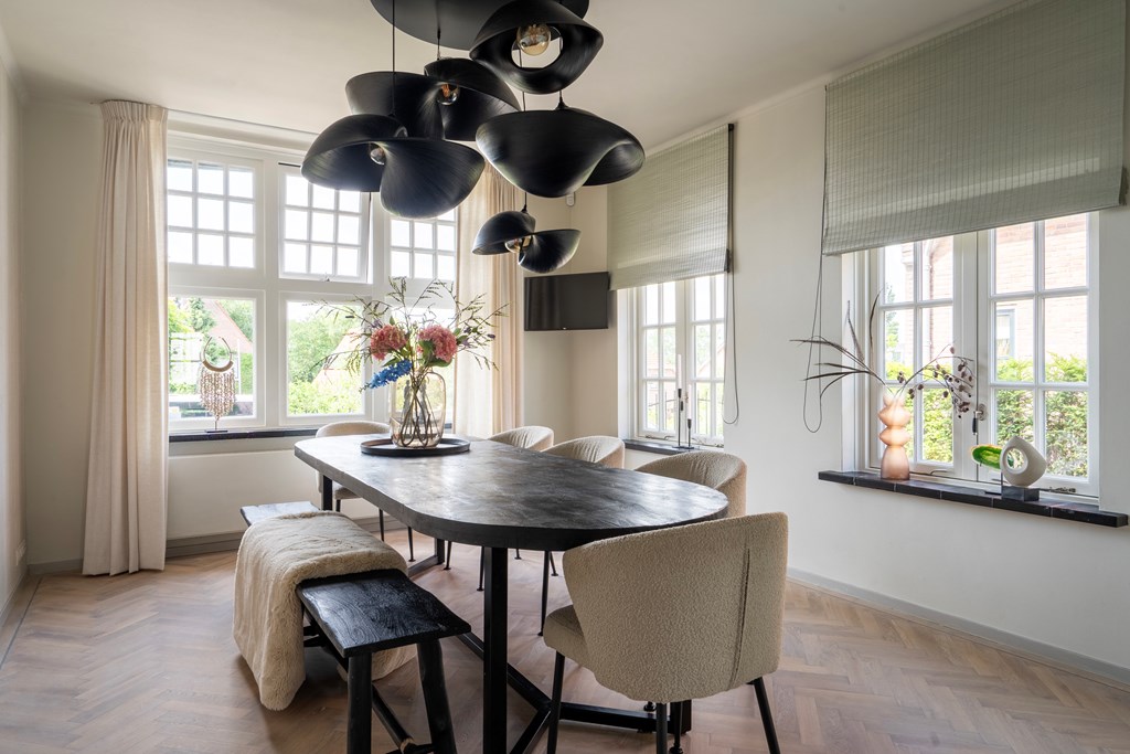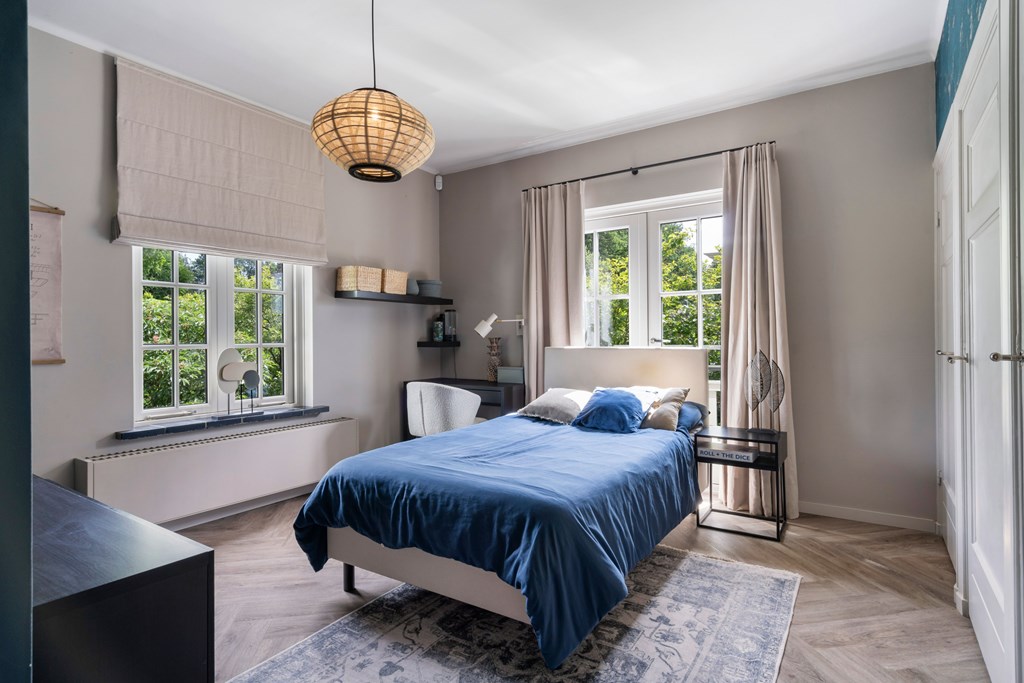 This detached villa Rhenen offers a harmonious balance of space and sophistication, set on a generous plot of 1,058 m². A gravel driveway leads to an elegant entrance, setting a discrete and assured tone. Inside, the 288 m² living area encompasses nine rooms, including eight versatile bedrooms that can be adapted for guests, work, or leisure. The villa’s quiet grandeur is reflected in fine materials such as the herringbone floor and original architectural details from its 1941 roots, renewed during renovations in 2021 and 2022.