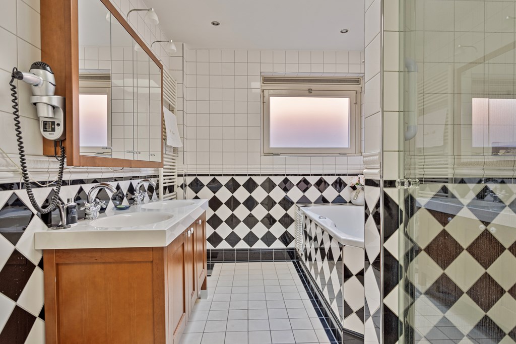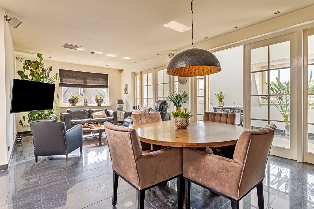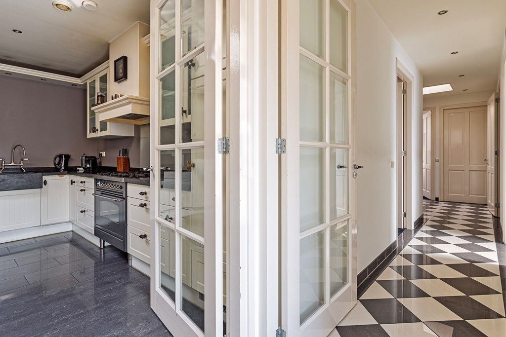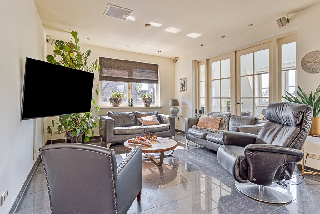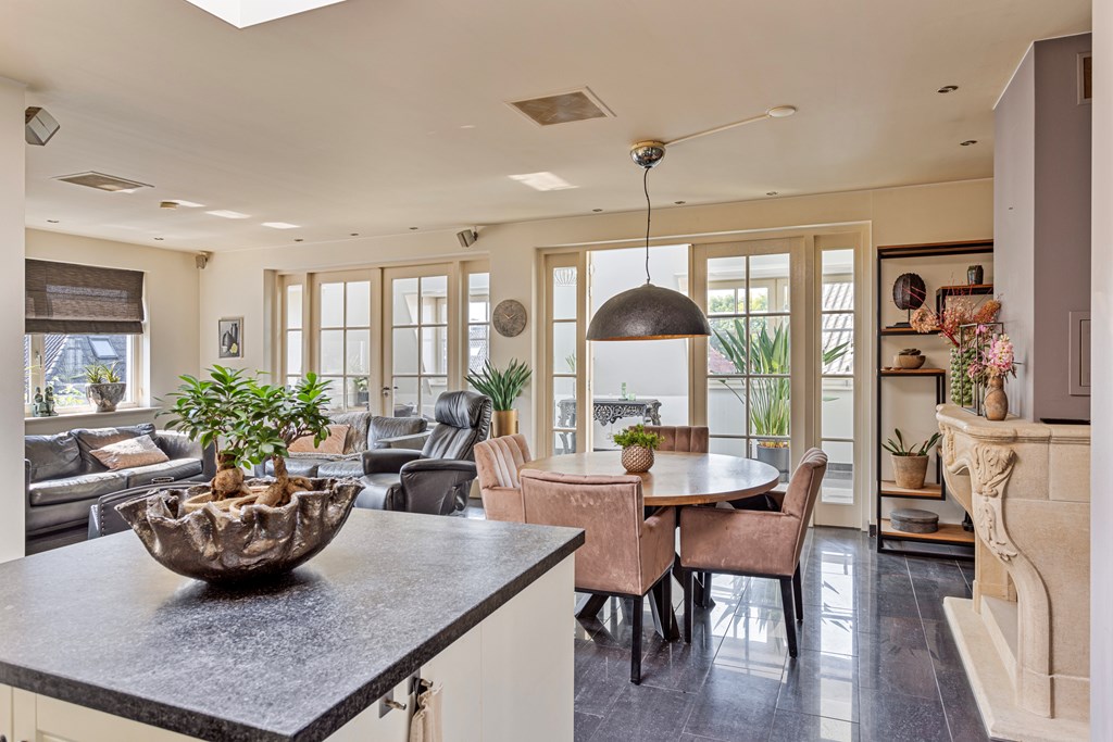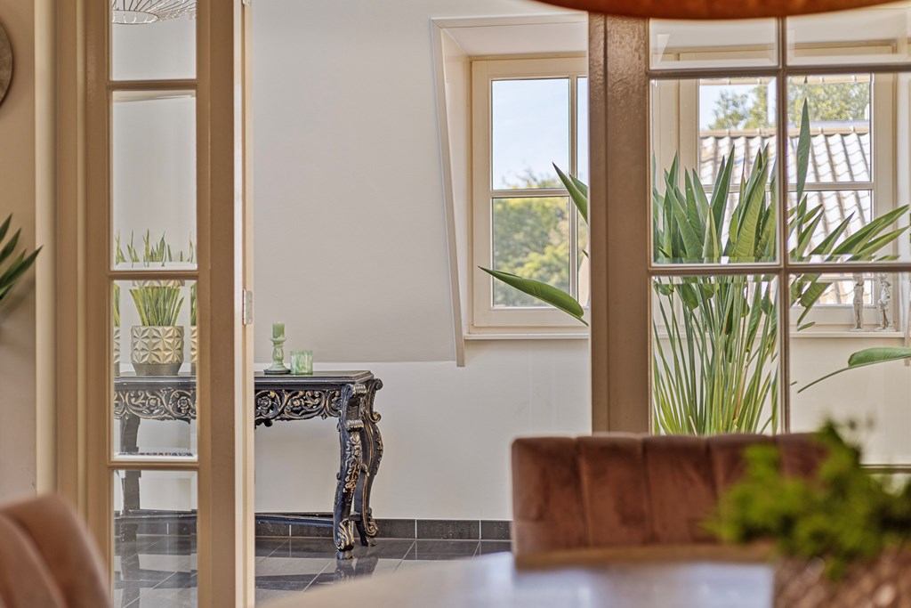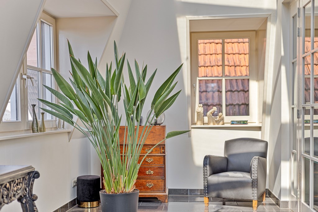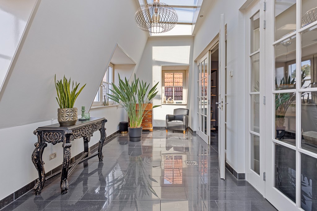 The penthouse’s south-west facing city garden is a private retreat, with a tiled terrace, outdoor fireplace, and artificial lawn for versatile enjoyment. Solar panels, fiber optic connectivity, and advanced insulation complement the property’s energy class B, ensuring efficient modern living. This luxury penthouse for sale in Rhenen merges the sophistication and scale of a city home with the serene pace and discretion valued by international buyers.