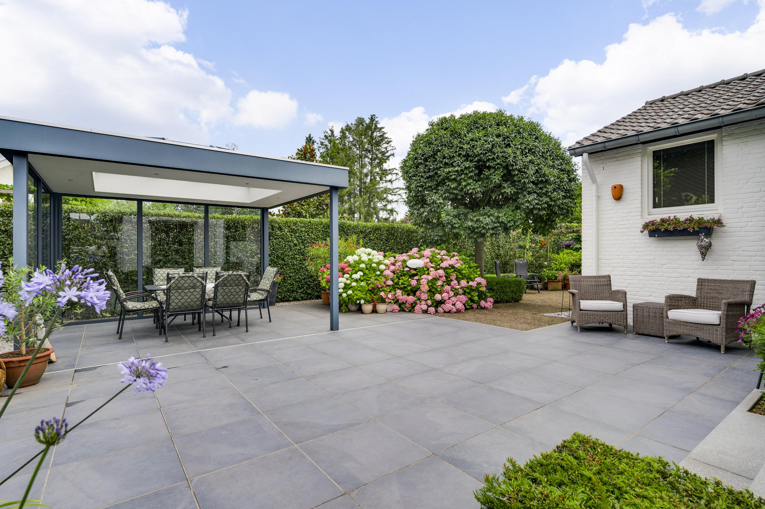 Villa Roermond in Roer-Zuid brings together considered architecture and refined contemporary living on a tranquil 729 m² plot. This property, meticulously renovated and expanded in 2003, features 159 m² of living space and balances understated luxury with a focus on sustainability. The villa’s bright and spacious layout includes a succession of living rooms — sitting, television, and dining — unified by large windows and views across a professionally landscaped garden. Light fills the interiors, while French doors open to a private terrace enveloped in calm.
