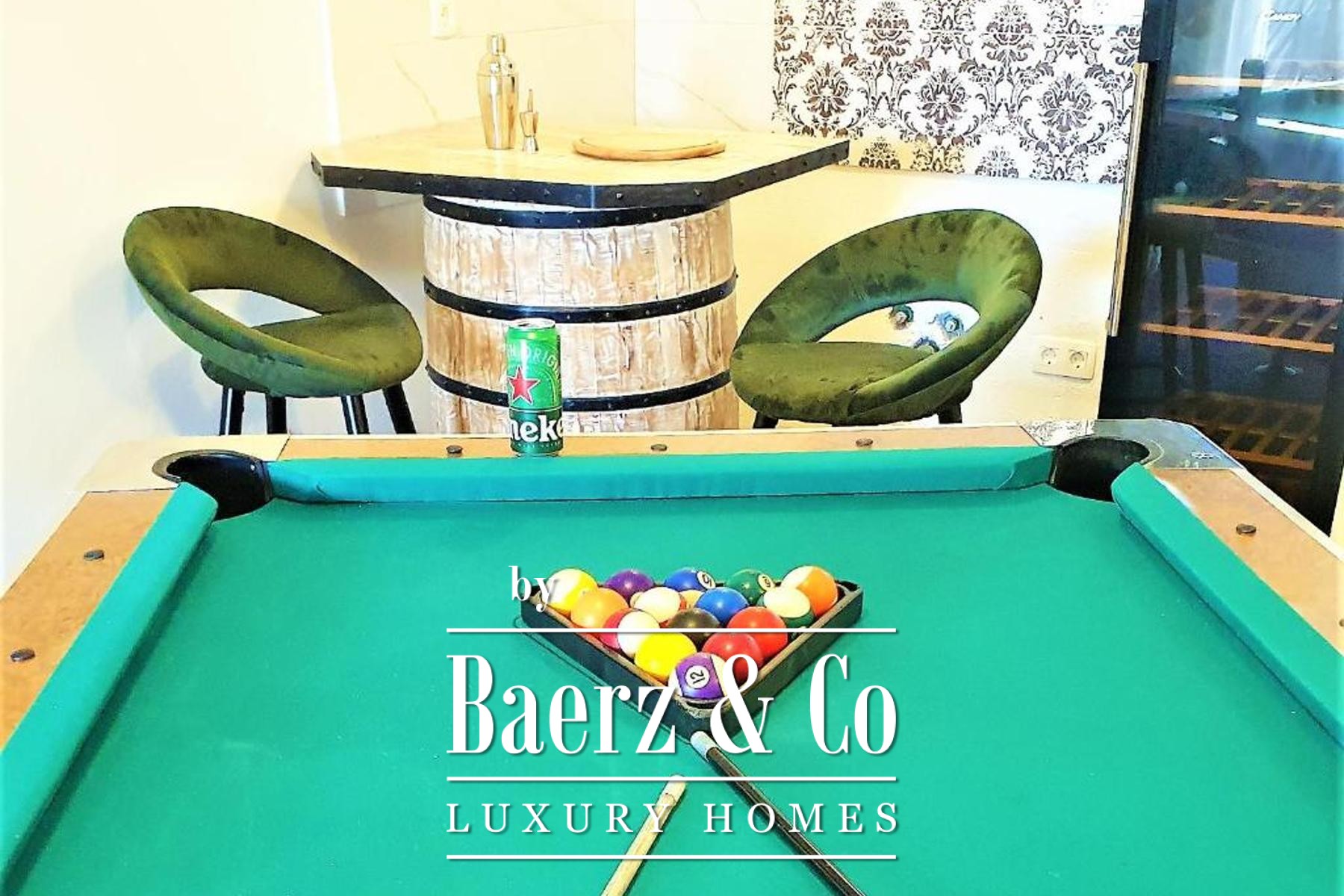 The ground floor houses two self-contained one-bedroom apartments, each with a bathroom, living space, and integrated kitchen and dining areas. A separate games room invites leisurely gatherings with amenities such as a pool table and darts. Ascending external stairs reveal a first-floor apartment featuring two bedrooms—one with en-suite—an additional bathroom, and a luminous living and dining area that flows to a spacious covered terrace, seamlessly connecting inside to the outdoors.