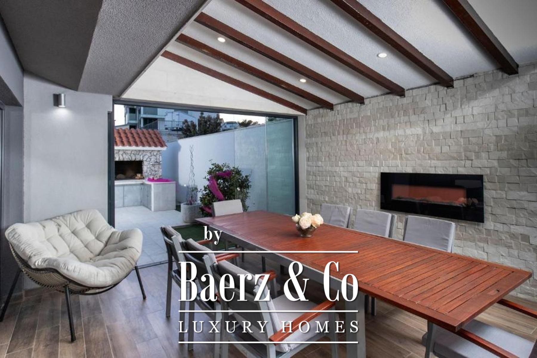 House Rogoznica with sea view and pool offers a measured balance of privacy and proximity to the Adriatic, situated just 100 meters from the beach and a brief walk from the heart of Rogoznica. This property comprises a generous 352 m² living space across two floors, built on a 426 m² plot. Each apartment on the ground floor is designed for autonomy and comfort, with one offering a bedroom, bathroom and living area, and the other comprising two bedrooms, a bathroom, and a living room. Both open onto a terrace beside the pool, inviting moments of quiet or conviviality under the Mediterranean sky.