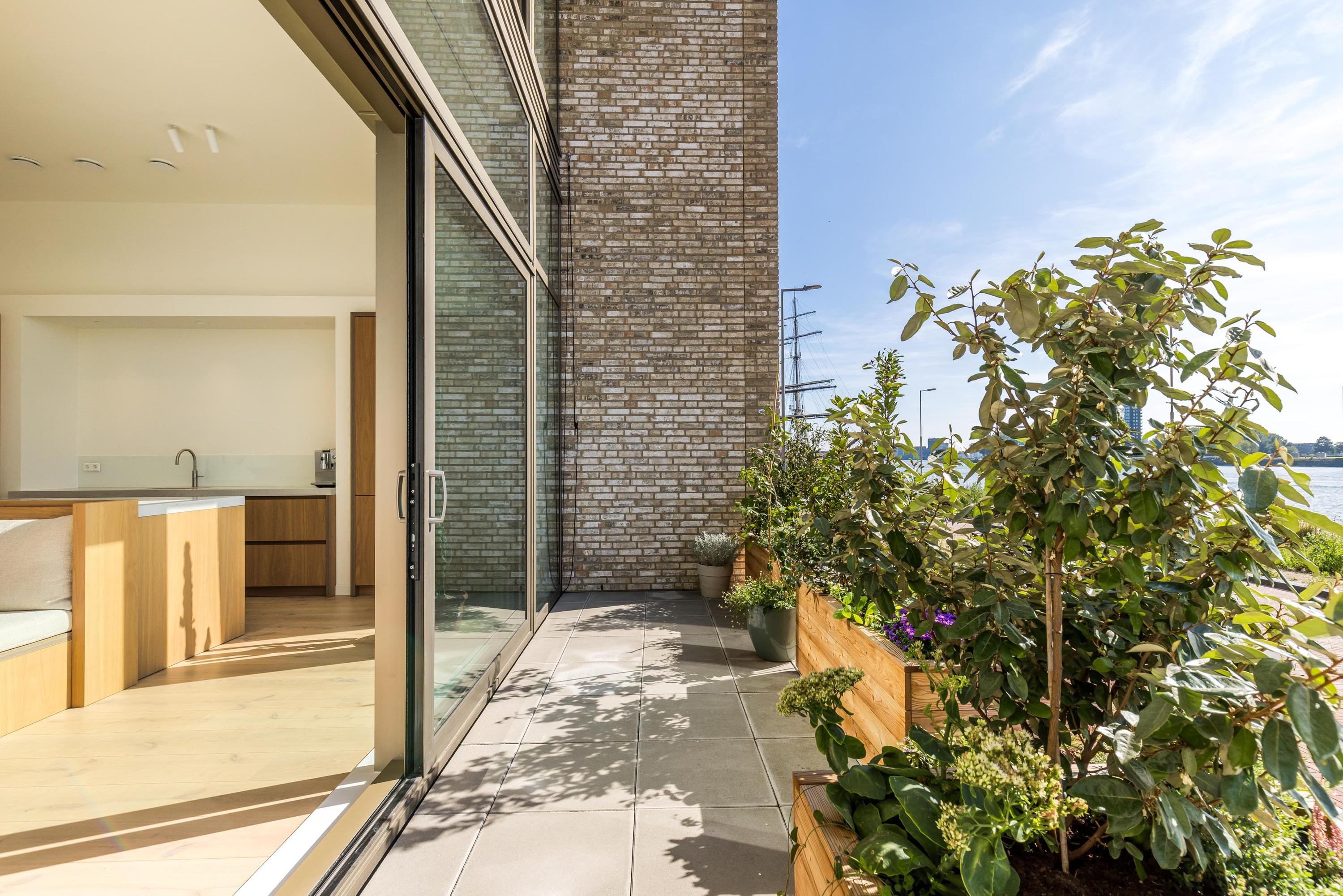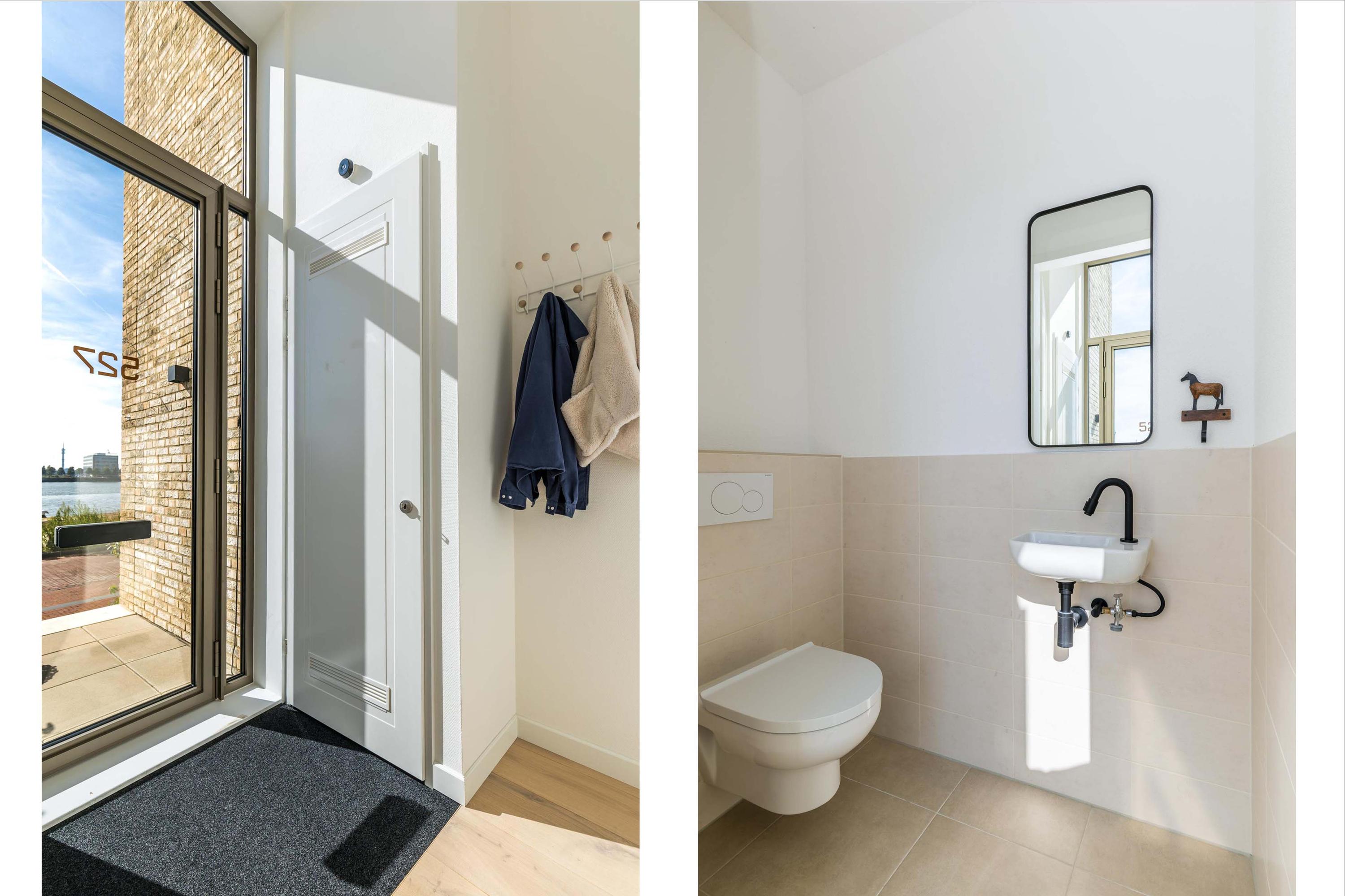 You enter the apartment via your own veranda/sun terrace on the ground floor (facing the sunny south and overlooking the Maas River). Here you'll find the luxurious kitchen/diner, fully equipped and designed for enjoyment, whether you're hosting an intimate dinner or preparing a lavish meal for friends and family. Directly adjacent is a spacious indoor storage room, ideal for extra storage.