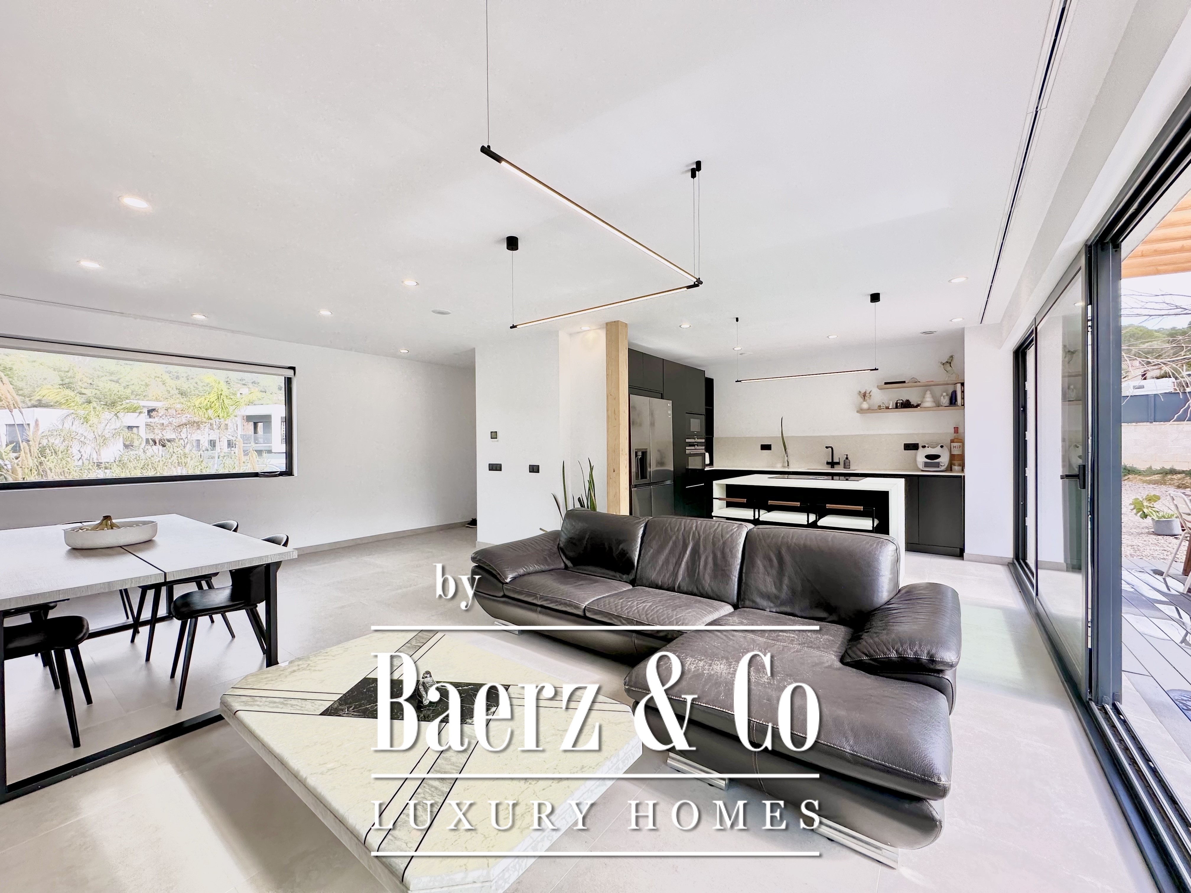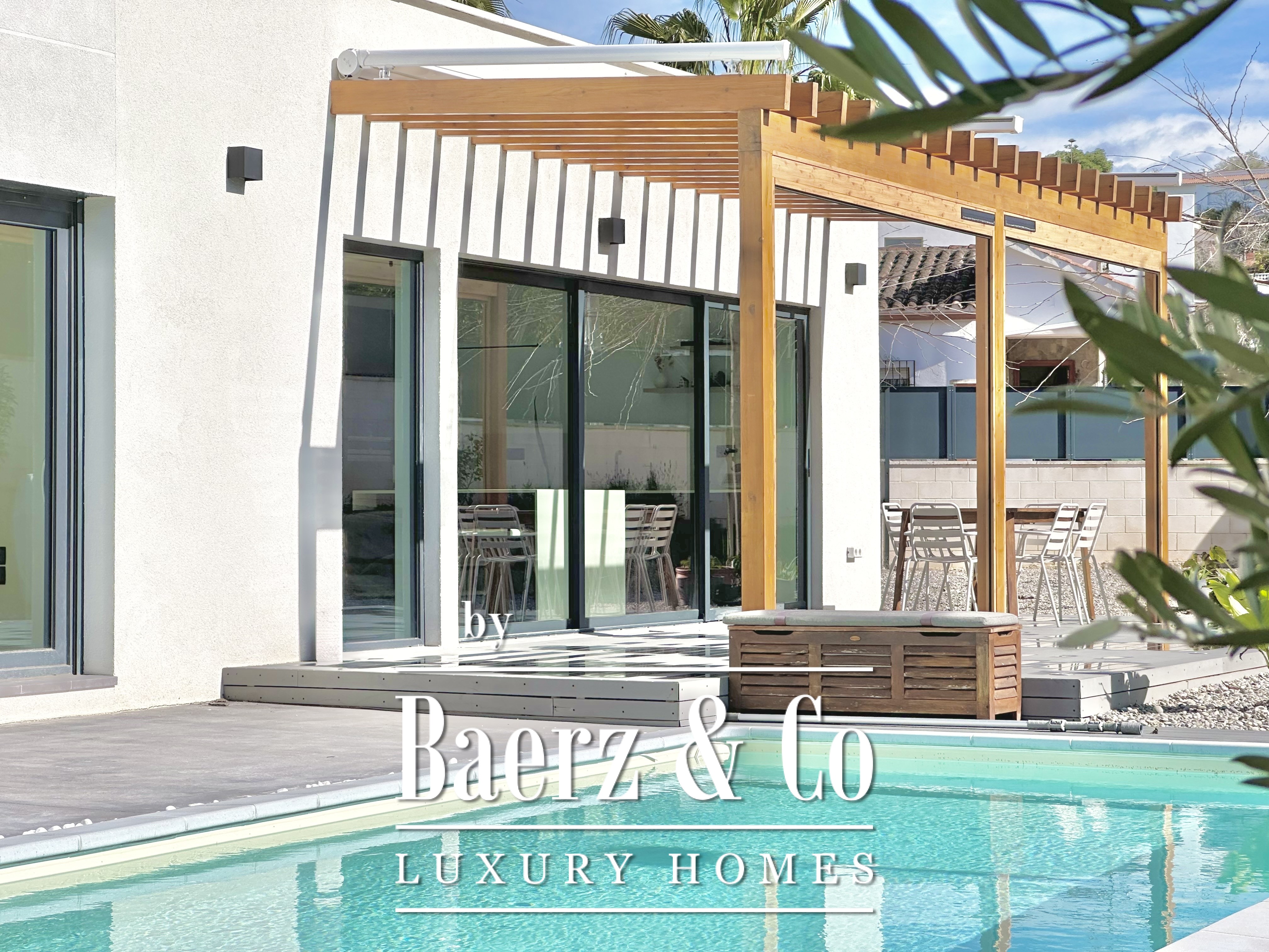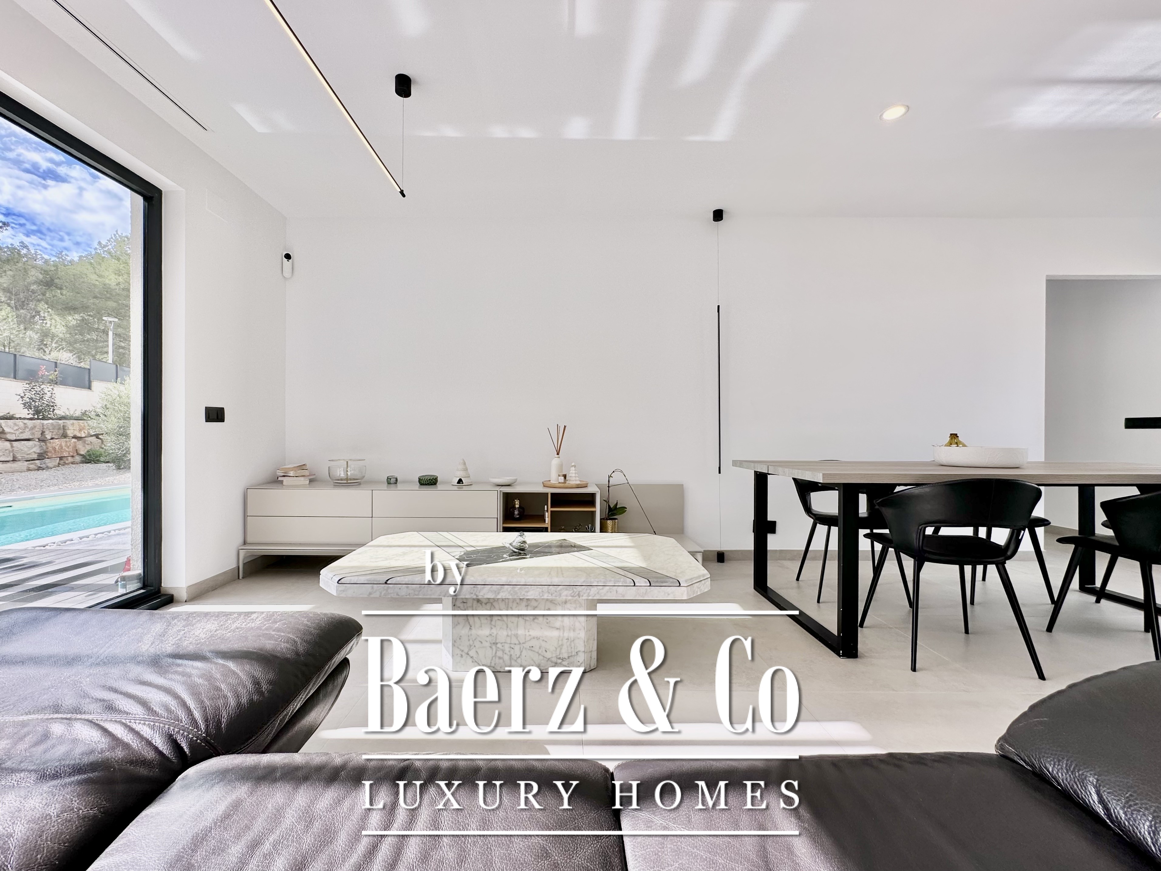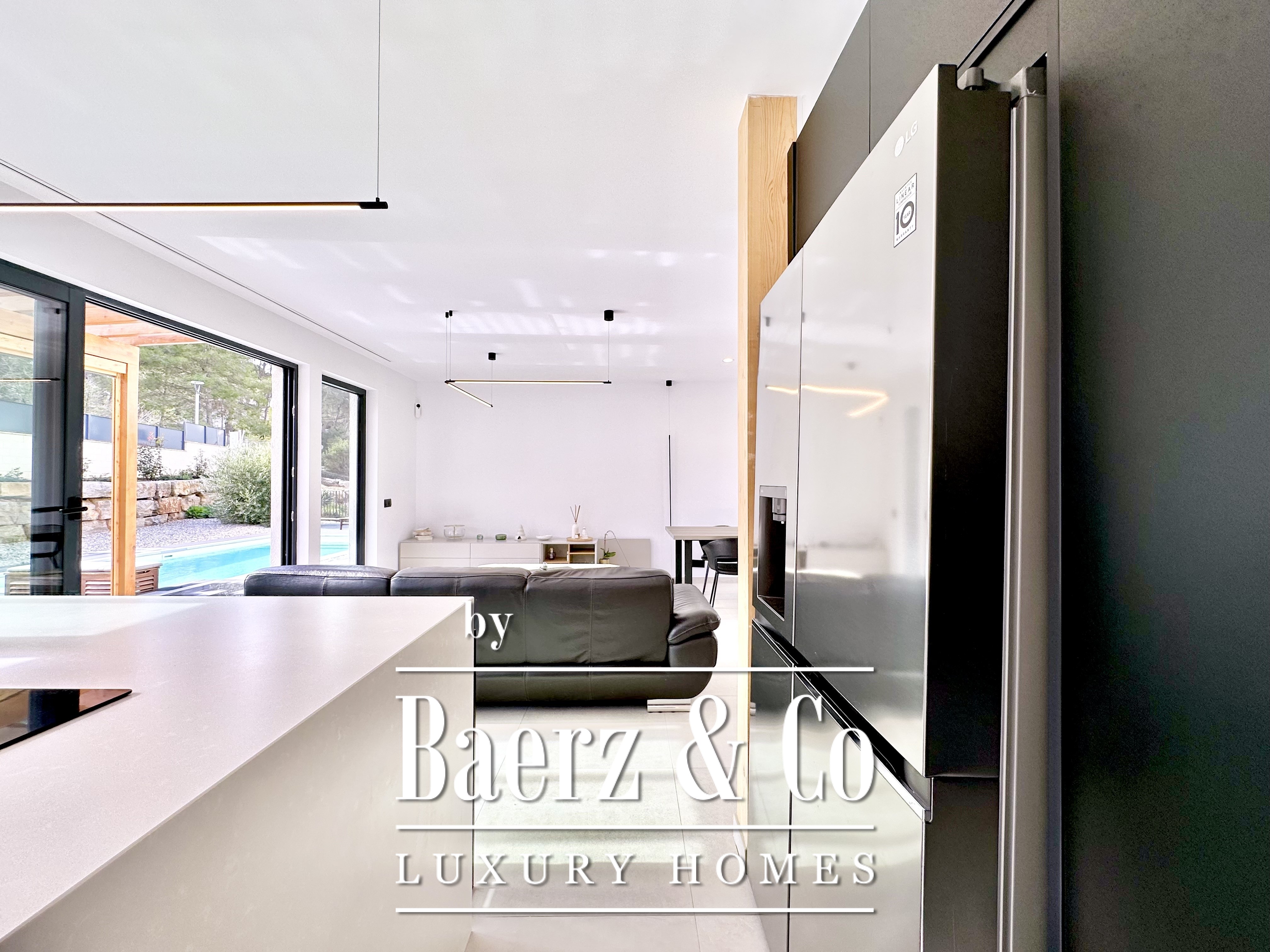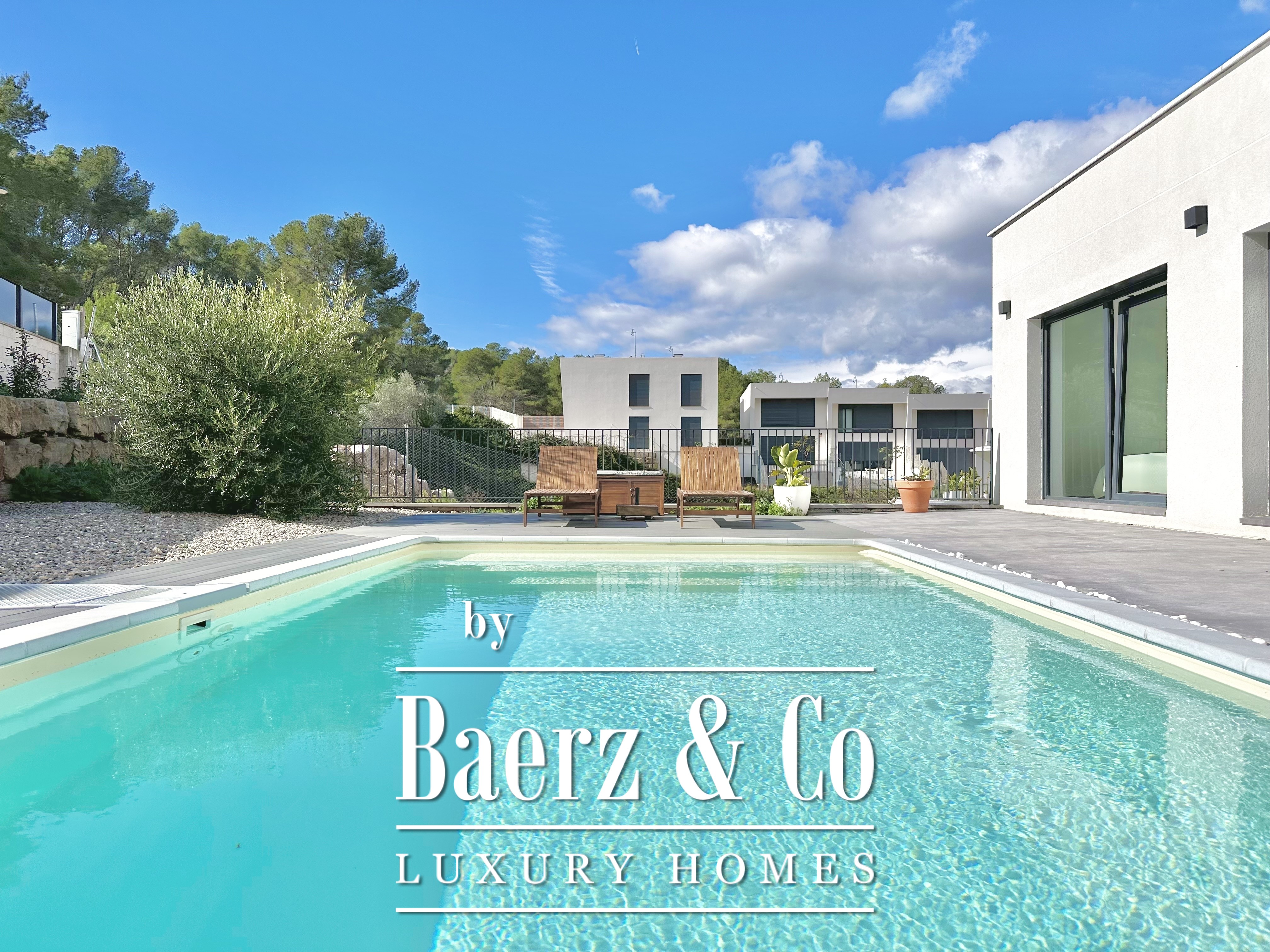 This modern villa Sitges is a newly completed, energy-efficient home designed with sustainability and contemporary minimalism at its core. Located in the tranquil Mas Alba area of Sitges, the property occupies an 860 m² double plot and offers 296 m² of living space, complemented by a 32 m² private pool and mountain views.