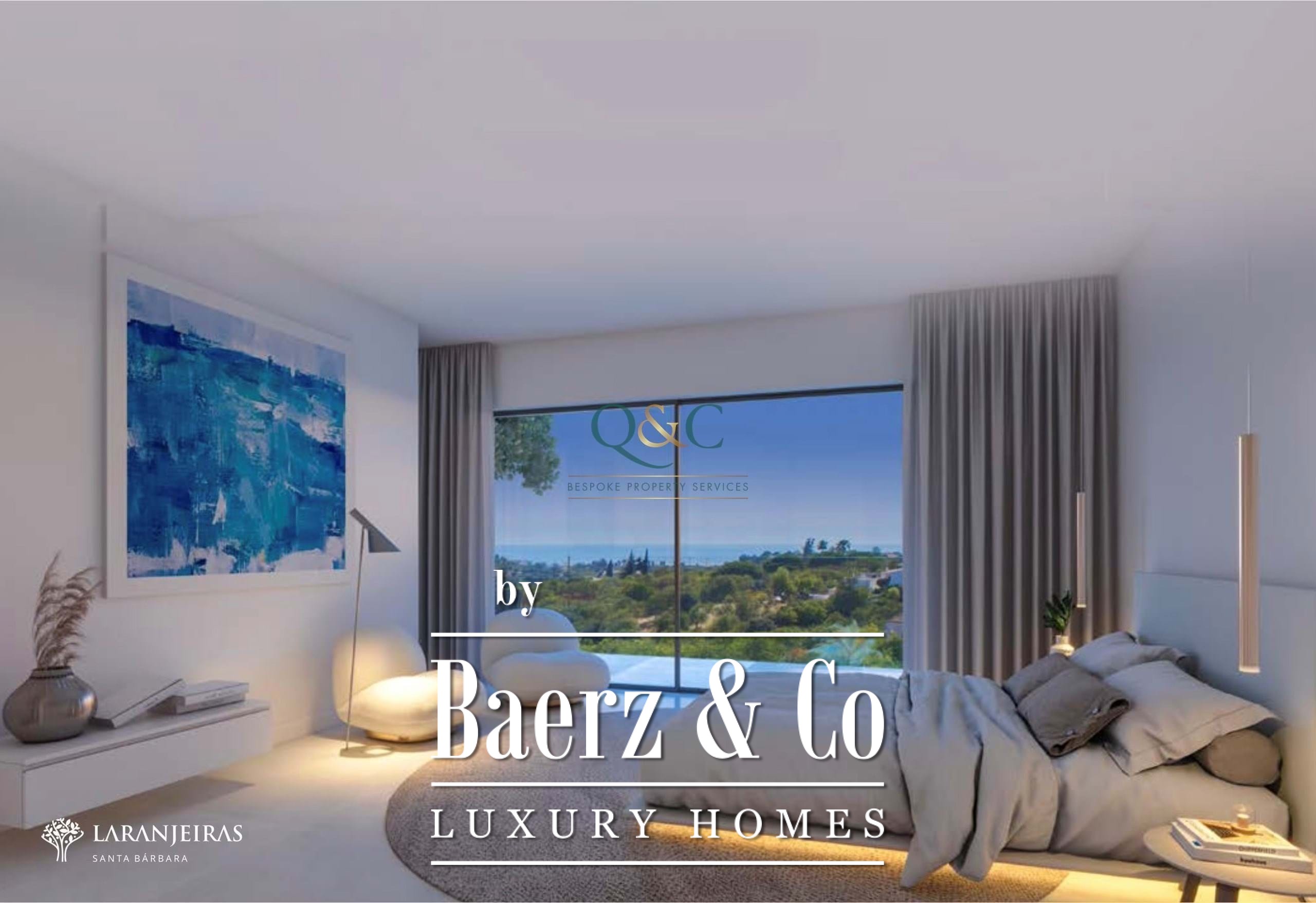 Laranjeiras a unique development of bespoke, architect designed detached villas that nestle quietly within a gated environment in the unspoilt hills above the quintessential Portuguese village of Santa Barbara de Nexe. This beautiful, well-kept village is an undiscovered hillside gem that boasts an historic white church complete with belltower, shady, tree-lined squares and a good sprinkling of amenities including bars, restaurants, shops and coffee houses. There is also a local market and a well-equipped garage. This stunning location offers unrivalled sea views and cool summer breezes and yet is only a short drive from the vibrancy and lifestyle activities of
