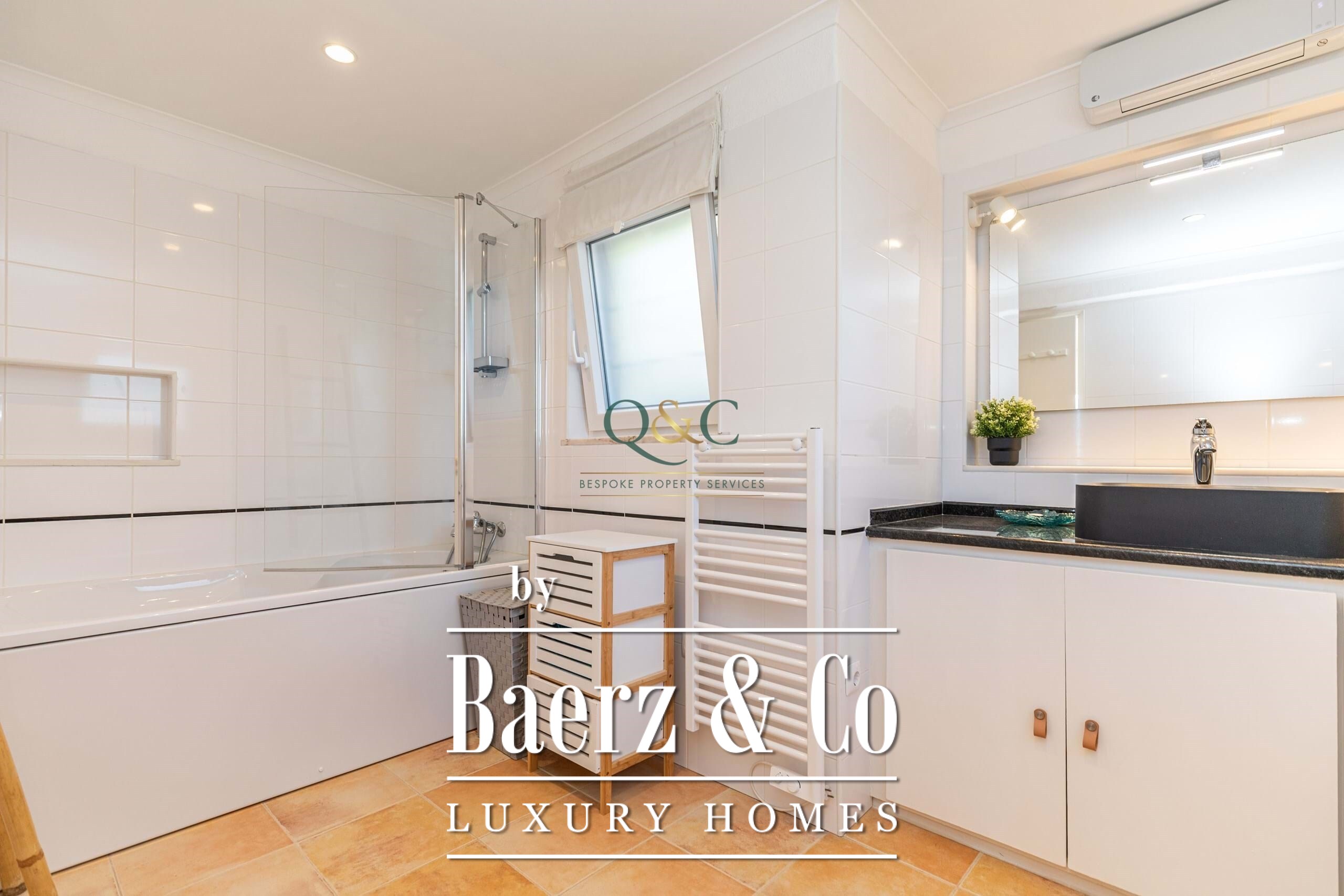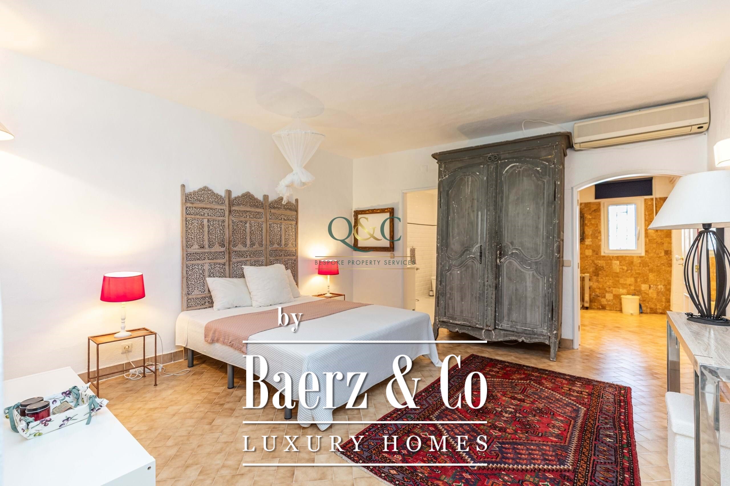 Solar panels and an advanced solar hot water system enhance energy efficiency, complemented by features such as double glazing, air conditioning, wood stove, and automatic irrigation. The villa’s location grants swift access to Santa Bárbara de Nexe village, restaurants, shopping, renowned Algarve beaches, international schools, and Faro Airport—a considered sanctuary balancing quality, privacy, and proximity.