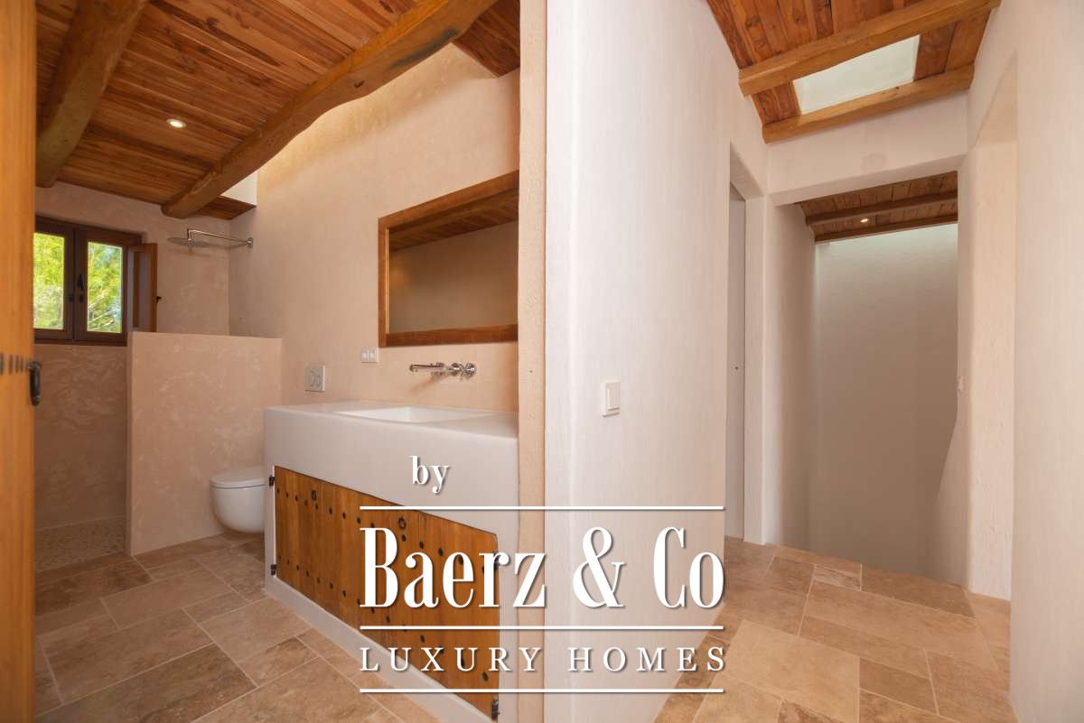 Outside, the finca’s design celebrates Mediterranean living. A private swimming pool is framed by sun-drenched terraces and a thoughtfully landscaped garden, extending into the surrounding natural beauty. Lounge areas shaded by mature trees and broad balconies invite restful afternoons amidst mountain and forest vistas. This property is not simply a home, but a rare retreat—an intersection of history, luxury, and landscape for those seeking a truly unique Ibiza estate. The experience is one of peace, timelessness, and effortless sophistication, fully captured by this finca Santa Gertrudis De Fruitera.