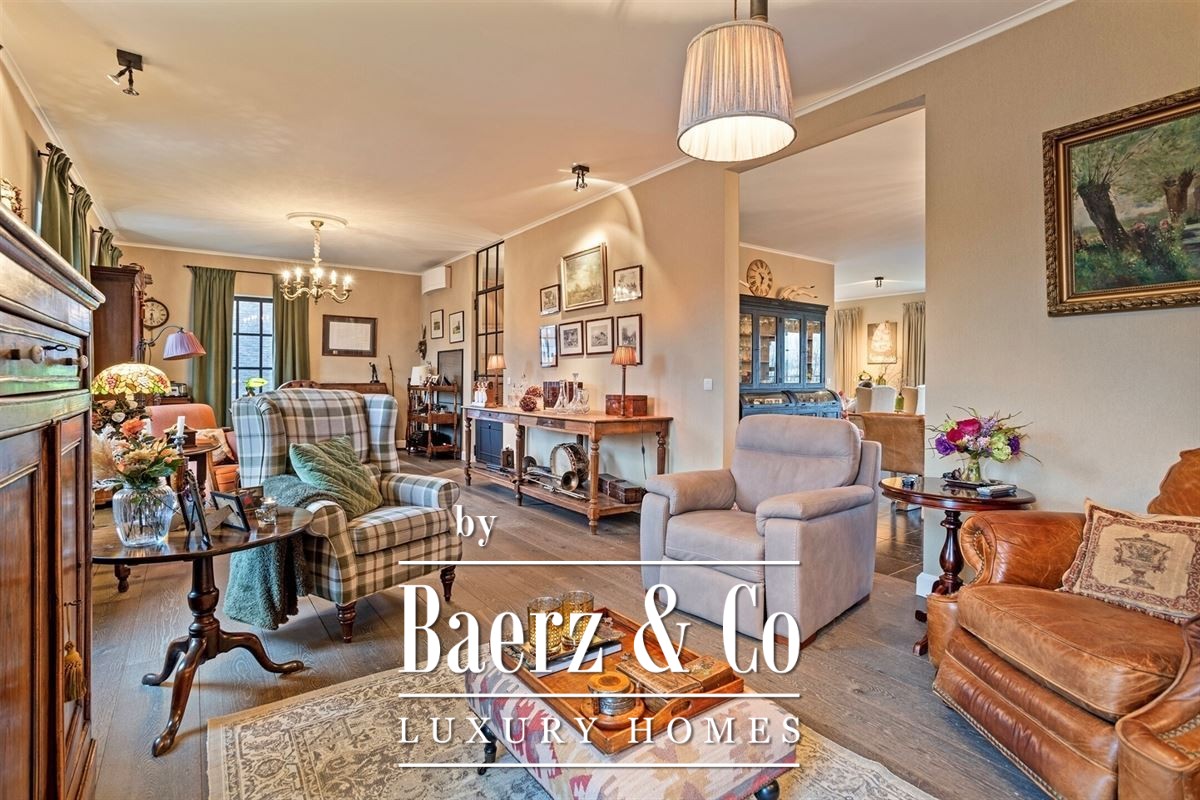This duplex apartment Schilde stands quietly just outside the town center, situated in Zandhoven yet easily accessible from Schilde, and offers sweeping, uninterrupted vistas over the Albertkanaal. The property blends understated design with tailored comforts across its 364m² living area. On arrival, a landscaped front garden leads you to multiple parking options, including a garage with automated entry, carport, and a extended basement of 182m². The private entrance hall, accessible via lift or stairs, introduces a thoughtfully arranged interior highlighted by oak and natural stone finishes.