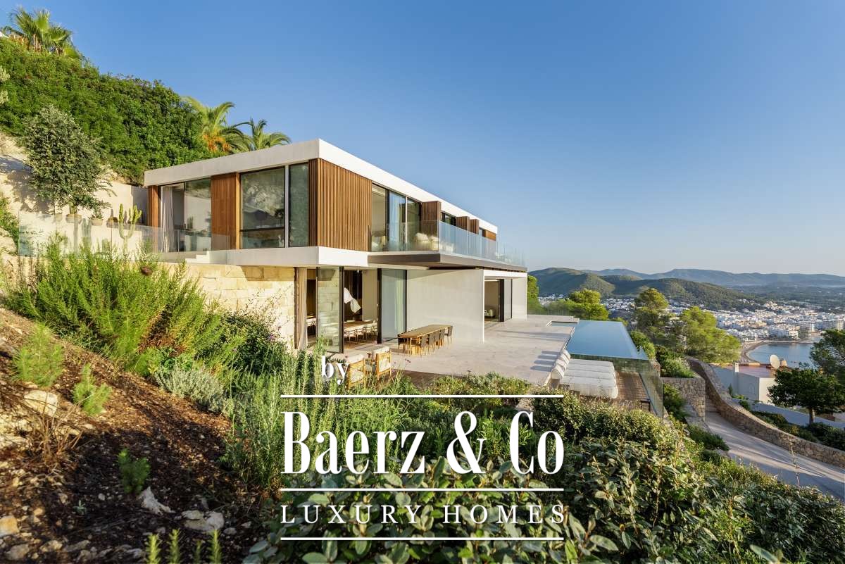 Villa Siesta with panoramic sea and valley views sets a new benchmark for discreet luxury in Ibiza. This newly built 650 m² villa is located near Santa Eulalia, set amidst undulating hills and Mediterranean greenery, delivering a sense of calm rarely encountered. From its vantage point, panoramic vistas stretch across the valley to the Mediterranean Sea, offering a visual experience that is both expansive and intimate.