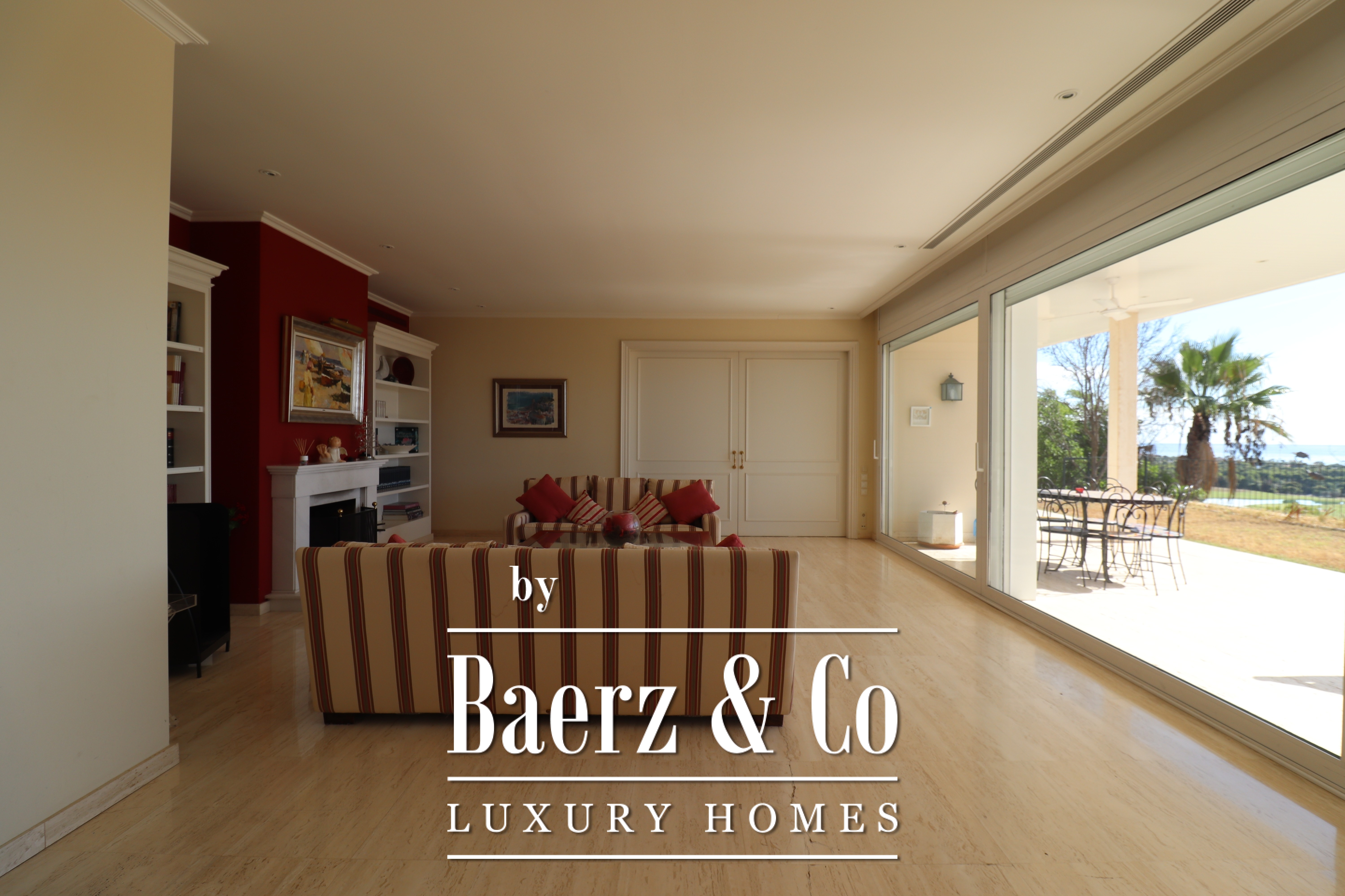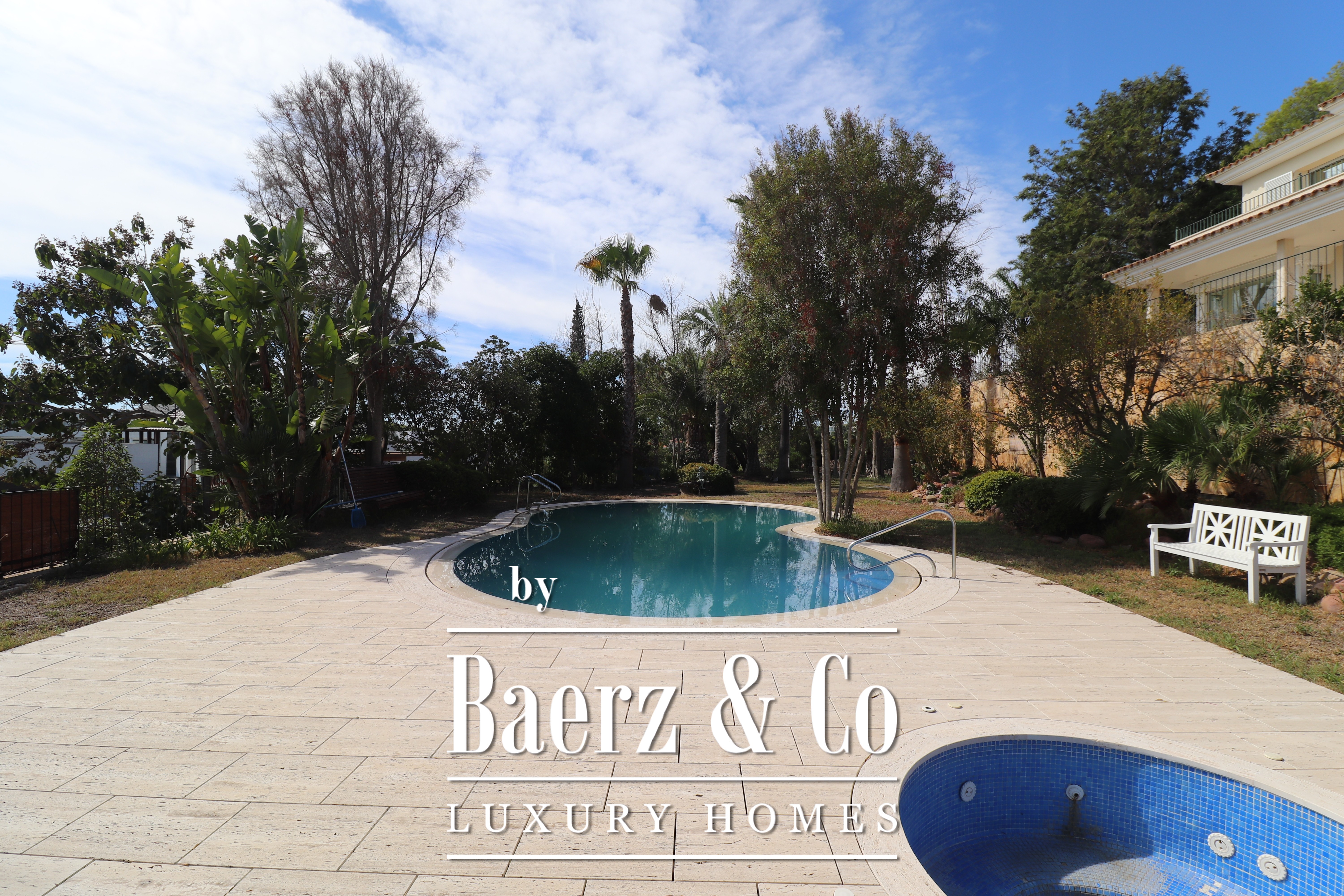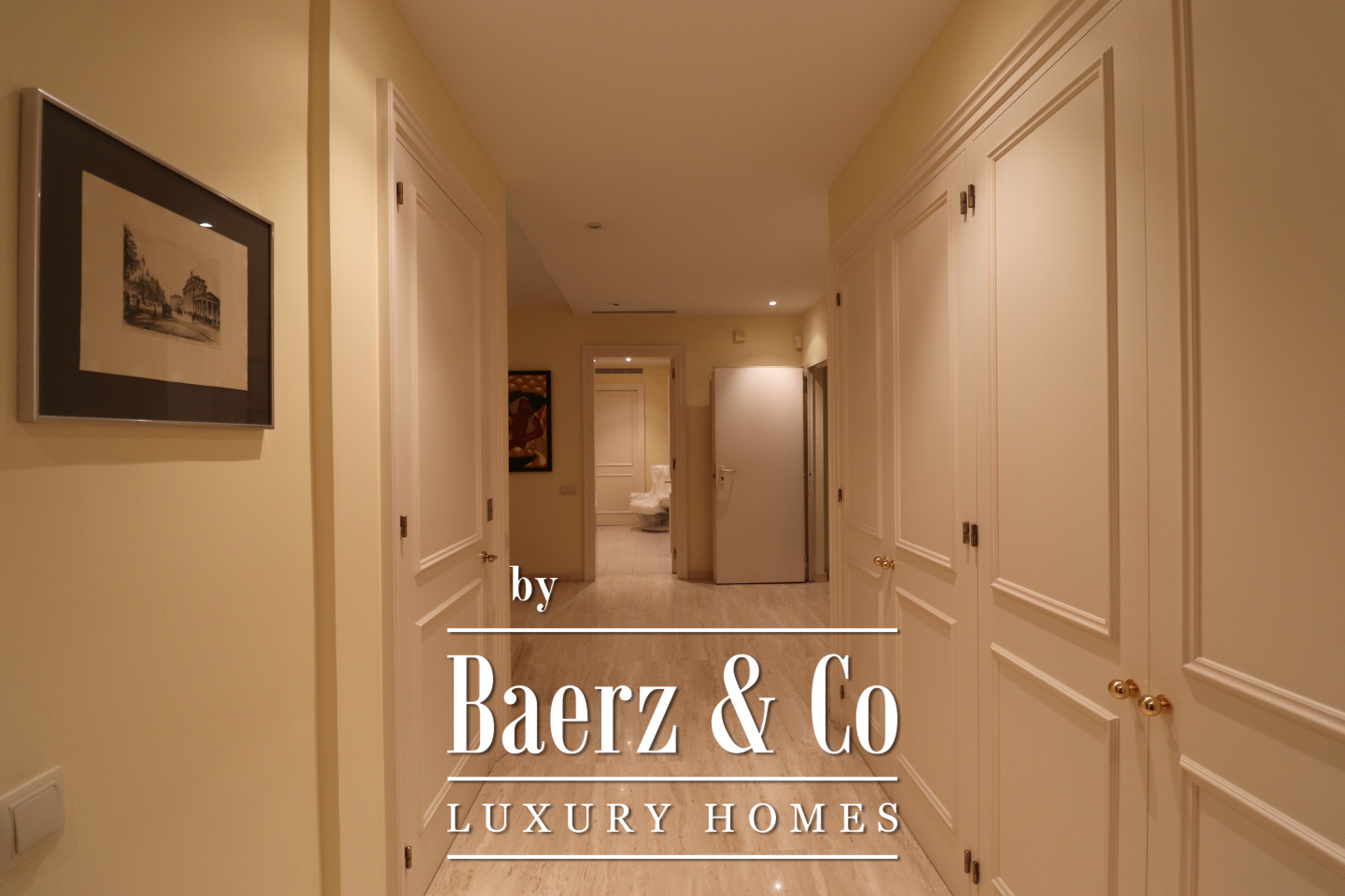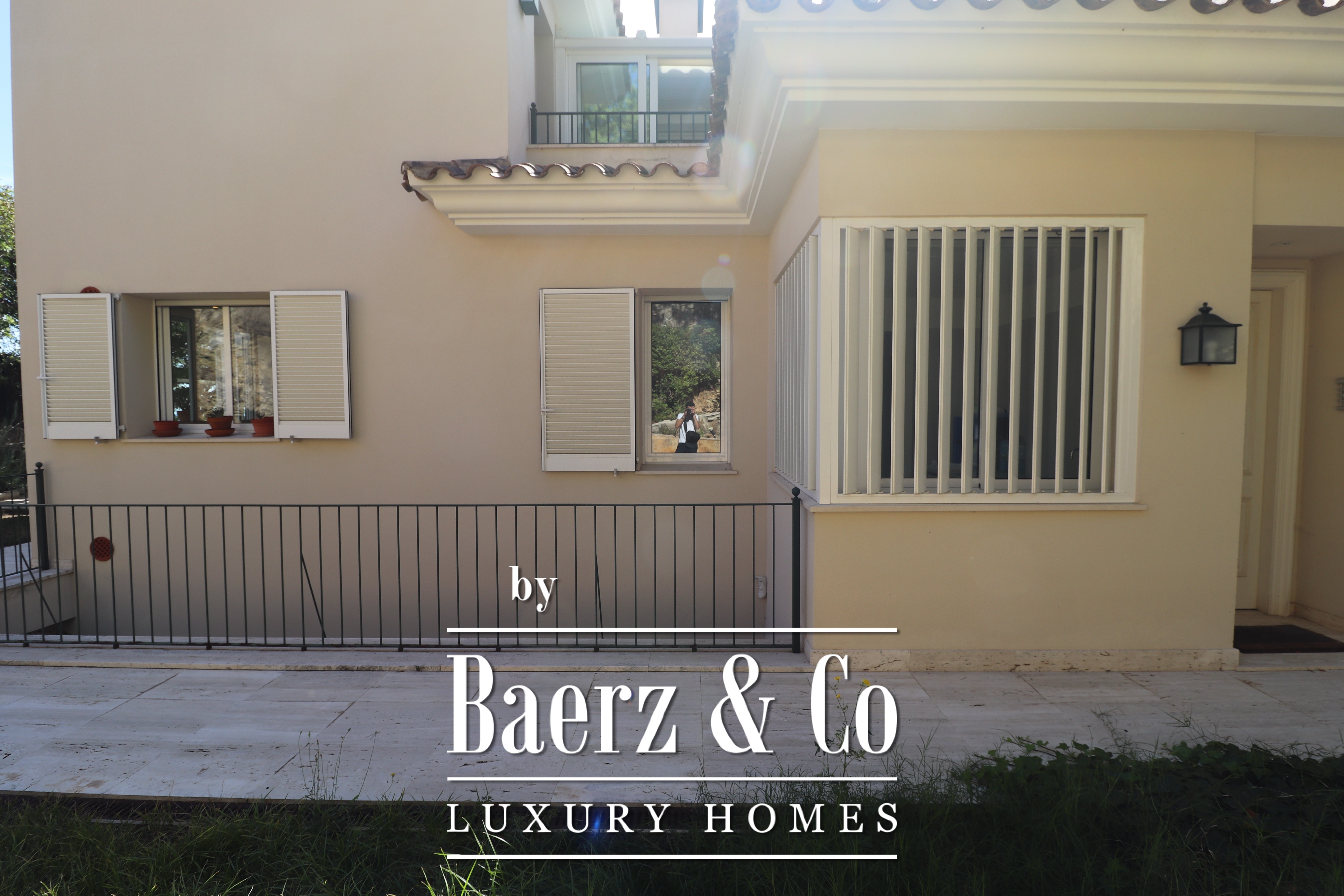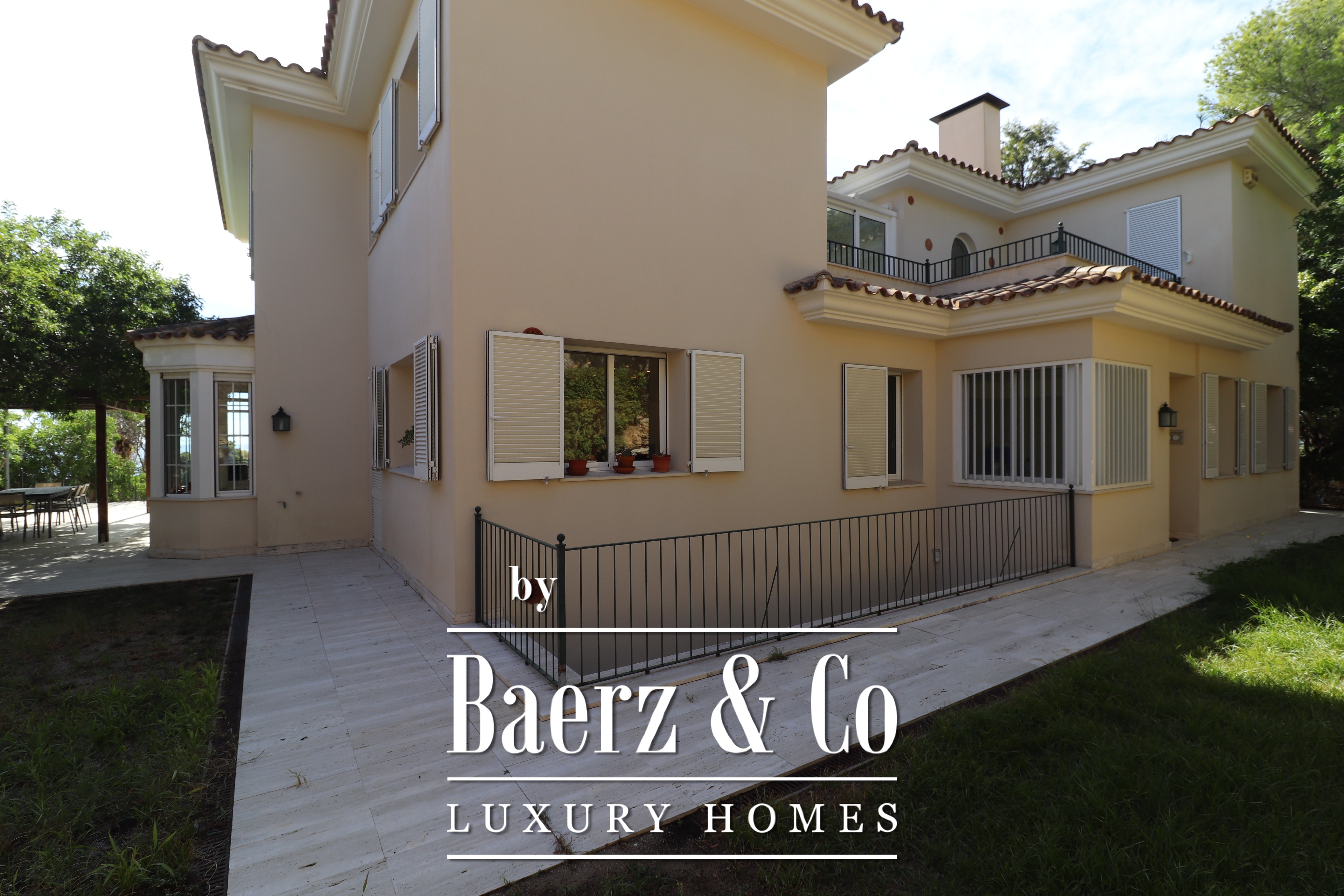 Designed for discretion and comfort, the villa unfolds across three levels, connected by a private lift. The main level opens with a refined entrance hall leading to a fluid living space, including living and dining rooms, a media zone, and a fully equipped kitchen with an adjoining service area and dedicated office. Five bedrooms and eight bathrooms allow for both family intimacy and entertaining on a generous scale.