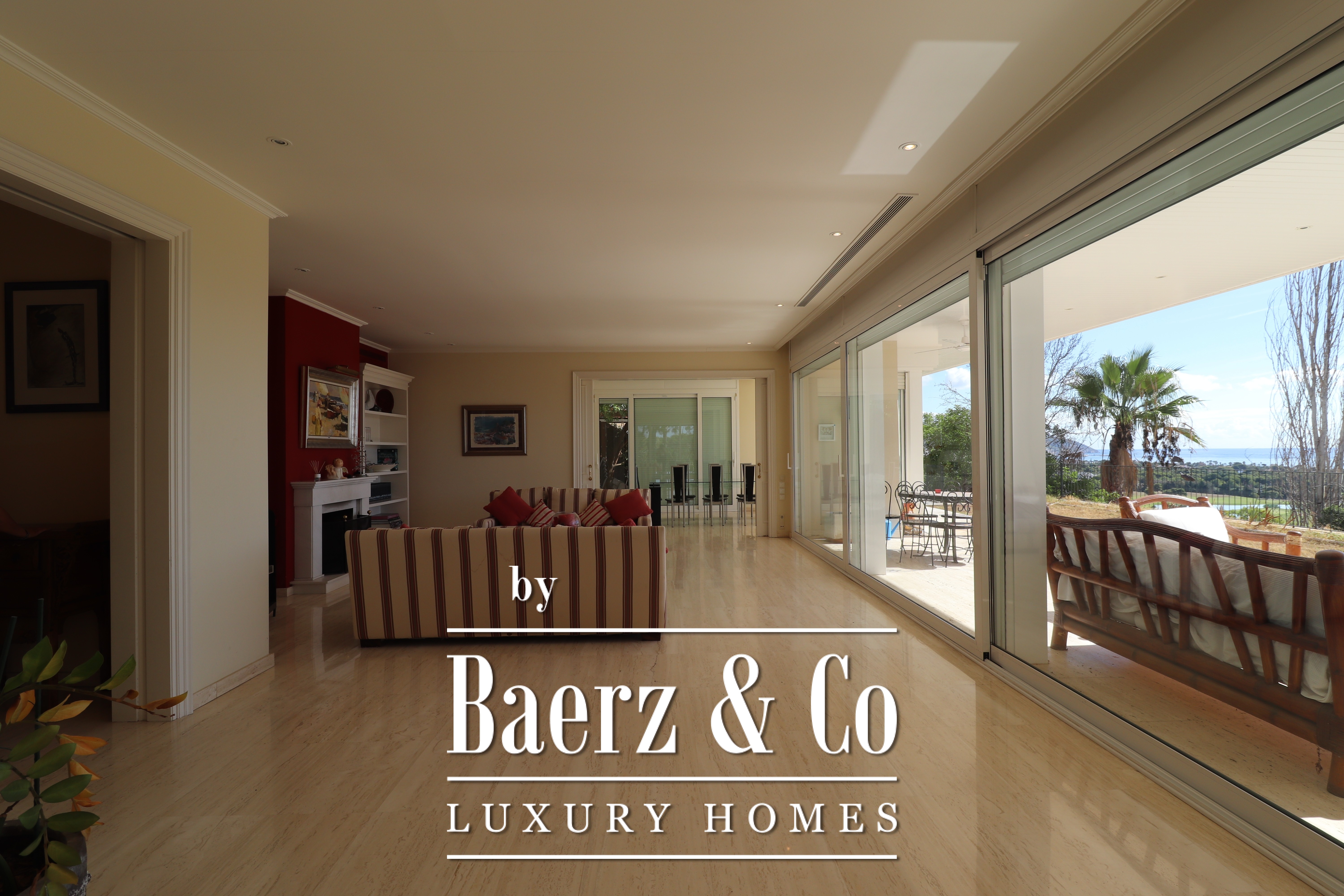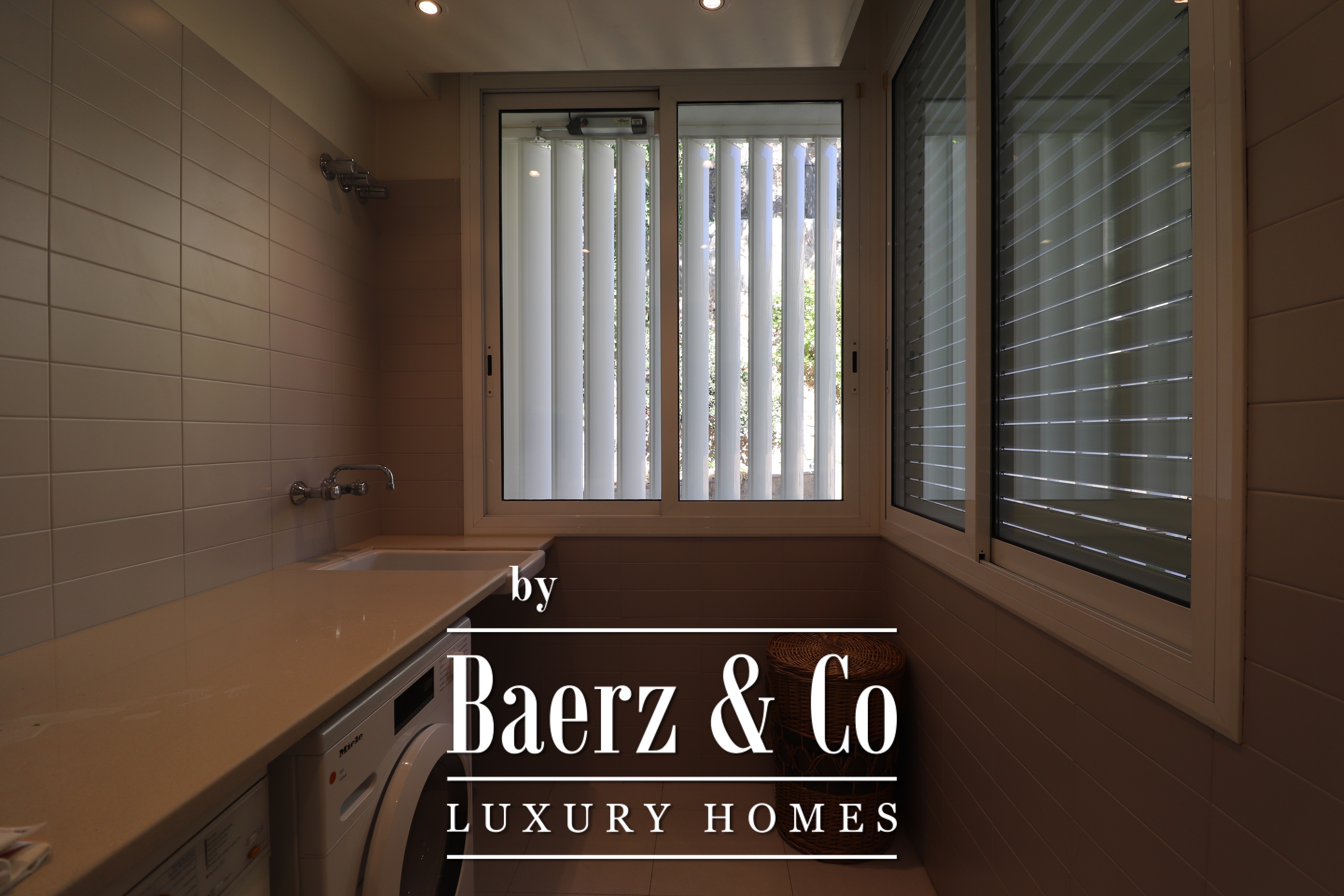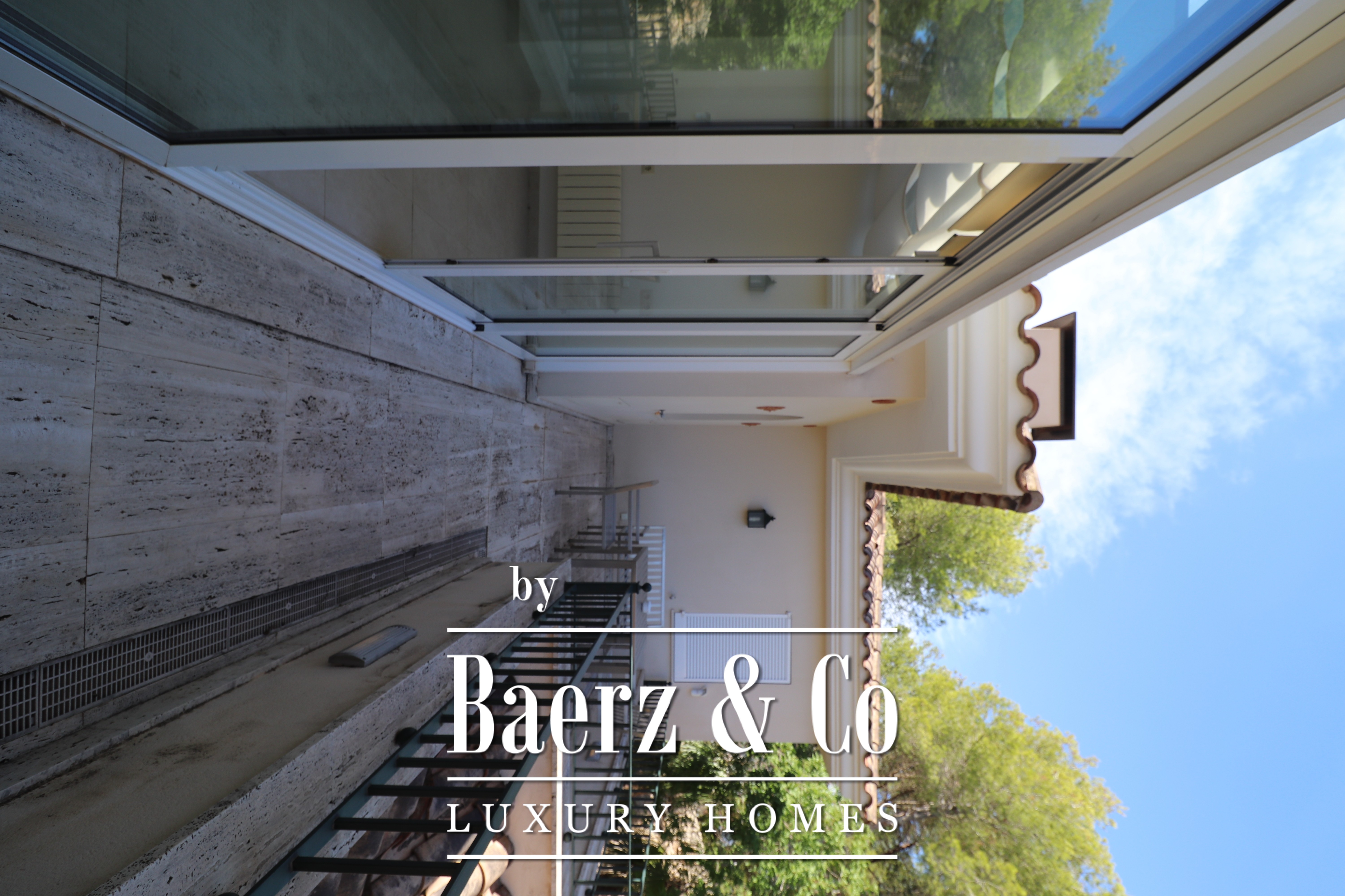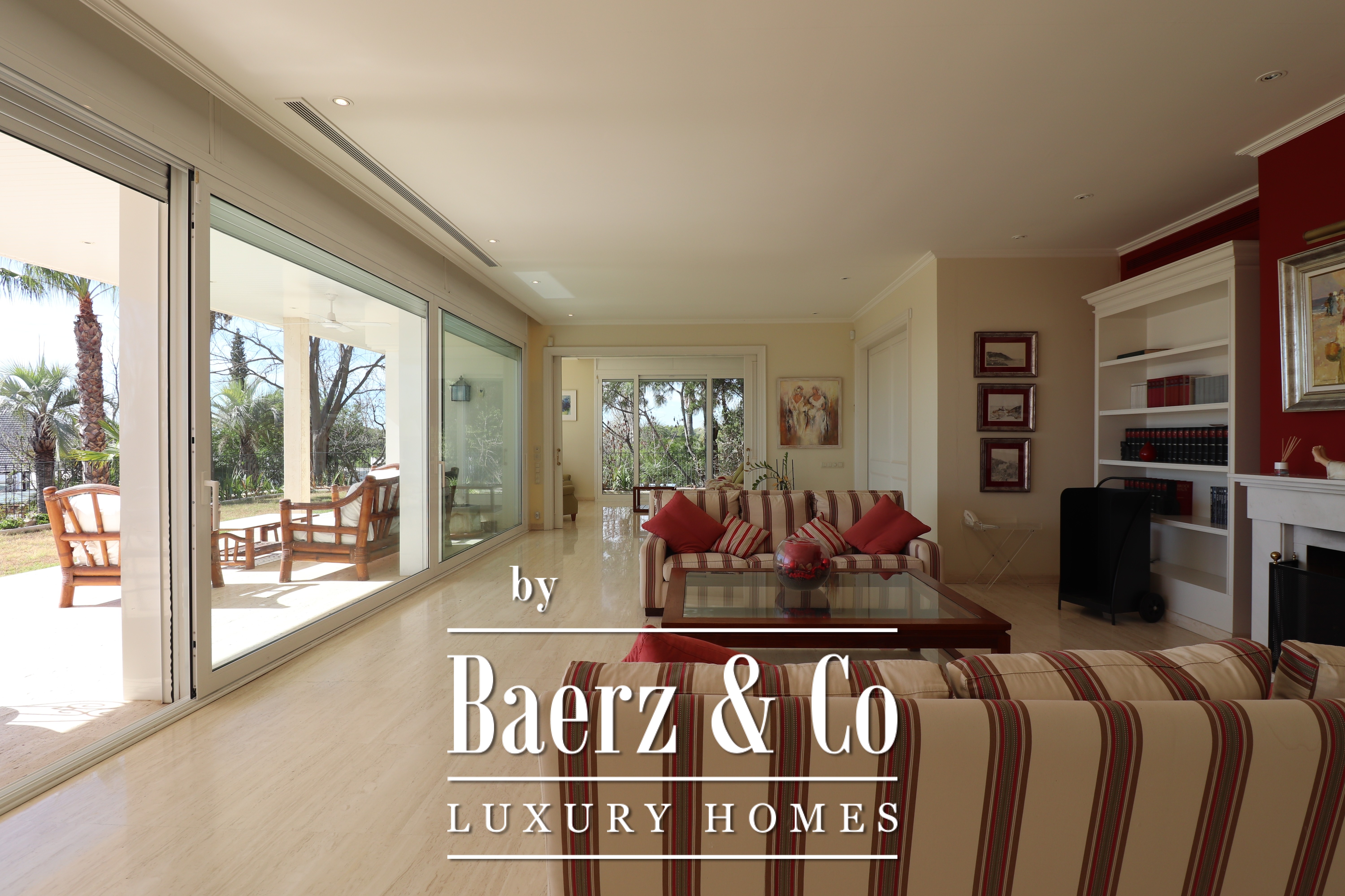 Designed for discretion and comfort, the villa unfolds across three levels, connected by a private lift. The main level opens with a refined entrance hall leading to a fluid living space, including living and dining rooms, a media zone, and a fully equipped kitchen with an adjoining service area and dedicated office. Five bedrooms and eight bathrooms allow for both family intimacy and entertaining on a generous scale.