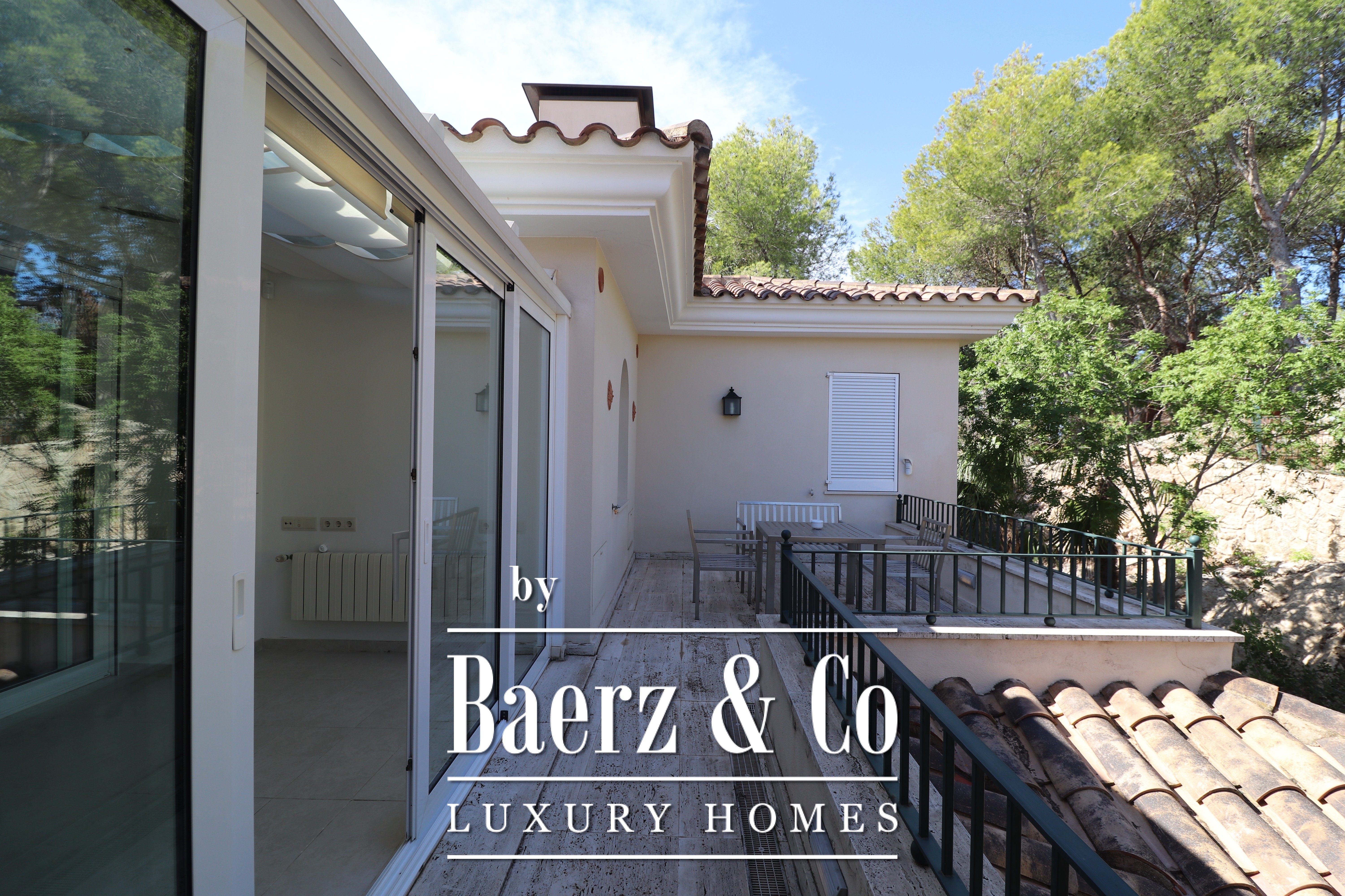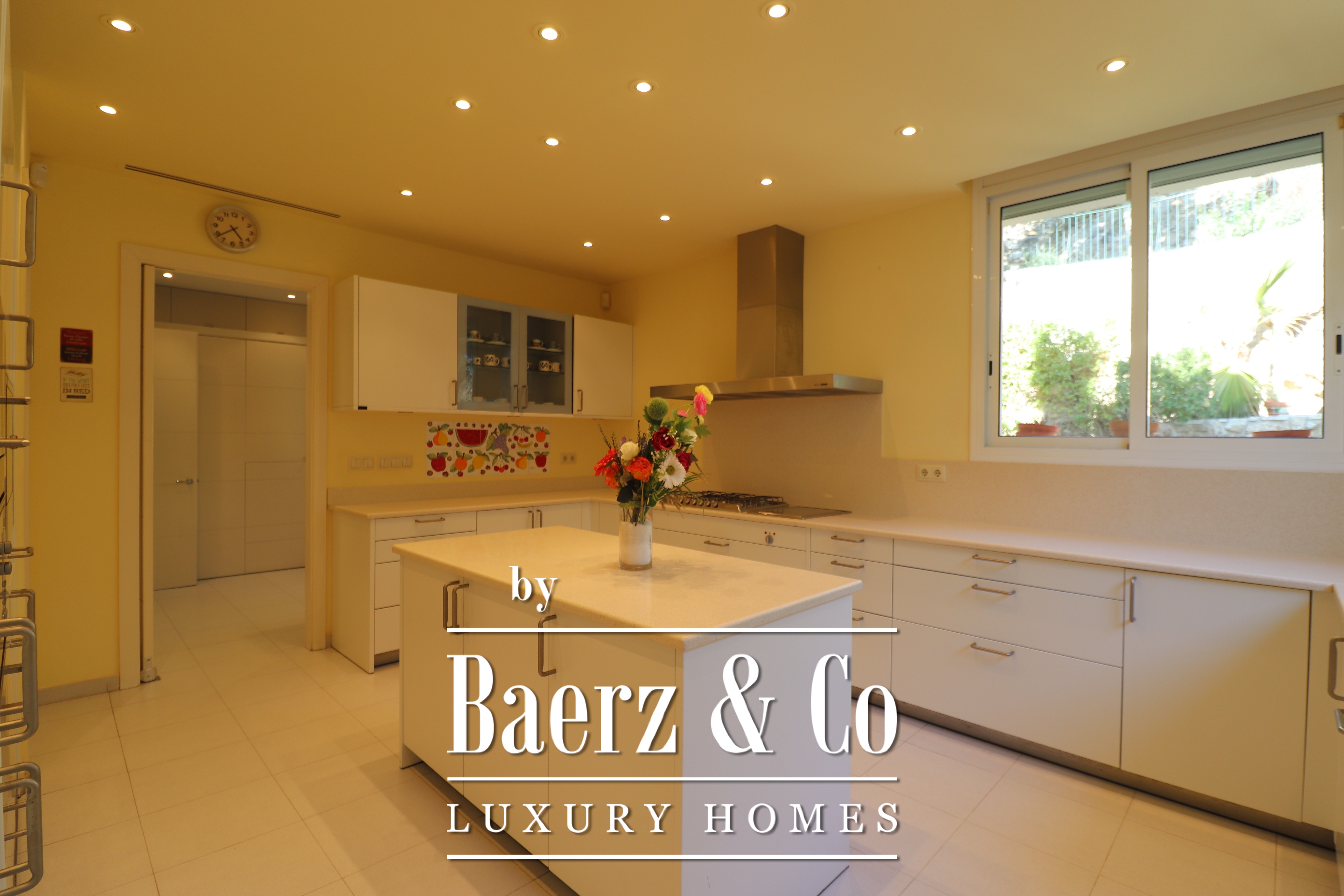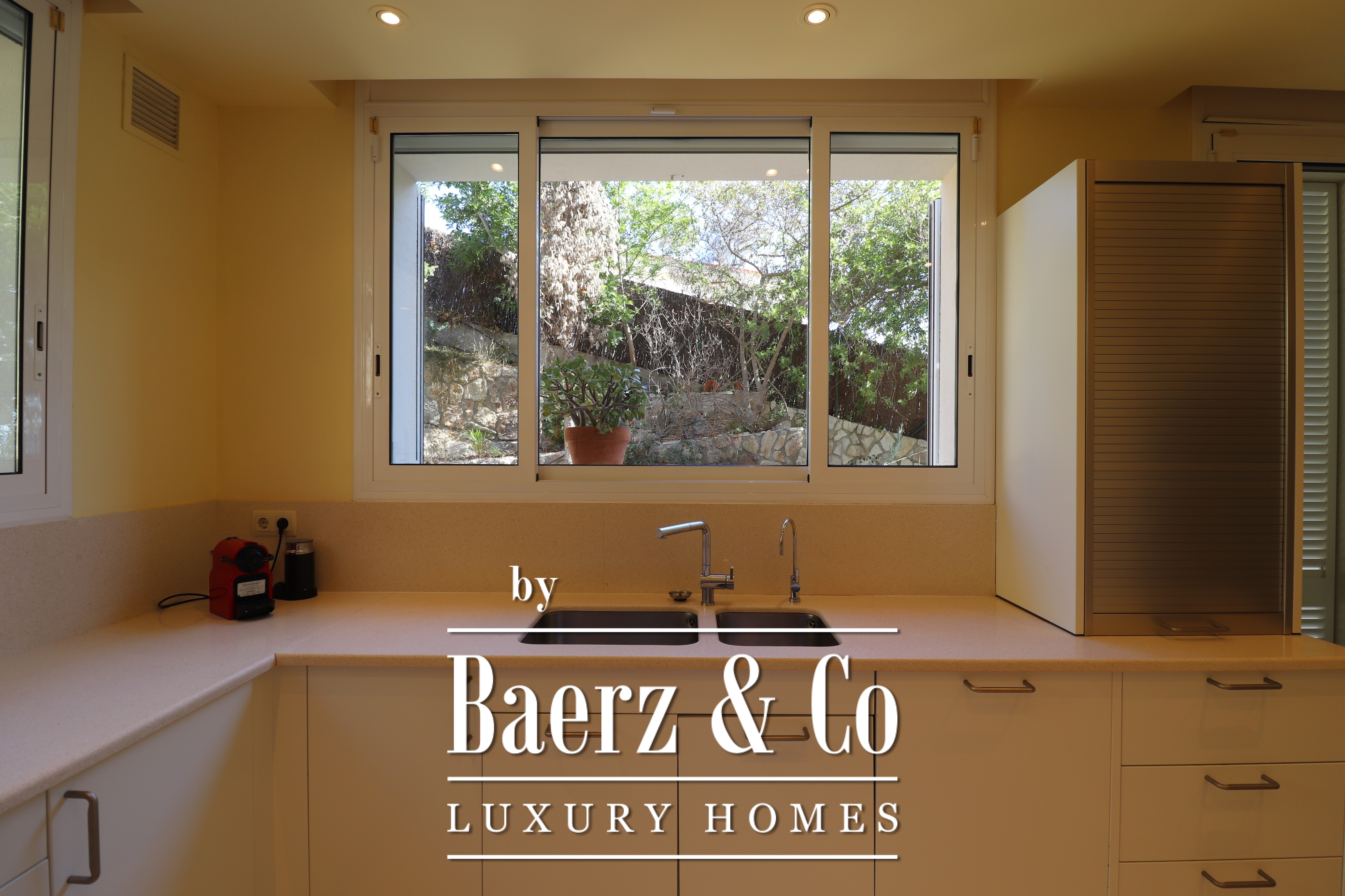 The upper floor is dedicated to rest, offering four suites, each with dressing rooms and private terraces against a backdrop of the Mediterranean. The lower level enhances daily ritual with a gym, sauna, wine cellar with dining zone, an additional bedroom, laundry, and a garage with capacity for eight vehicles. Fine materials, marble floors, high-end carpentry, and seamless home automation define every surface. Minutes from the centre of Sitges and the sea, this luxury villa for sale in Sitges offers a life of ease, privacy, and enduring style.