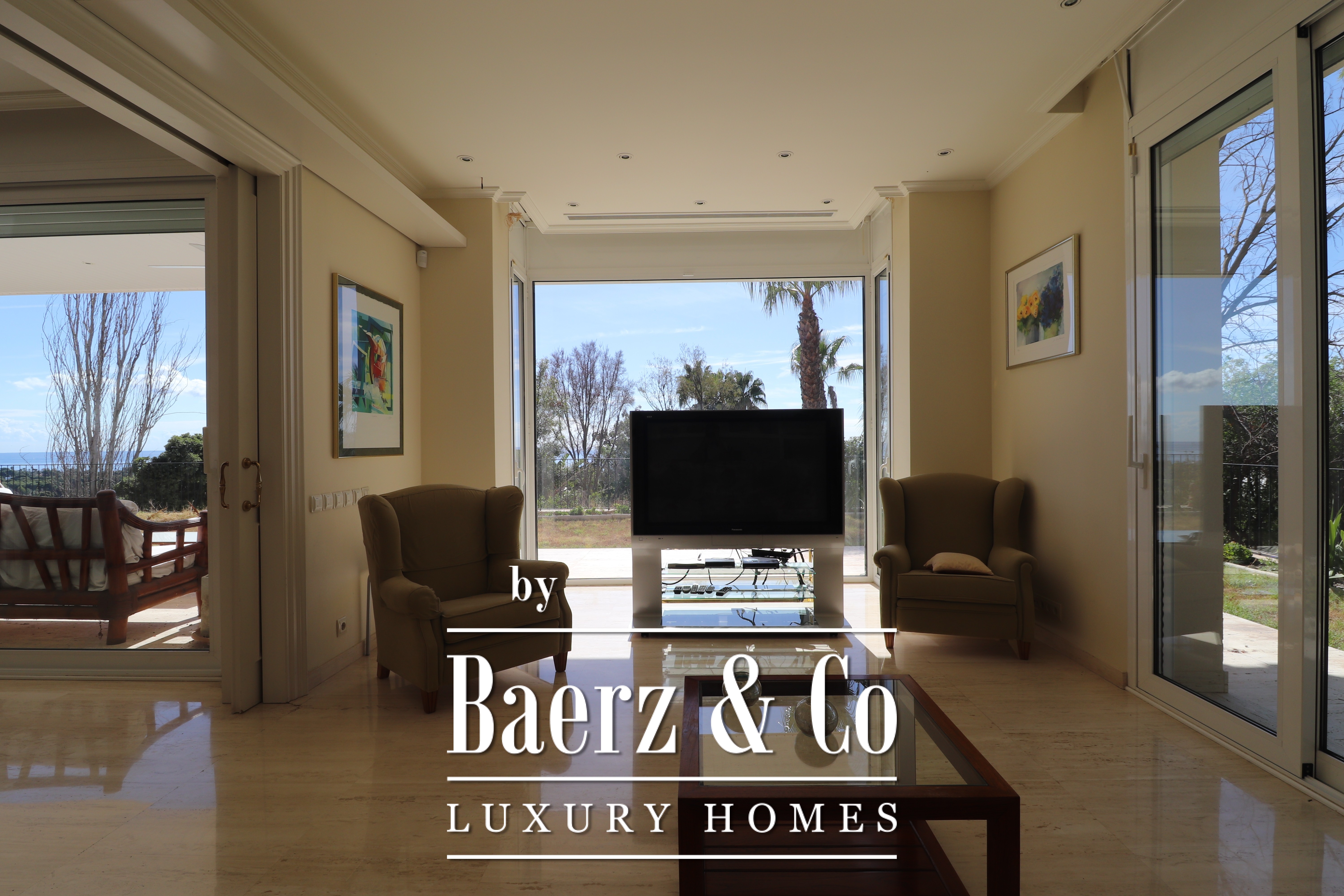 Contemporary villa Sitges defines the height of modern Mediterranean living, with 910 m² of architecture overlooking the golf course and the protected coastline. The property is set within 2,647 m² of mature land, embraced by native vegetation and oriented south to capture exceptional natural light. Residents experience serene privacy, expansive terraces, and sweeping sea views that extend over a manicured garden and a shimmering deep blue swimming pool.